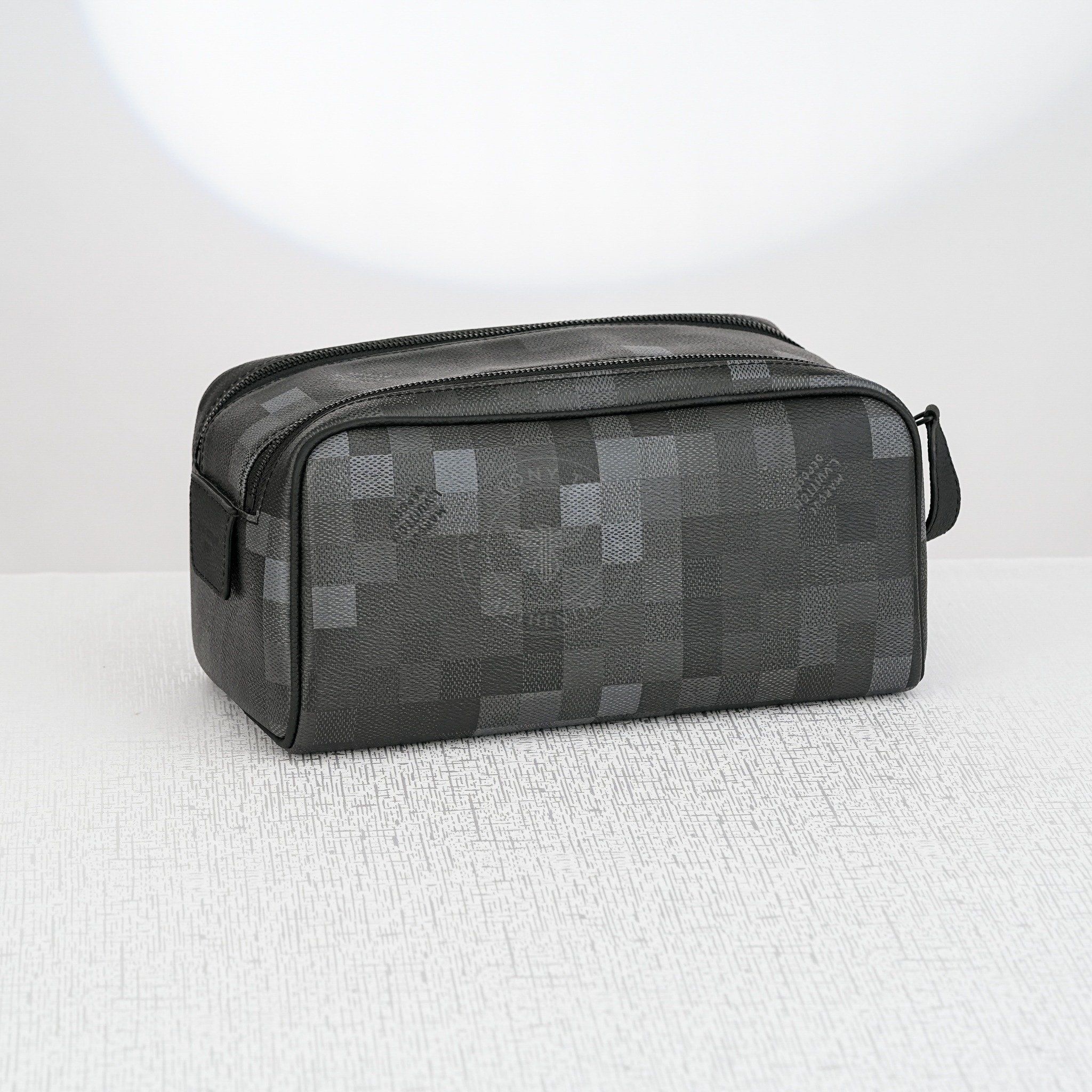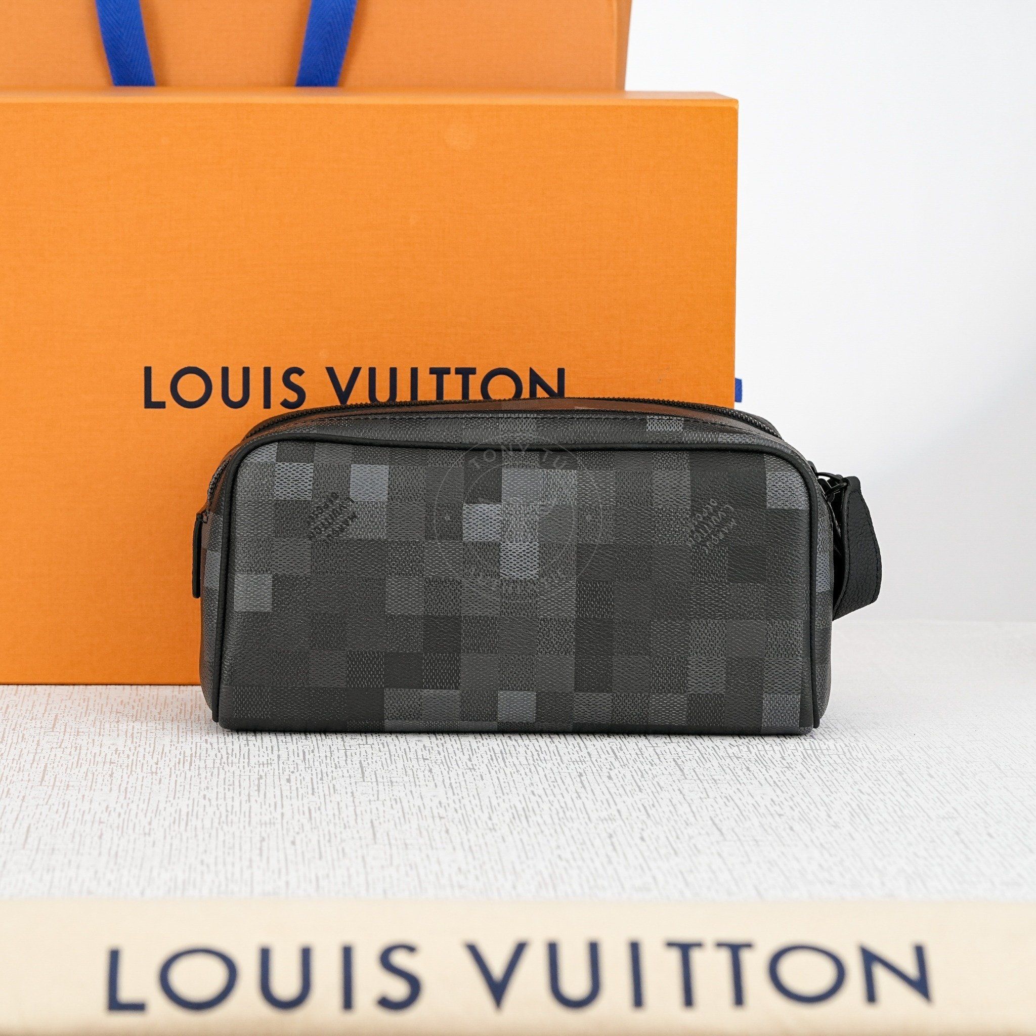 - Nhà mốt Louis Vuitton đã mang lại một sự đột phá trong năm 2025 với thiết kế Dopp Kit biến tấu khi kết hợp chất liệu Damoflage Black Canvas mang lại vẻ đẹp hiện đại và phá cách, khác biệt hoàn toàn so với Damier và Monogram cổ điển.