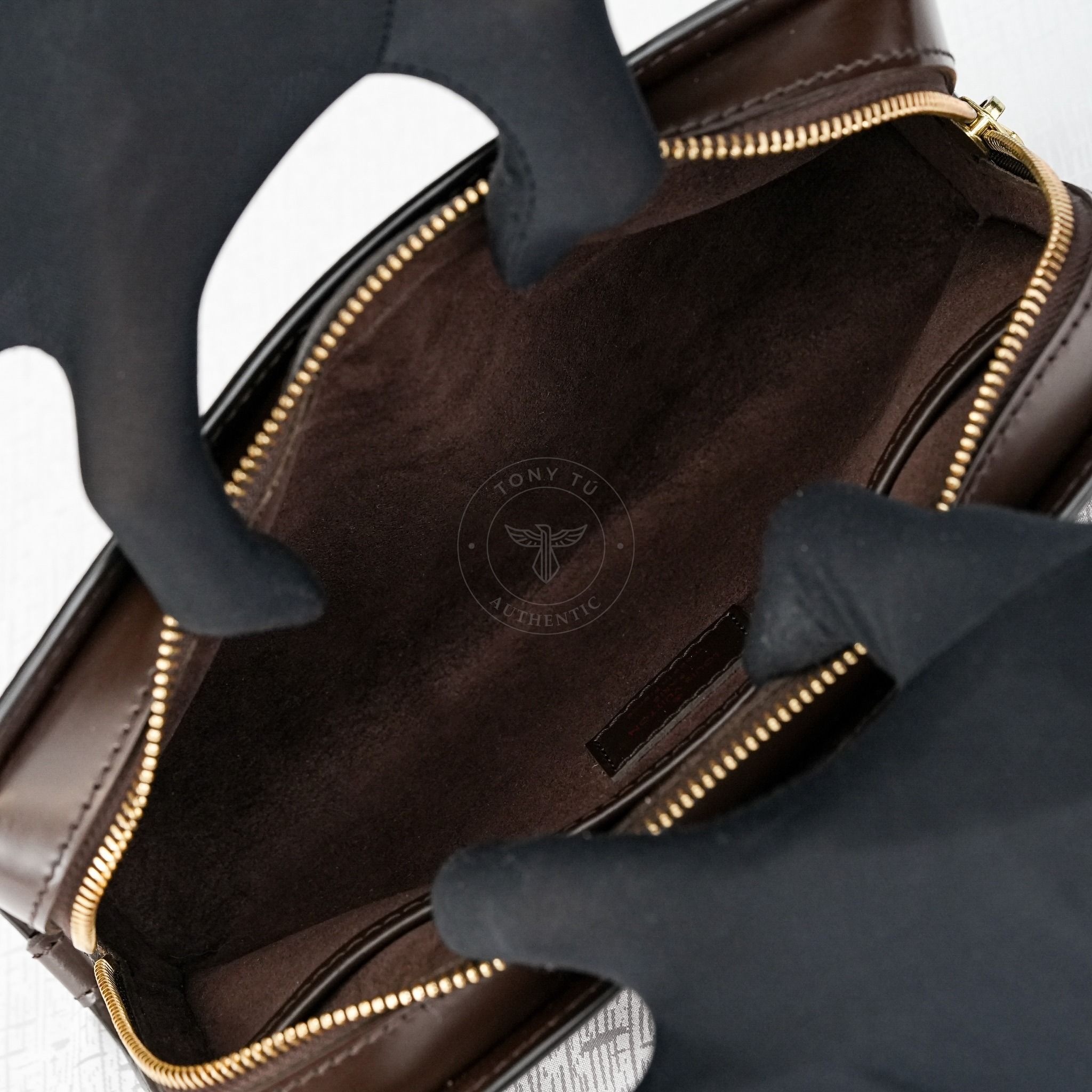 - Tông nâu đặc trưng cùng với họa tiết Damier ô vuông cổ điển. Tông màu nâu mang đến vẻ đẹp truyền thống, dễ dàng kết hợp với nhiều trang phục.