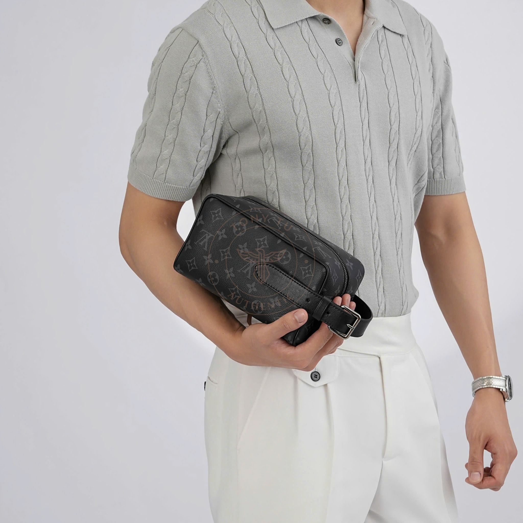 - From Louis Vuitton’s highly sought-after Toilette Clutch line, this piece is known for its masculine and modern appeal.