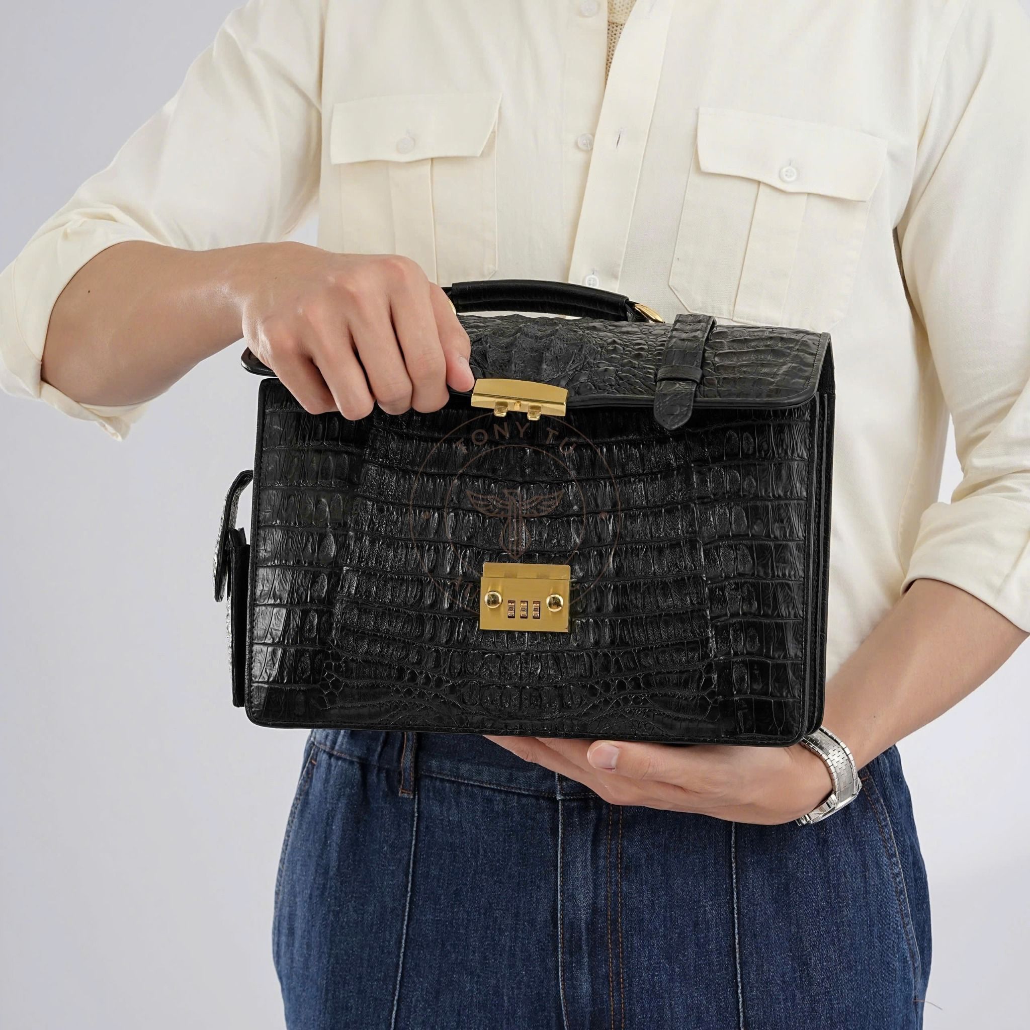 - This Japan Caiman Crocodile Leather document bag is the perfect choice for entrepreneurs looking to showcase their sophistication and luxury.
