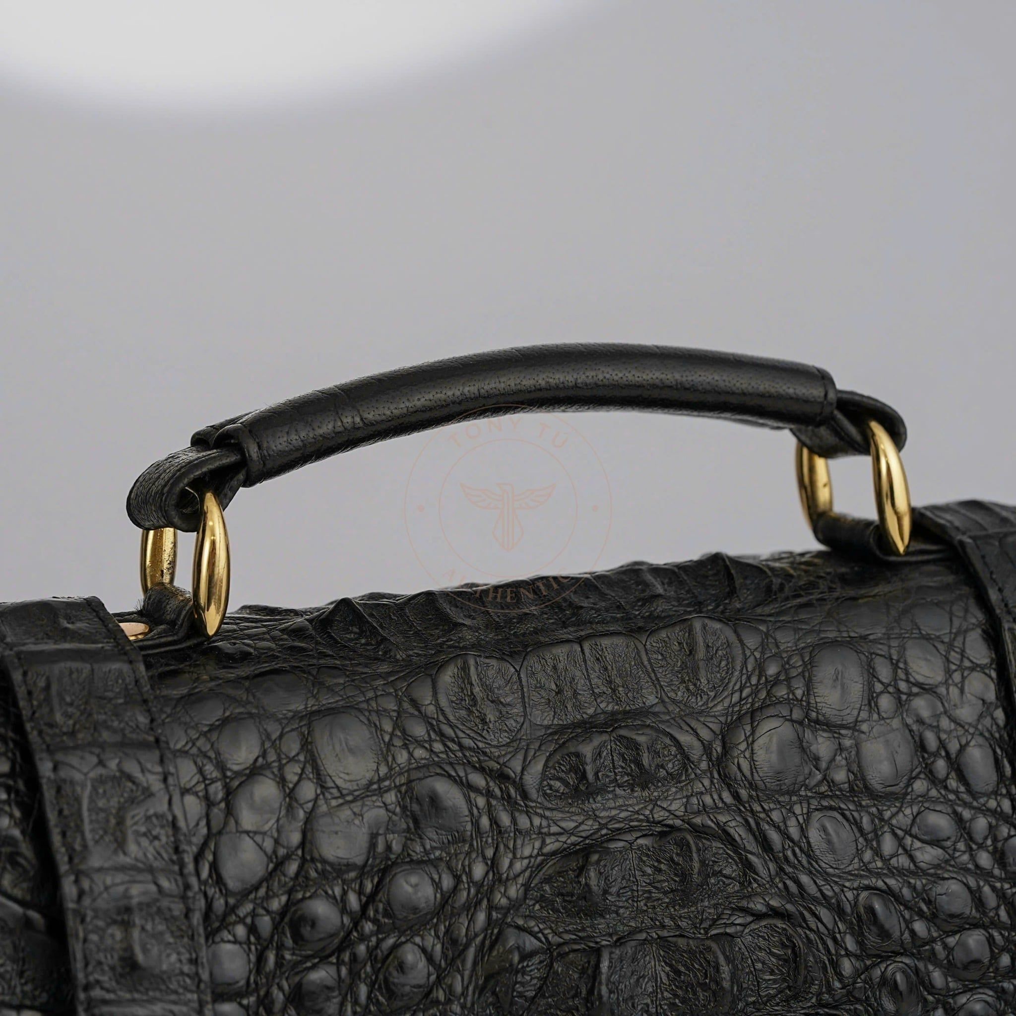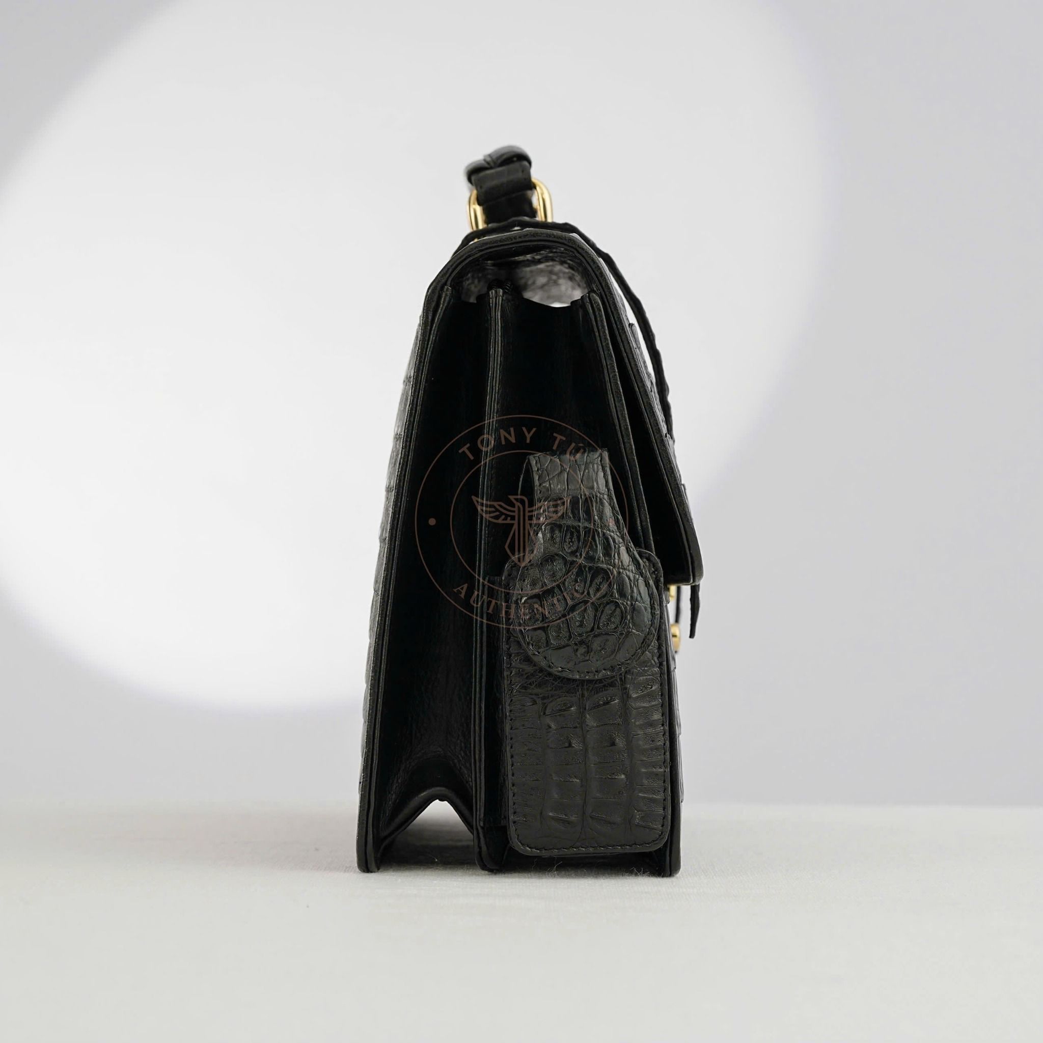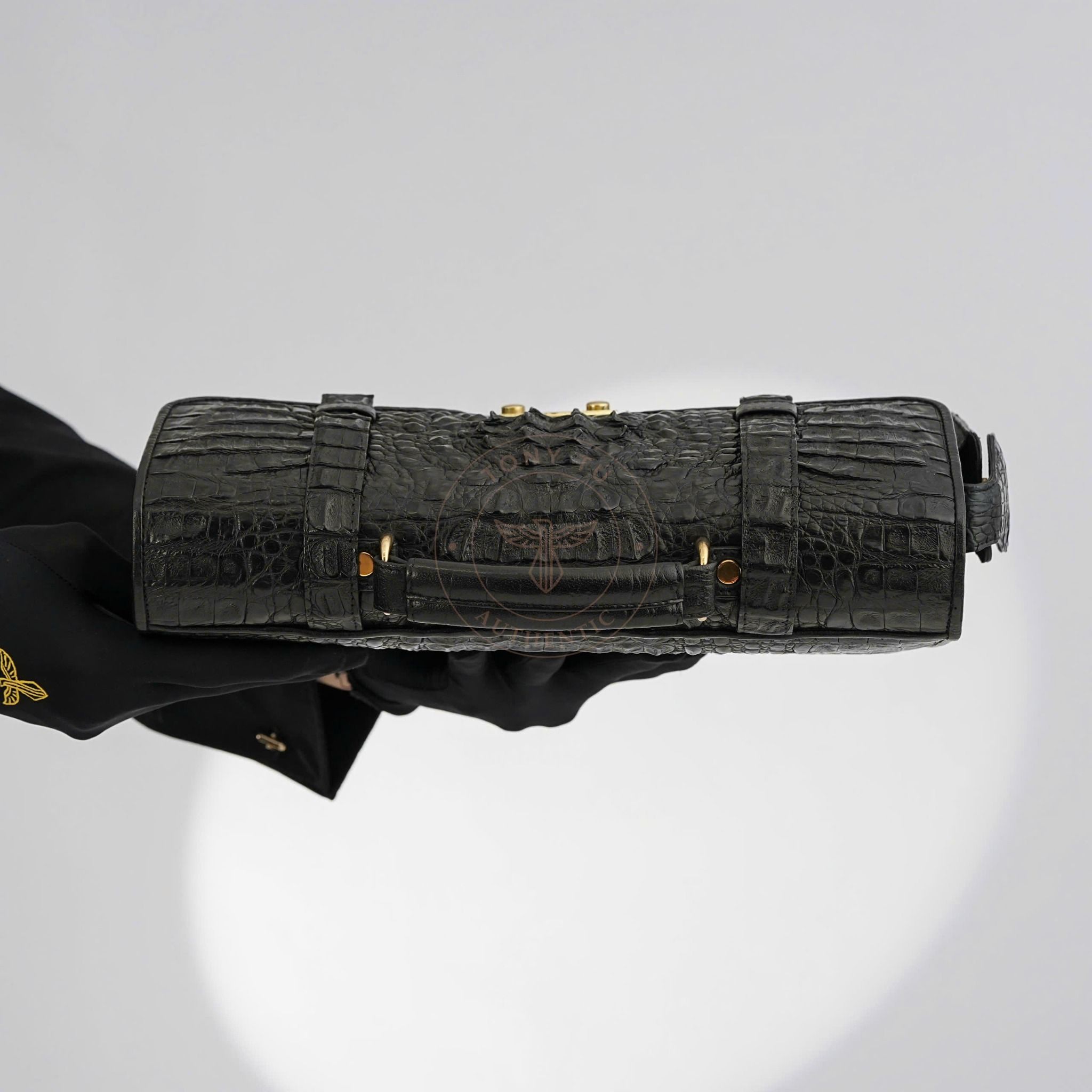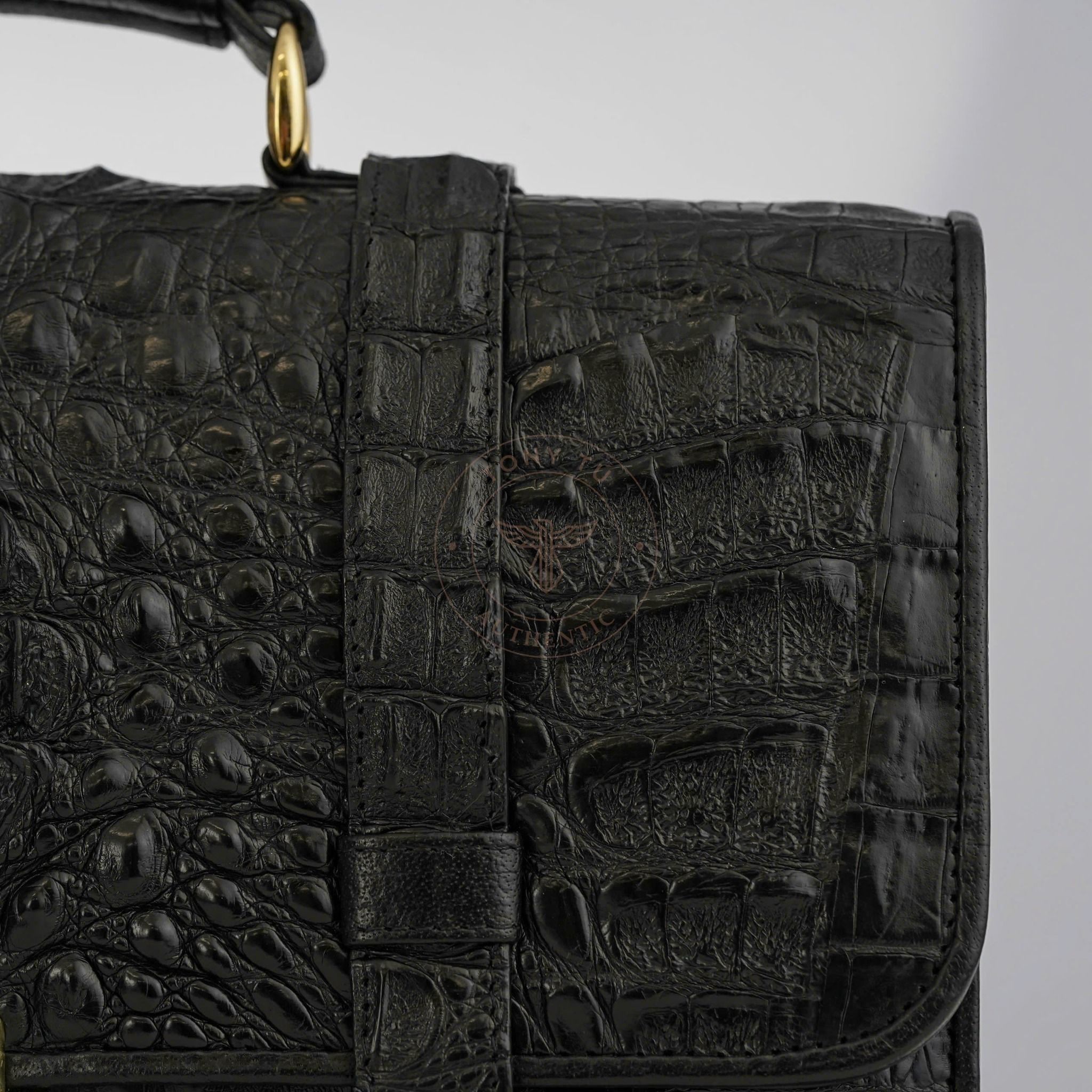 - Crafted from large, carefully selected Caiman crocodile leather, particularly from the back of the crocodile for consistent and bold aesthetics.