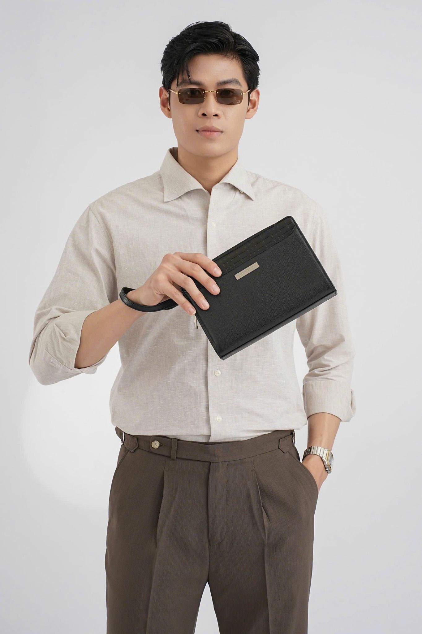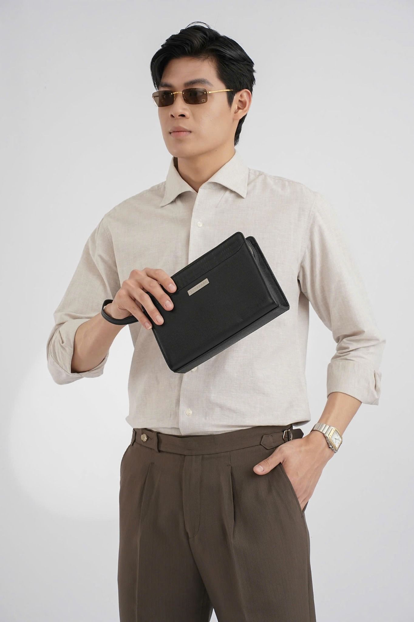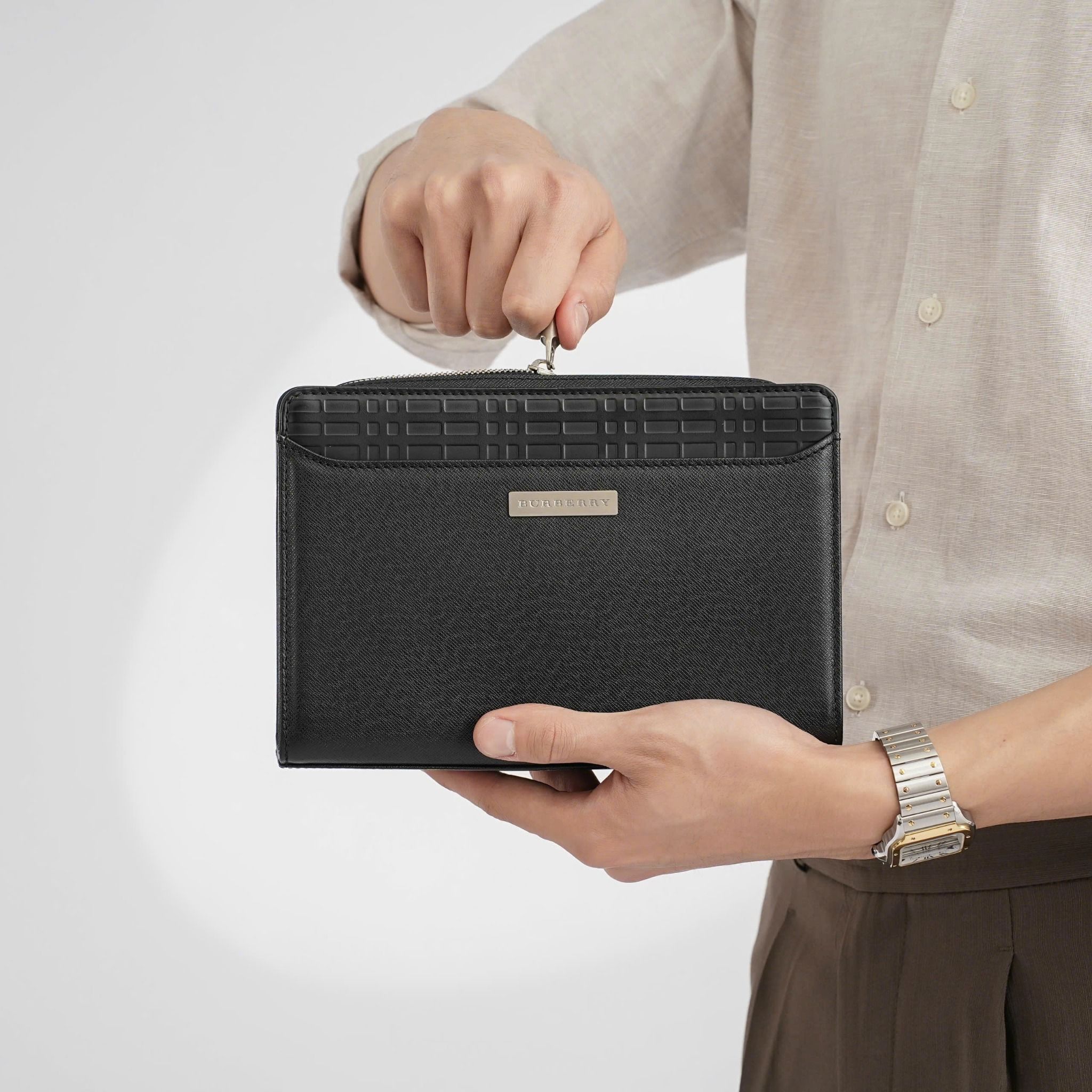 - Da Saffiano bền bỉ, cứng cáp và nam tính, giúp Clutch giữ được vẻ đẹp theo thời gian. Các sản phẩm của Burberry luôn được biết đến với sự bền bỉ và trường tồn theo năm tháng, dễ dàng cho chủ nhân bảo quản và sử dụng cả trong môi trường khắc nghiệt như Việt Nam.
