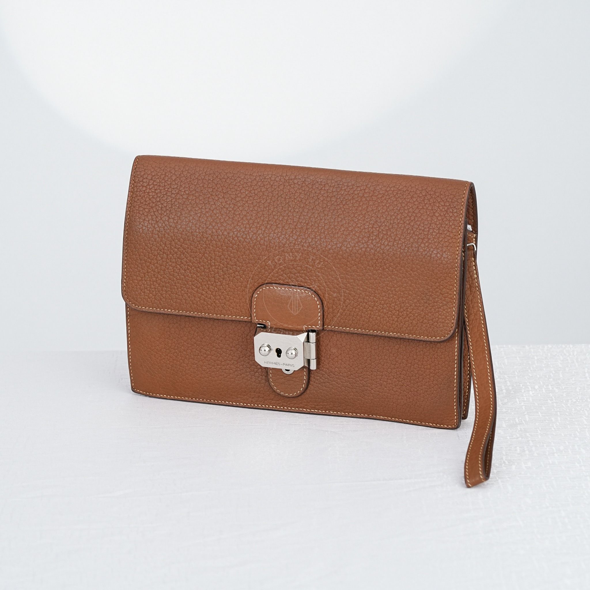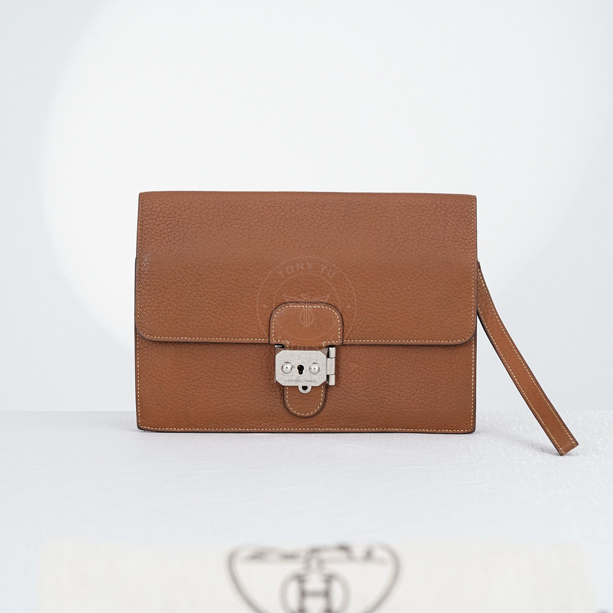- Thiết kế tinh giản gồm 1 ngăn chứa duy nhất và 1 ngăn phẳng phụ. Chế tác từ bò cao cấp của Hermès, nổi tiếng với khả năng giữ màu đỉnh cao với sự bền bỉ trường tồn.