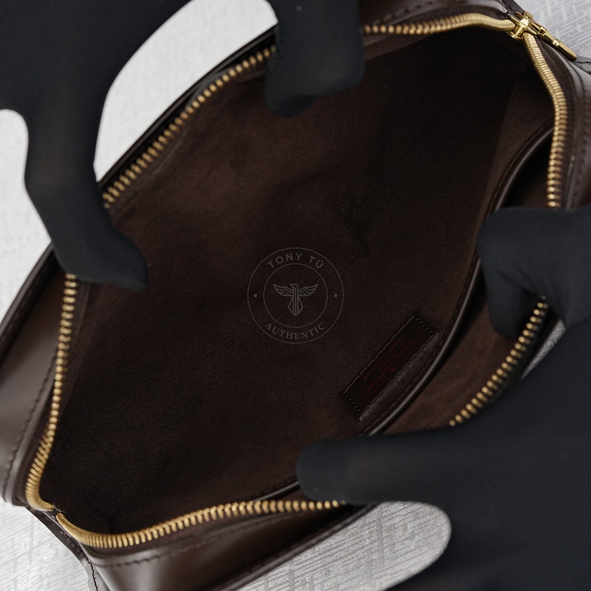 - Tông nâu đặc trưng cùng với họa tiết Damier ô vuông cổ điển. Tông màu nâu mang đến vẻ đẹp truyền thống, dễ dàng kết hợp với nhiều trang phục.