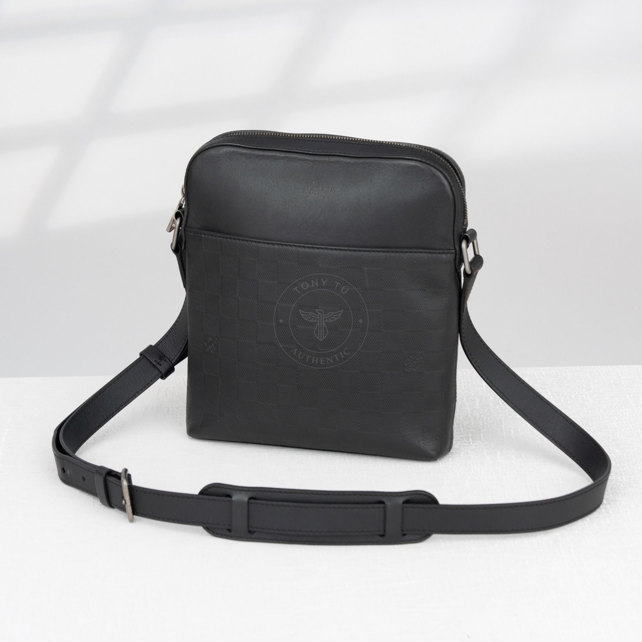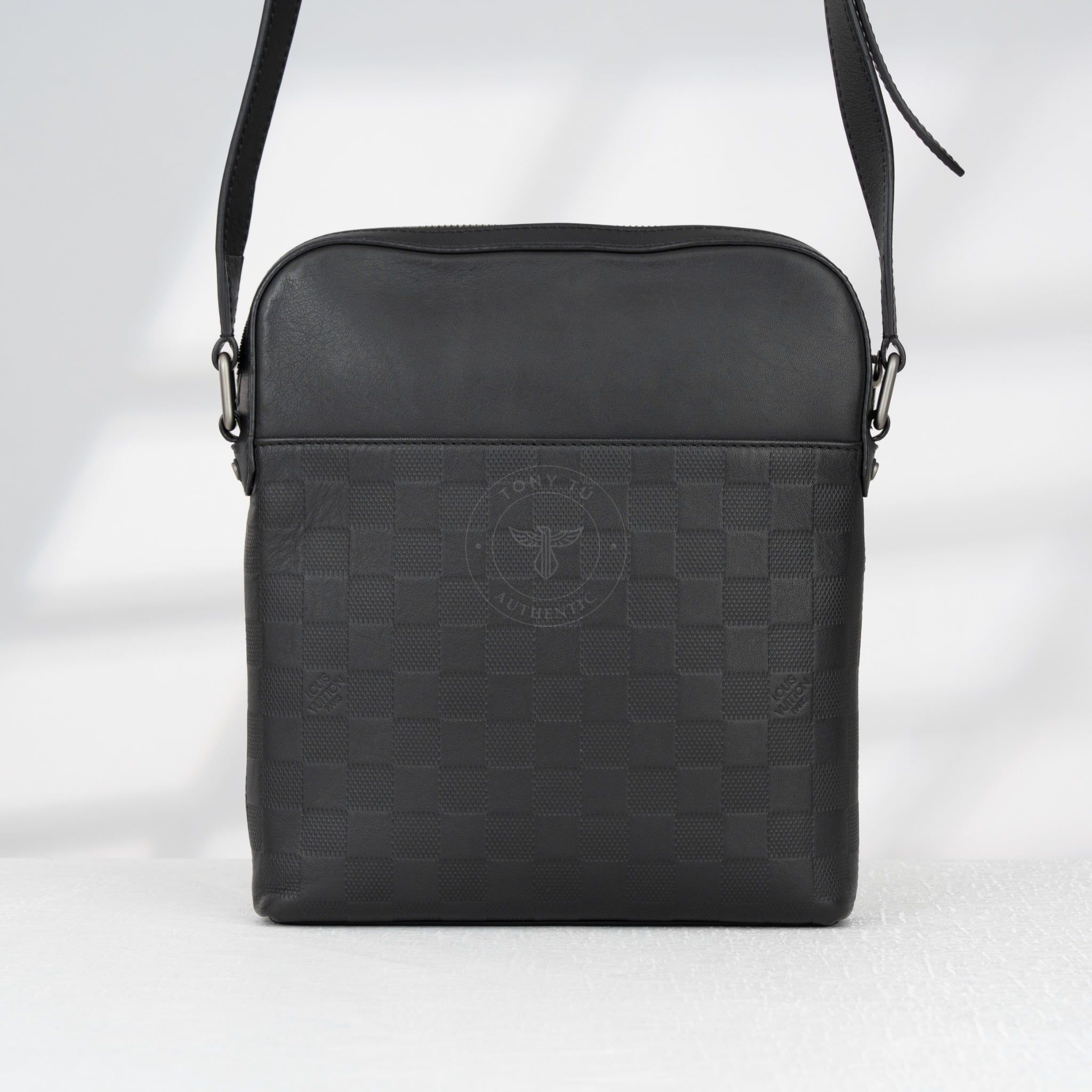 - Cấu trúc ngăn gồm 1 ngăn chính lớn và 1 ngăn phẳng phụ bên ngoài. Được chế tác từ da Damier Infini cao cấp với họa tiết caro dập chìm đặc trưng của Louis Vuitton phối tông màu đen bao phủ mang lại cảm giác sang trọng kín đáo.