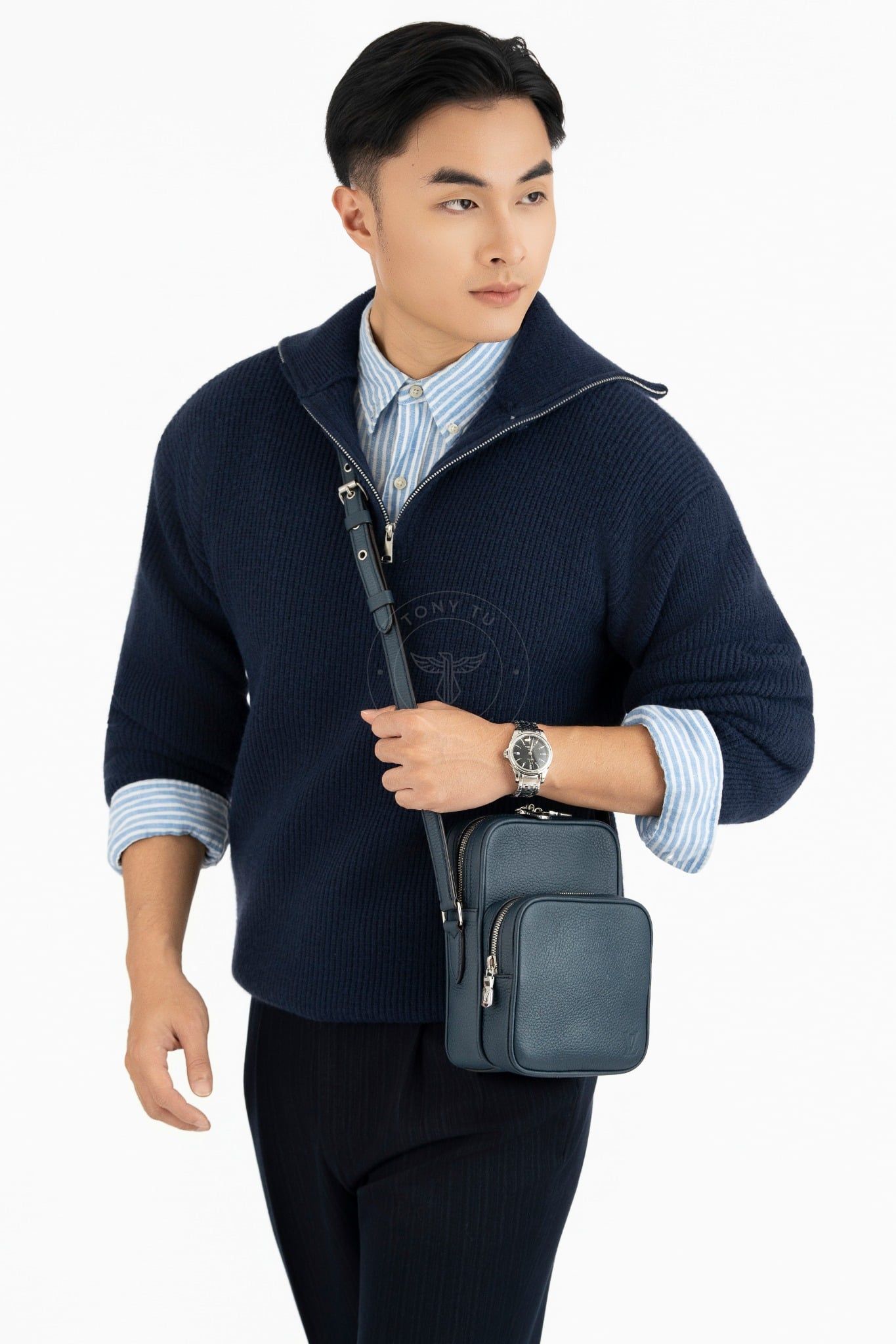 - Tông xanh Navy thanh lịch bảo phủ toàn bộ bề mặt túi. Sản phẩm gồm 2 ngăn chính và 1 ngăn phụ.