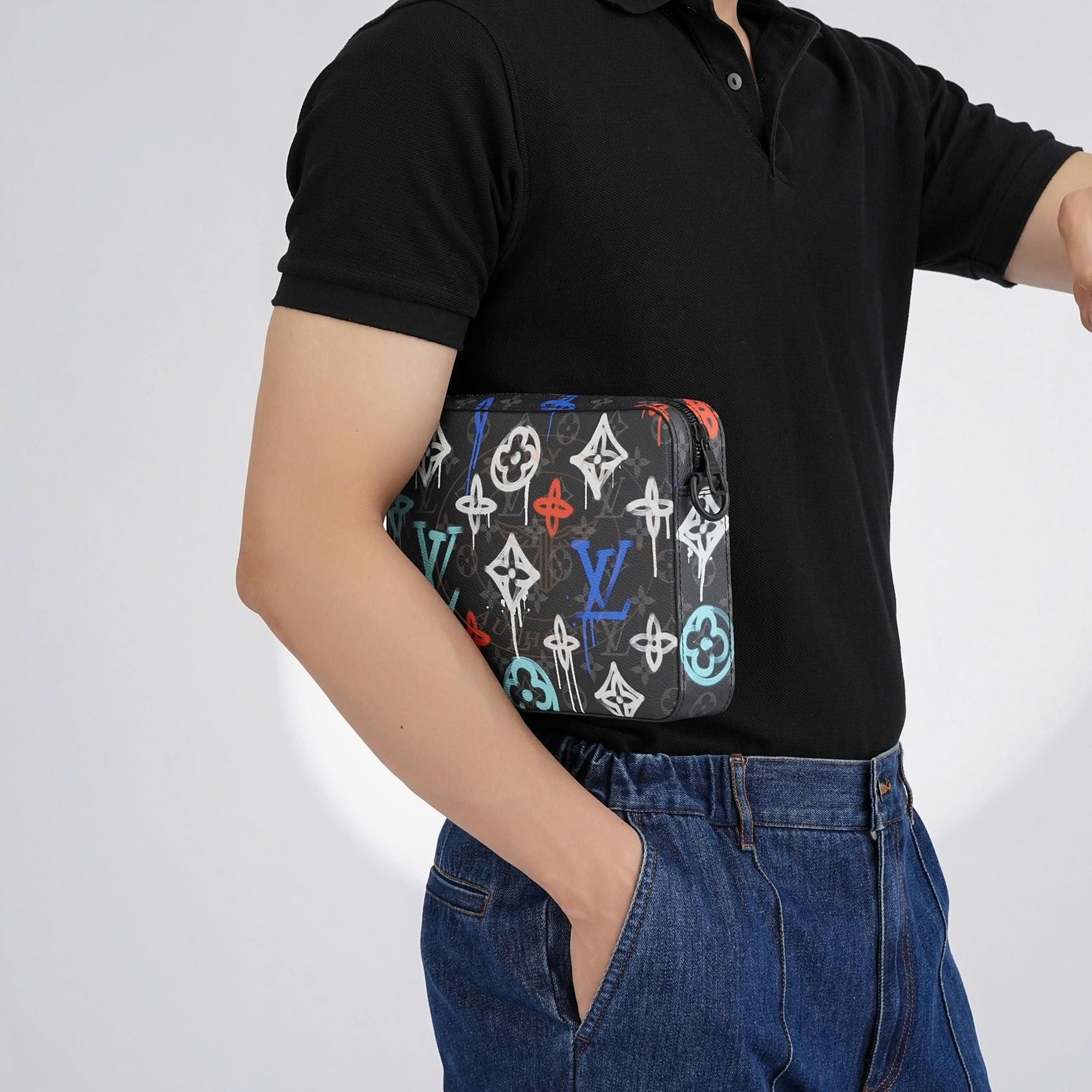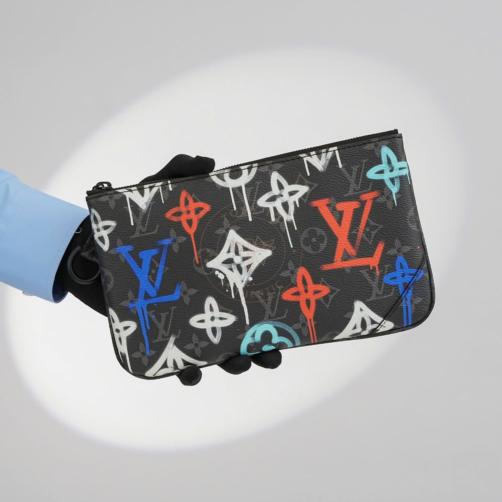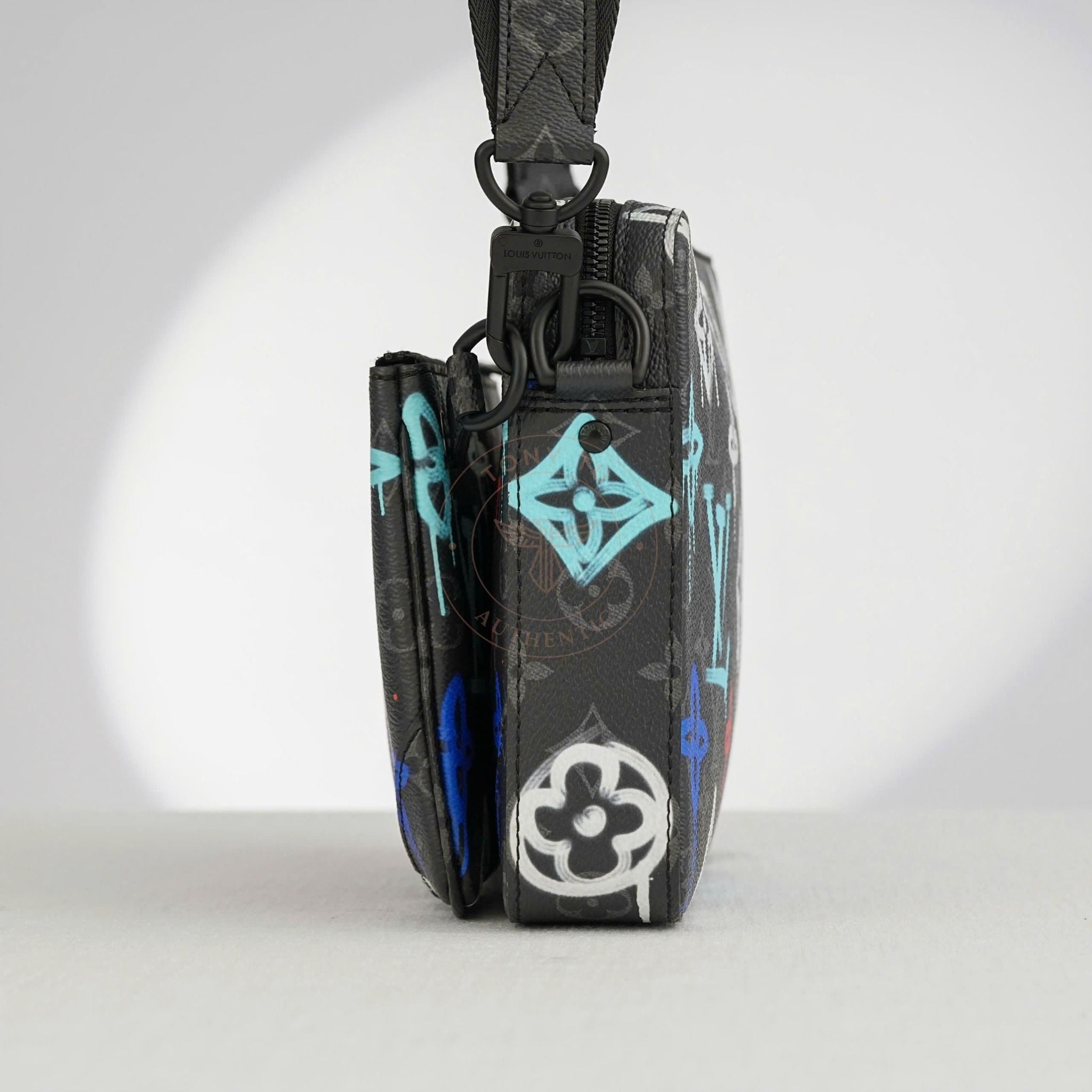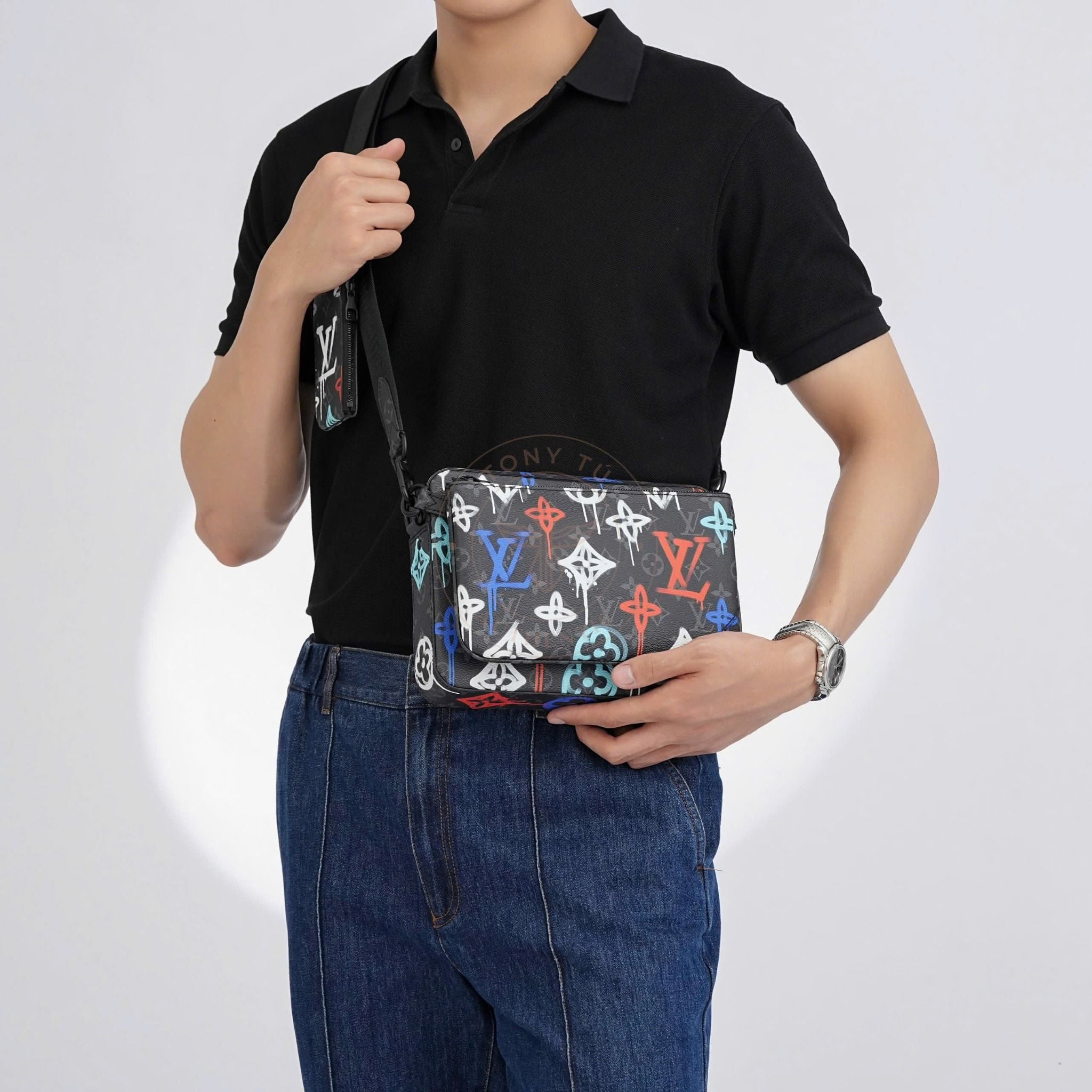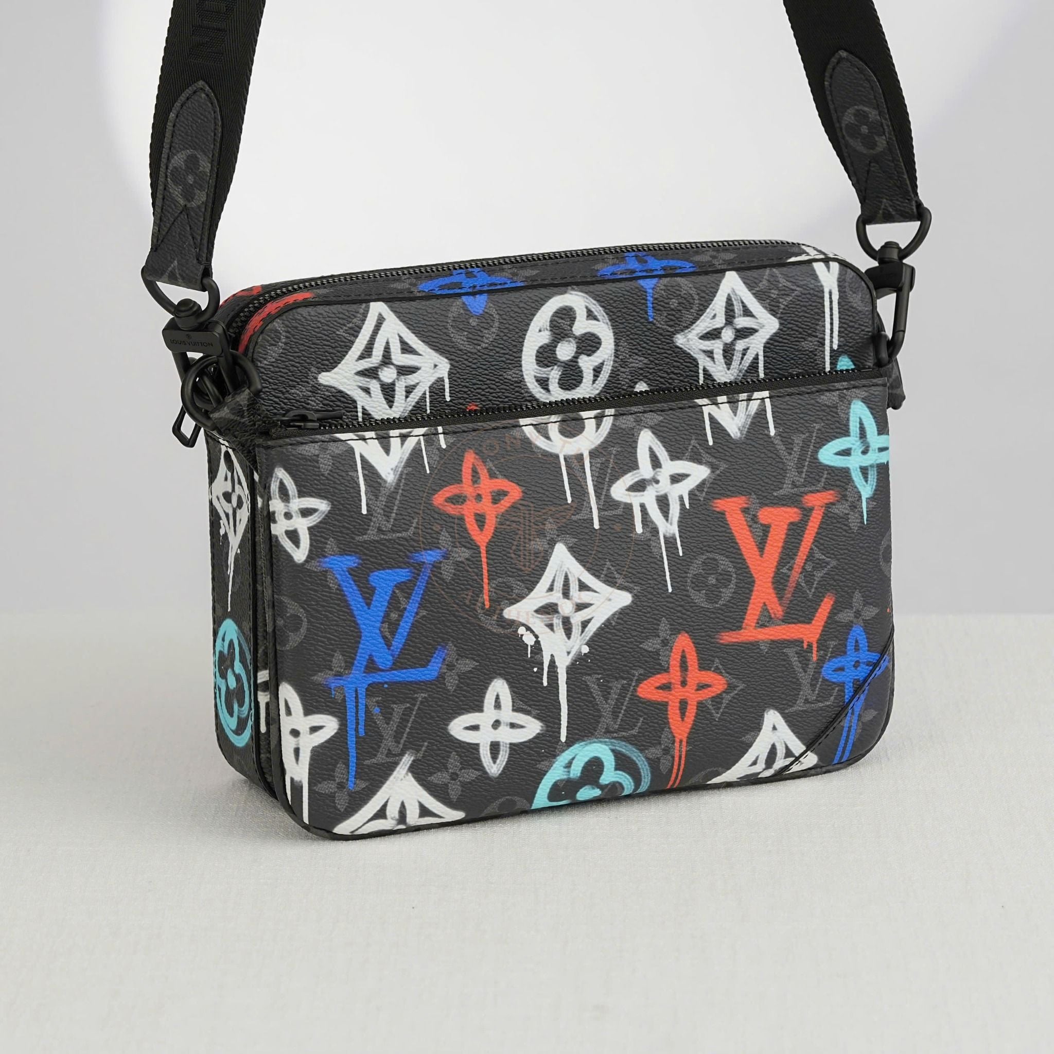 - Part of the exclusive “Louis Vuitton Graffiti” collection, this piece blends classic style with youthful energy through a creative trio-pouch concept.