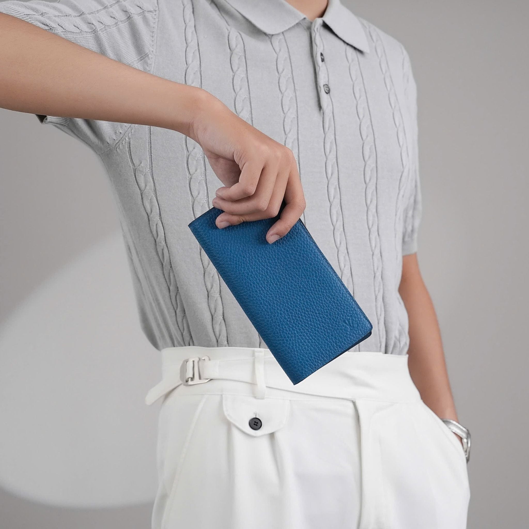 - Màu Cyan là sự lựa chọn táo bạo của Louis Vuitton, mang đến cảm giác tươi mới, trẻ trung và nổi bật. Tông màu này sẽ là sự lựa chọn lý tưởng cho sếp nào muốn thêm màu sắc vào phong cách cũng như trang phục của mình mà vẫn giữ được sự sang trọng.