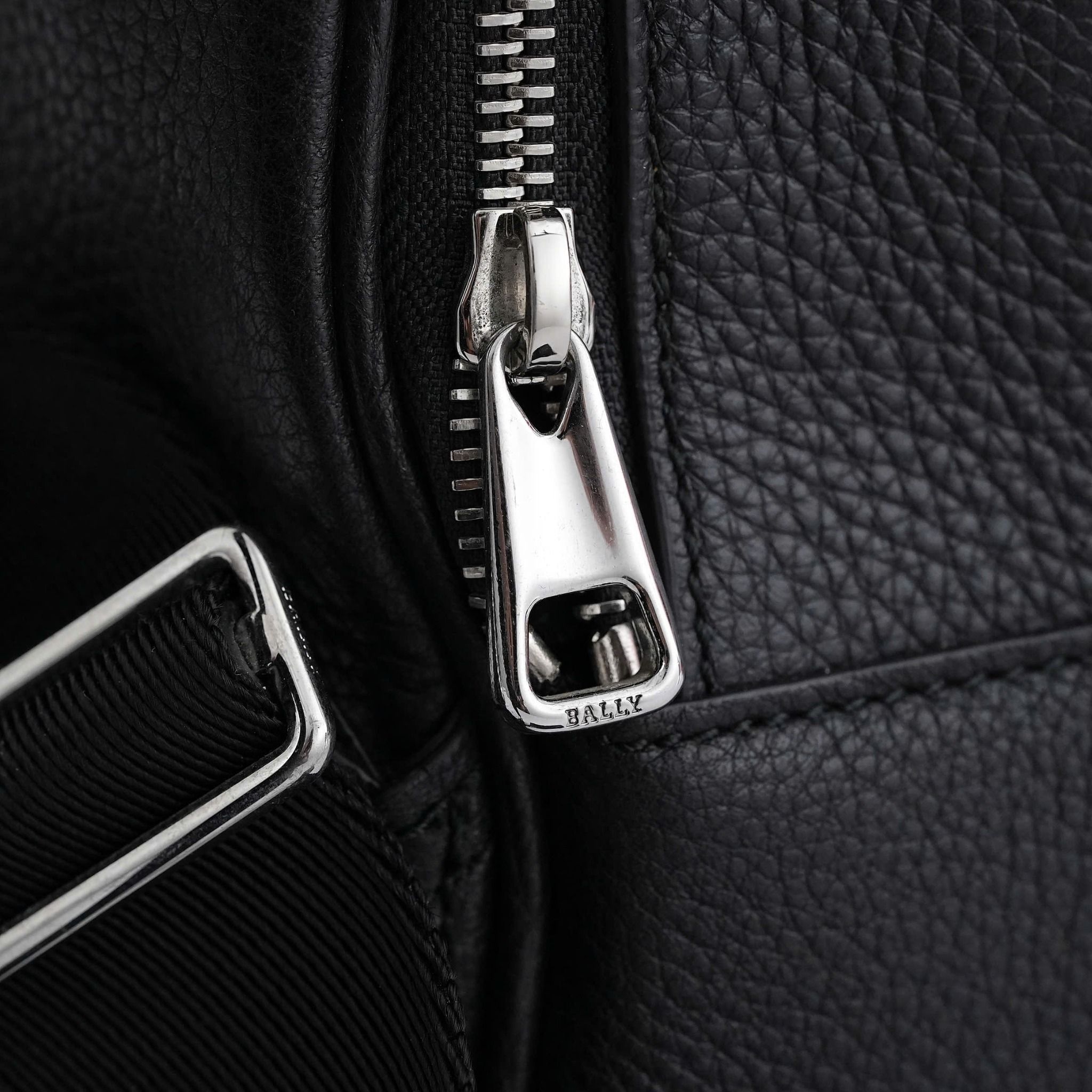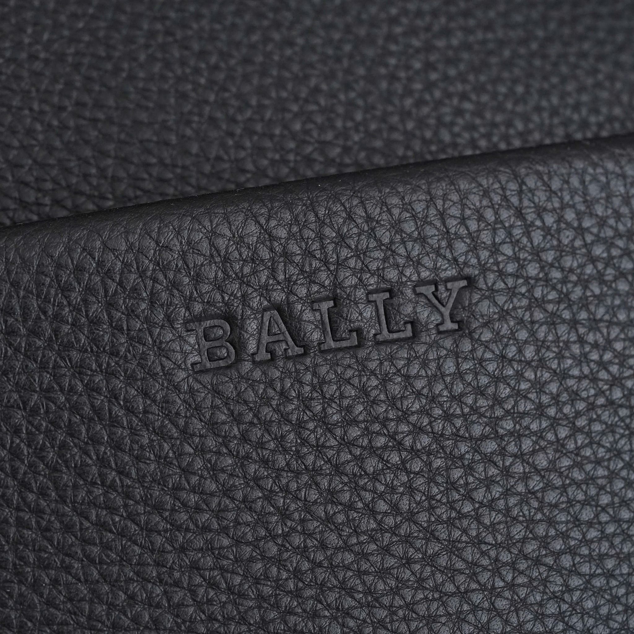 - The all-black color palette, featuring a discreetly embossed Bally logo, exudes timeless elegance and versatility, making it a seamless match for a variety of outfits. The gleaming silver-tone hardware not only enhances the aesthetic appeal but also ensures long-lasting durability.