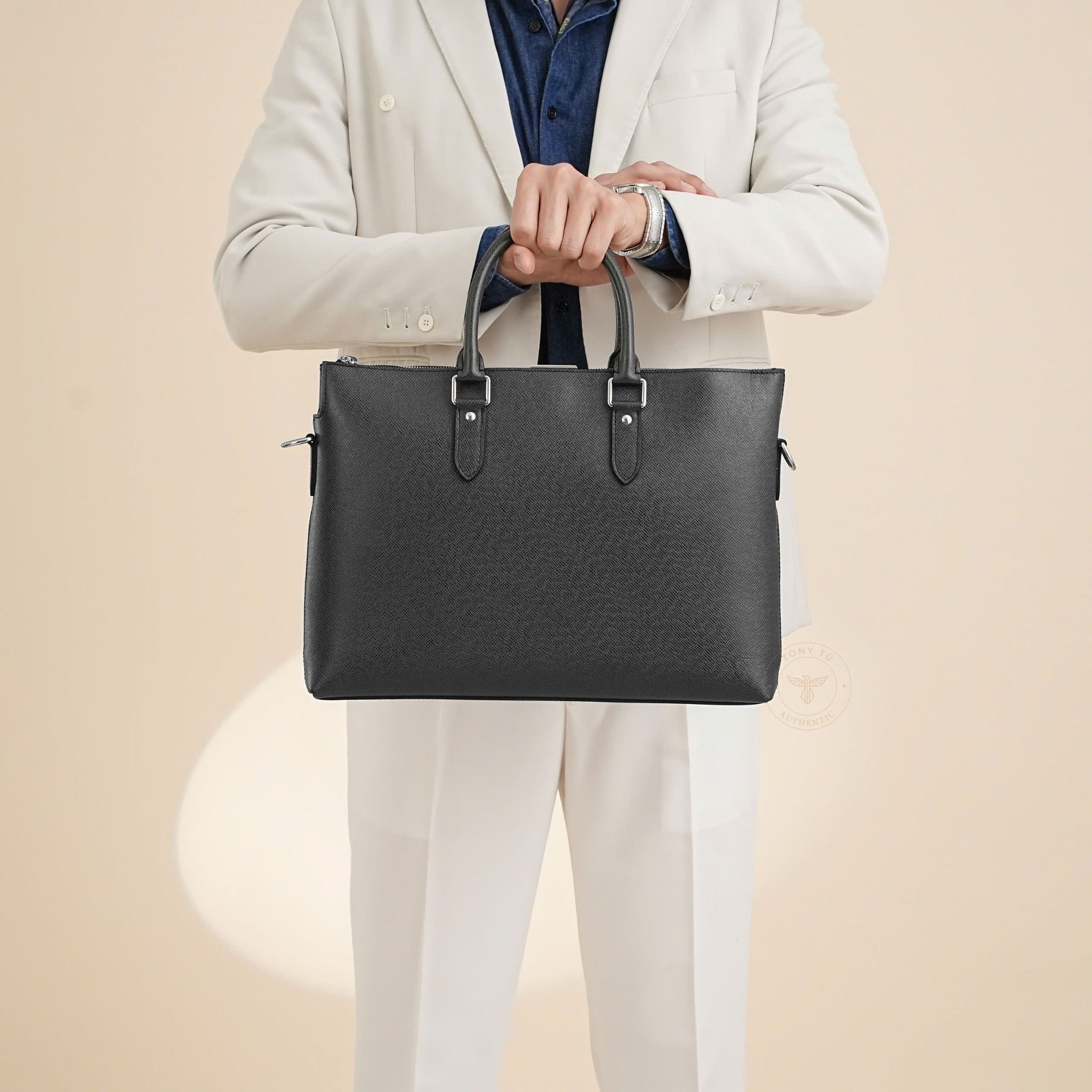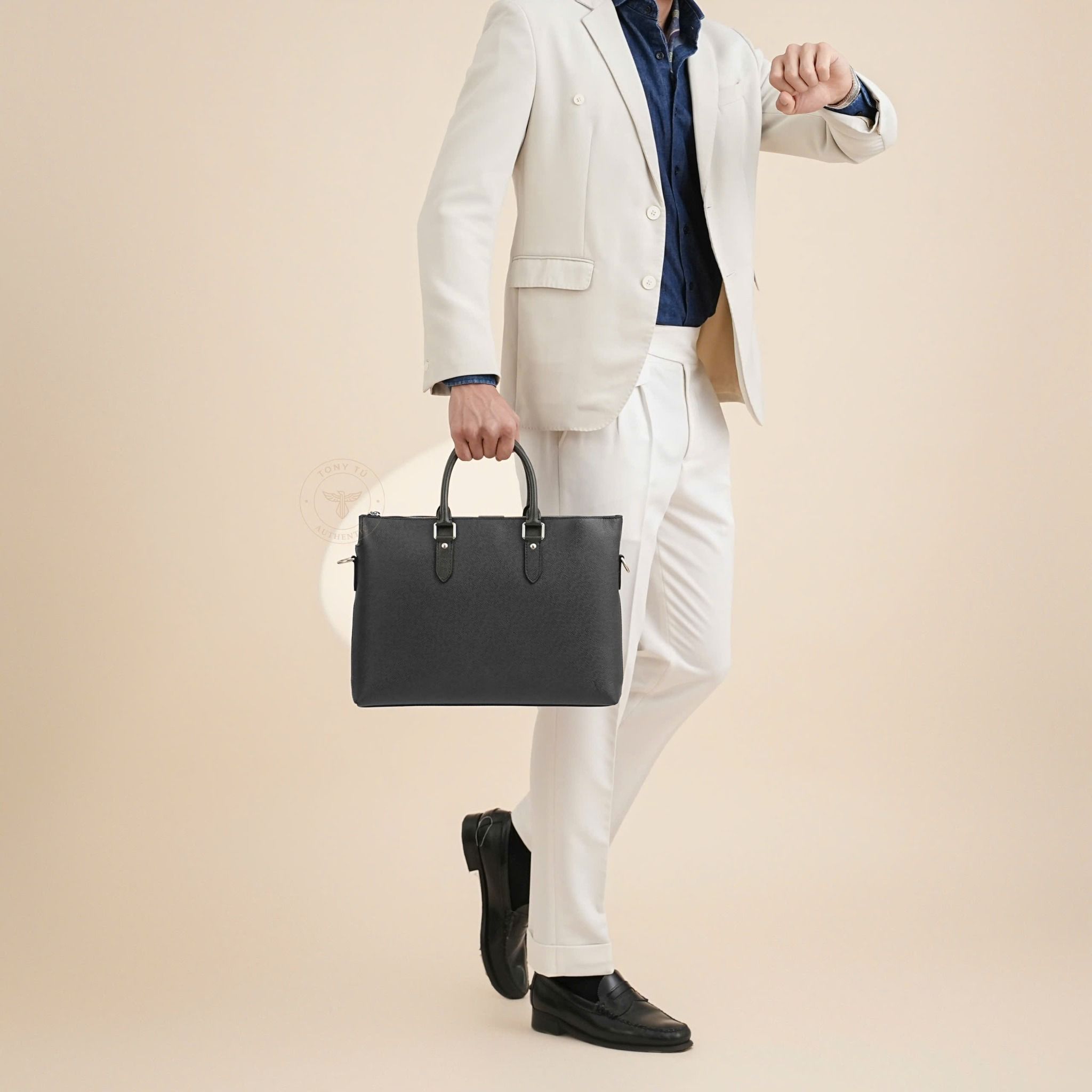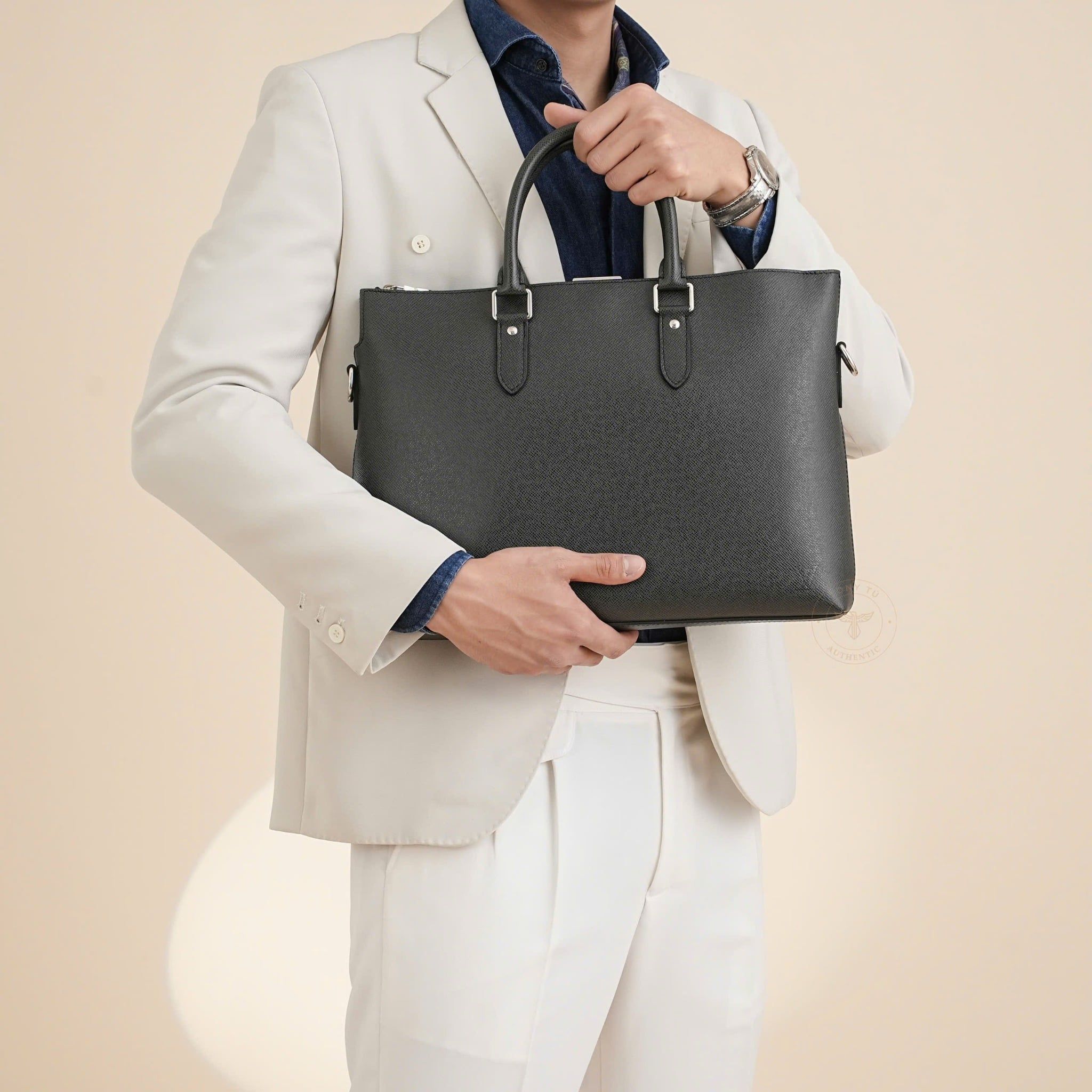- Tông đen lịch lãm formal kết hợp cùng những chi tiết ánh bạc, đảm bảo cặp tài liệu sẽ là sự lựa chọn lý tưởng để anh đi gặp đối tác và khách hàng.