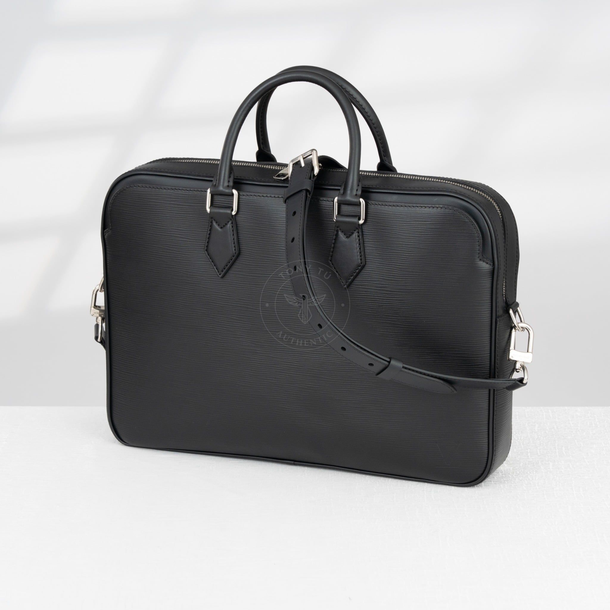 - Thiết kế ngăn chính rộng rãi để đựng laptop lên tới 13 inches, cùng với 1 ngăn phẳng trong, và 2 ngăn cho giấy tờ nhỏ. Chất liệu da Epi trứ danh của Louis Vuitton mang đến sự chắc chắn và độ bền vượt trội, cùng khả năng chống xước và kháng nước hoàn hảo.