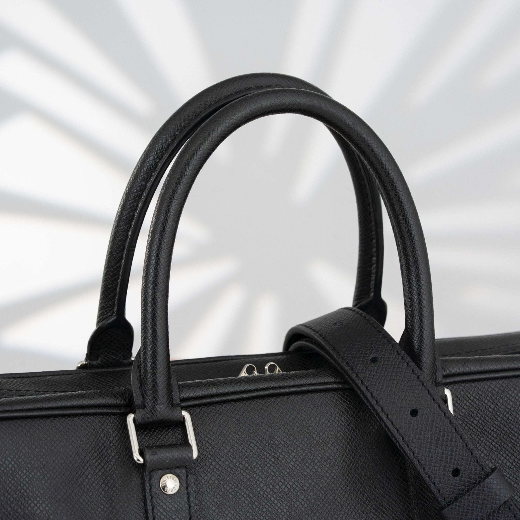 - Chất liệu da Taiga với vân chìm đặc trưng không chỉ tạo vẻ ngoài sang trọng mà còn giúp túi chống trầy tốt, giữ form đẹp qua thời gian. Thiết kế tối giản, liền mạch, thể hiện sự tự tin không cần lời nói.