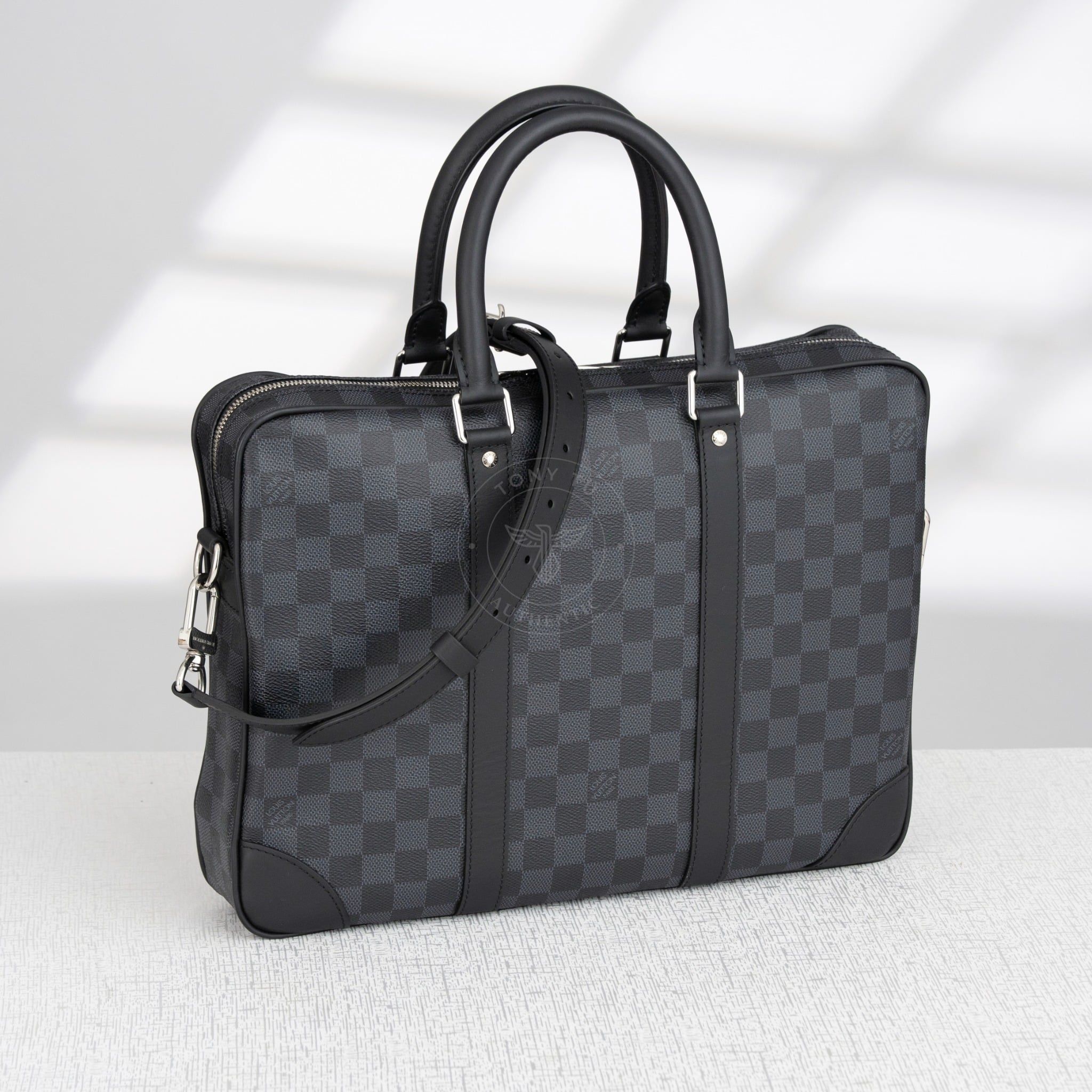 - Toàn bộ thân cặp được chế tác từ chất Damier Graphite phủ Vinyl, mang tới khả năng chống nước vượt trội.