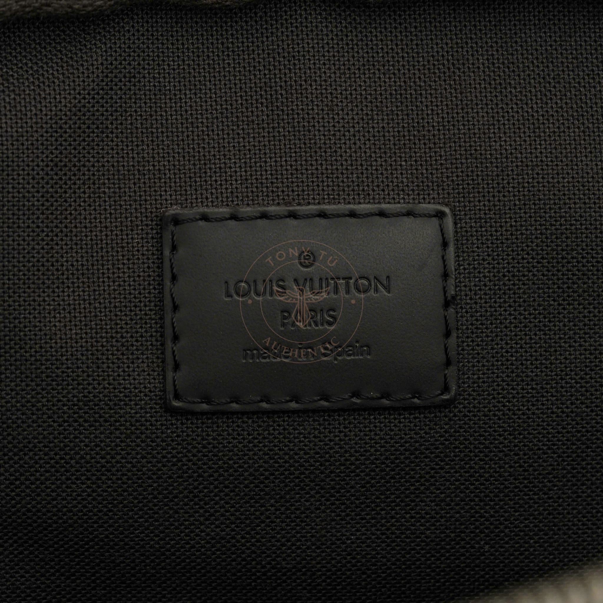 - Sử dụng chất liệu Canvas với họa tiết Damier Graphite trứ danh từ hãng. Sử dụng tông màu nâu đặc trưng, dễ dàng nhận biết của hãng.