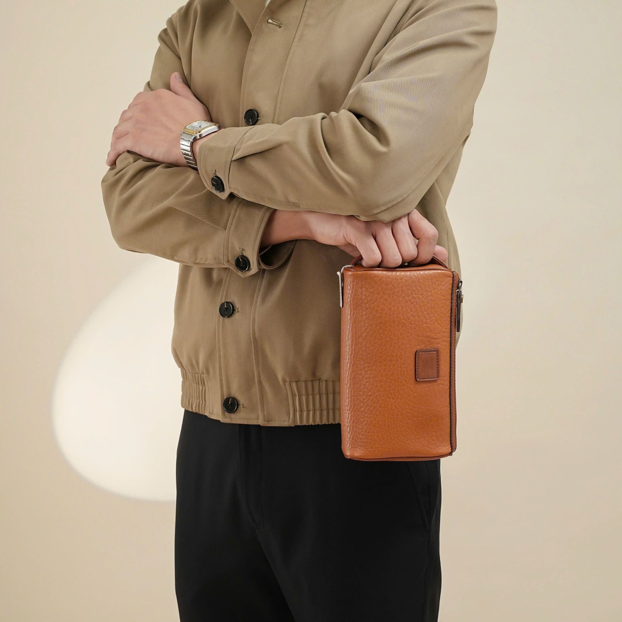- Cấu trúc tinh giản gồm 1 ngăn lớn duy nhất cho điện thoại, ví tiền hay hộp kính, cùng với đó là 1 ngăn phẳng cho tiền mặt hay các giấy tờ nhỏ như Bill hay danh thiếp. Thiết kế tổng thể của Clutch tựa như một chiếc túi Wash thu nhỏ, độc đáo và phá cách.