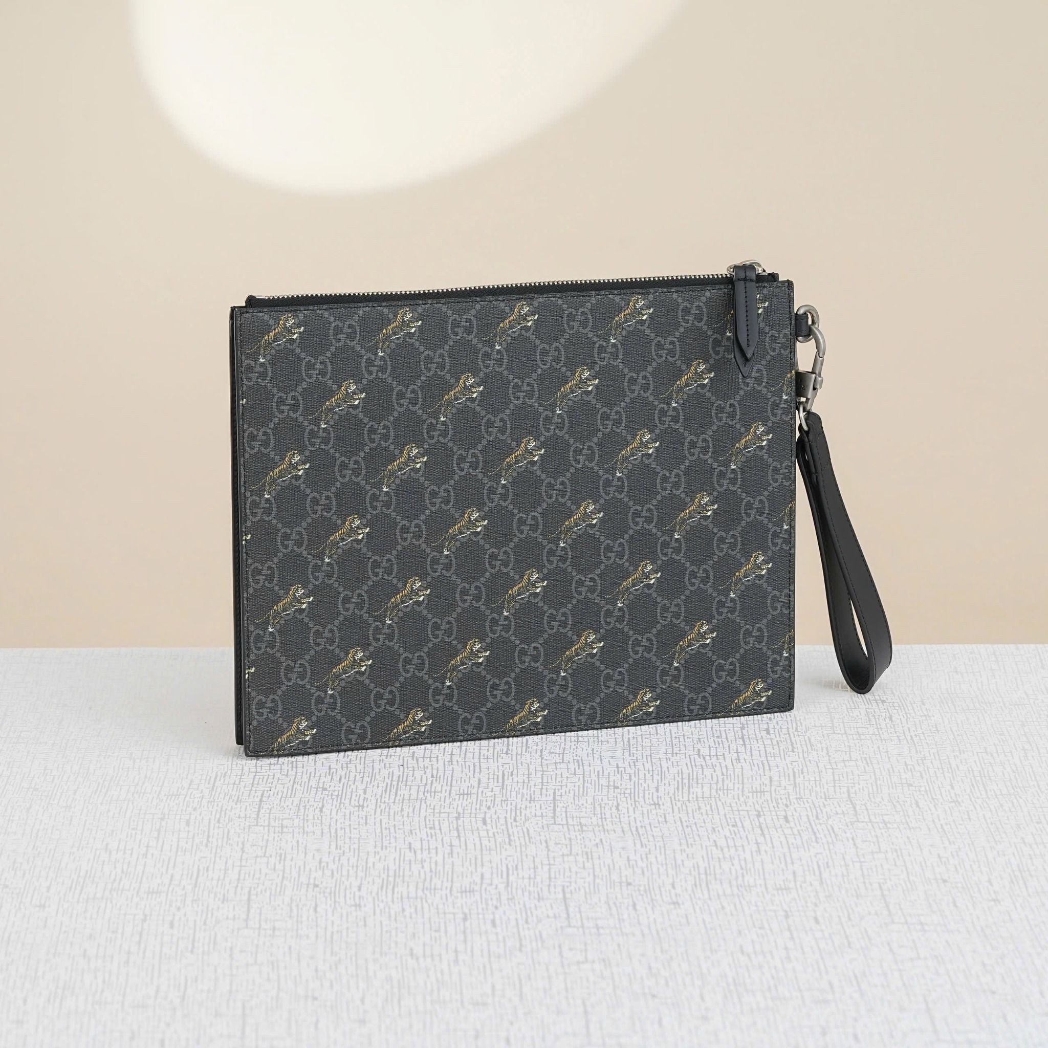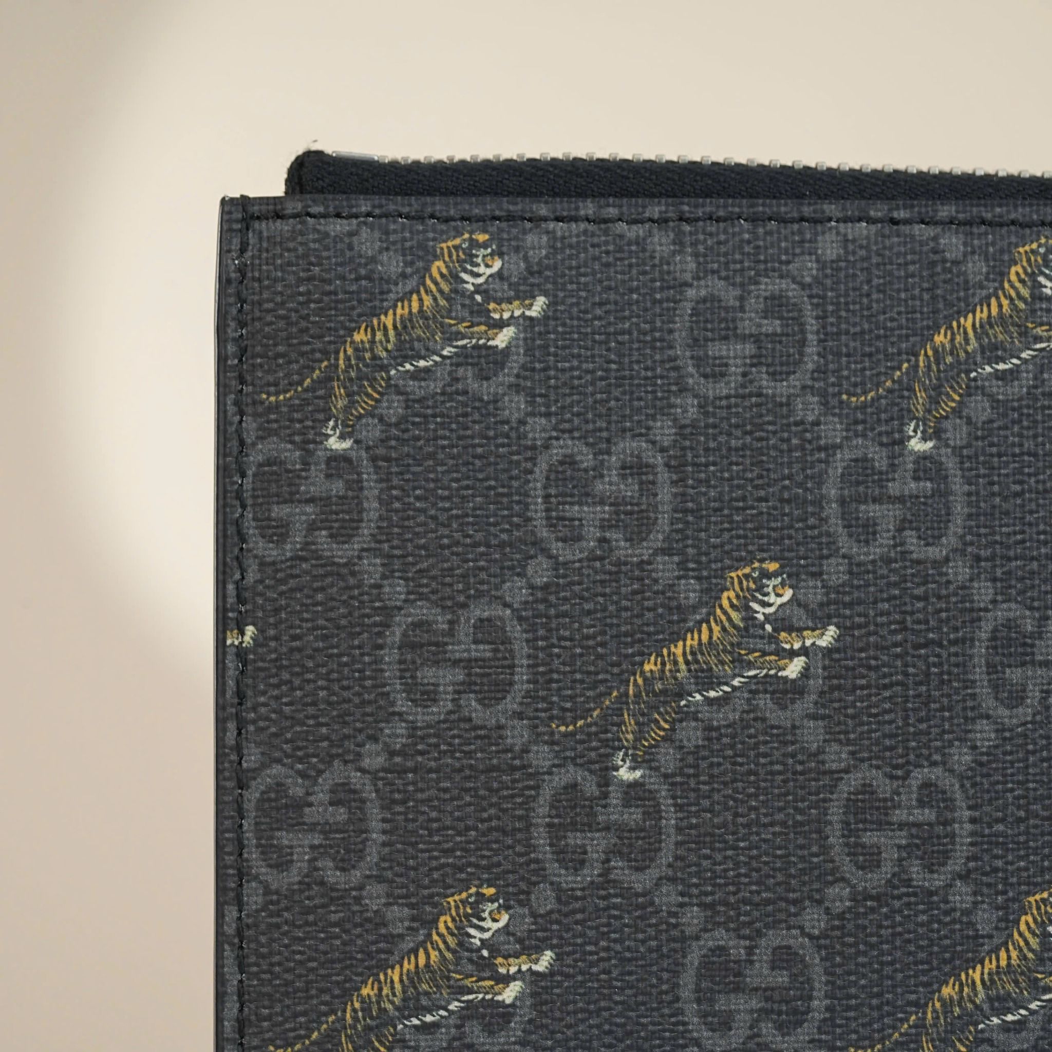- Họa tiết hổ Bengal được tỉ mỉ vẽ tay trên nền GG Monogram tạo nên tổng thể hài hòa giữa vẻ đẹp thời thượng và tinh hoa cổ điển.
