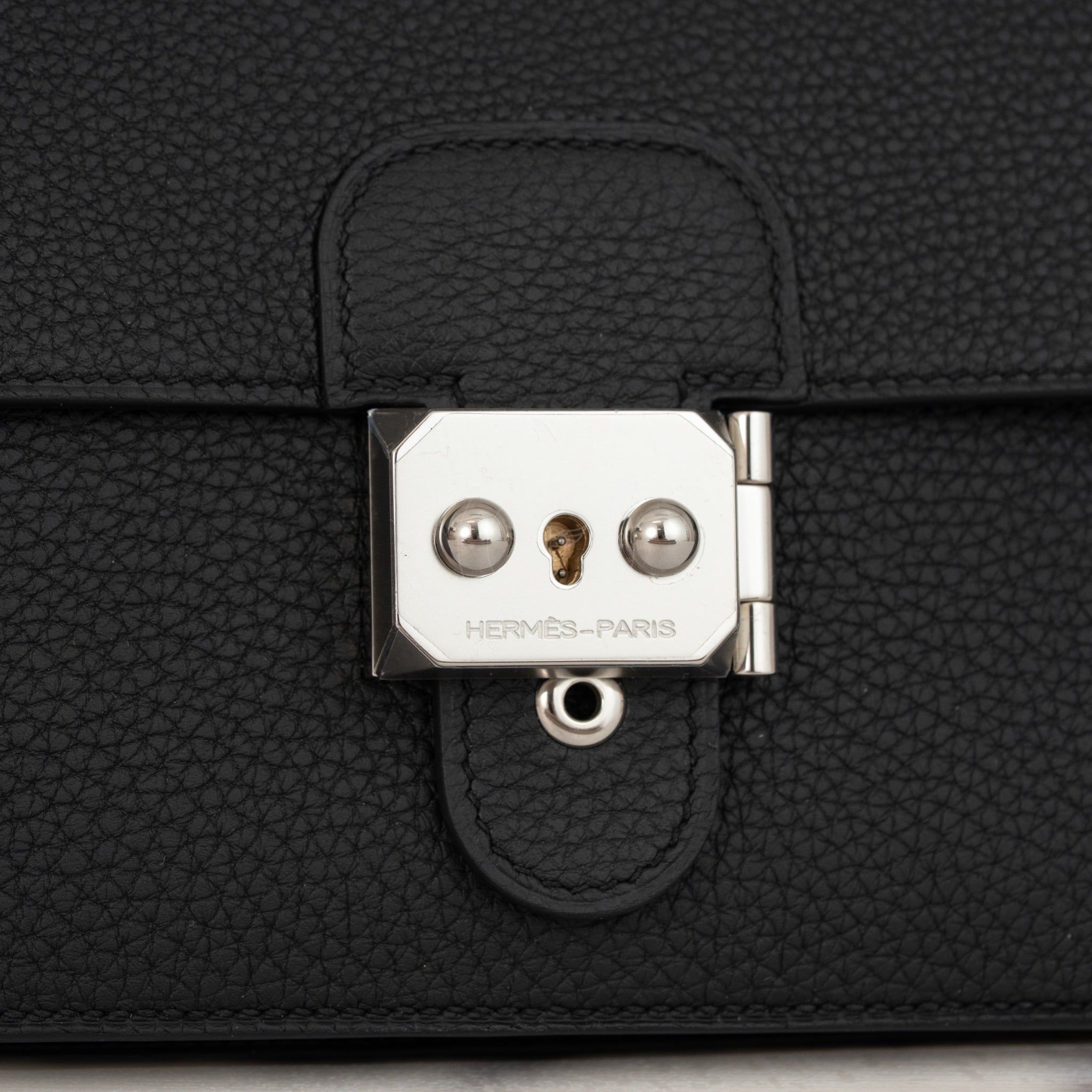 - Thiết kế tinh giản gồm 1 ngăn chứa duy nhất và 1 ngăn phẳng phụ. Chế tác từ bò cao cấp của Hermès, nổi tiếng với khả năng giữ màu đỉnh cao với sự bền bỉ trường tồn.
