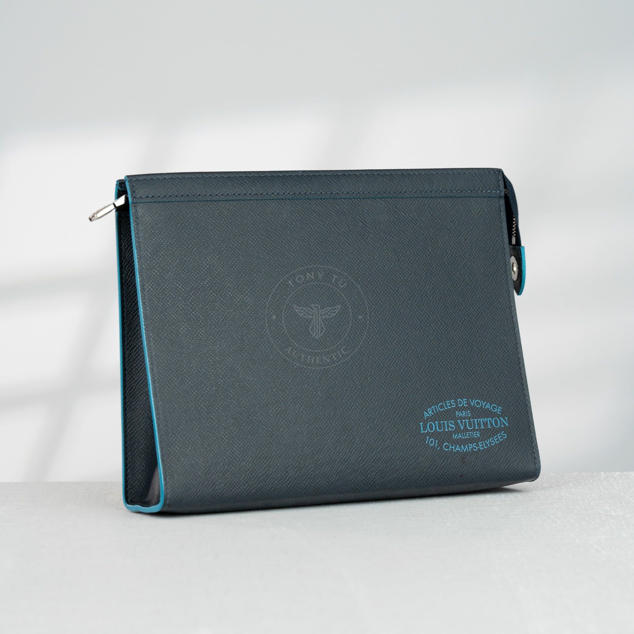 Clutch Louis Vuitton “Articles De Voyage” MM Noir Taiga (Đen/Navy Rim)