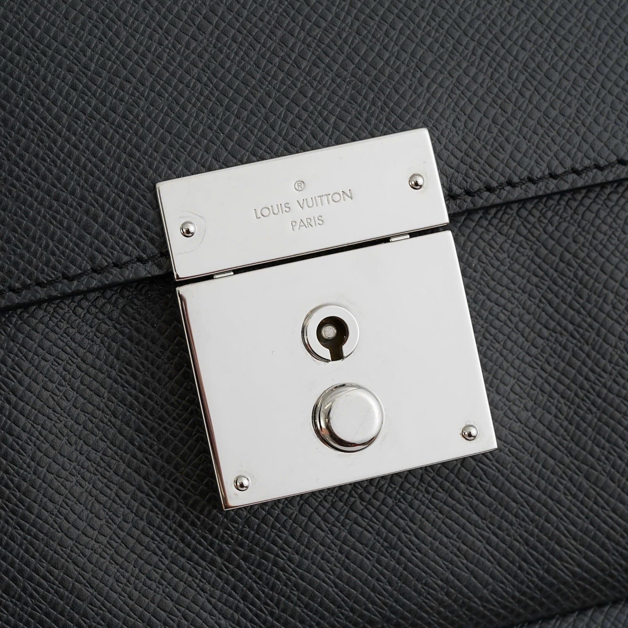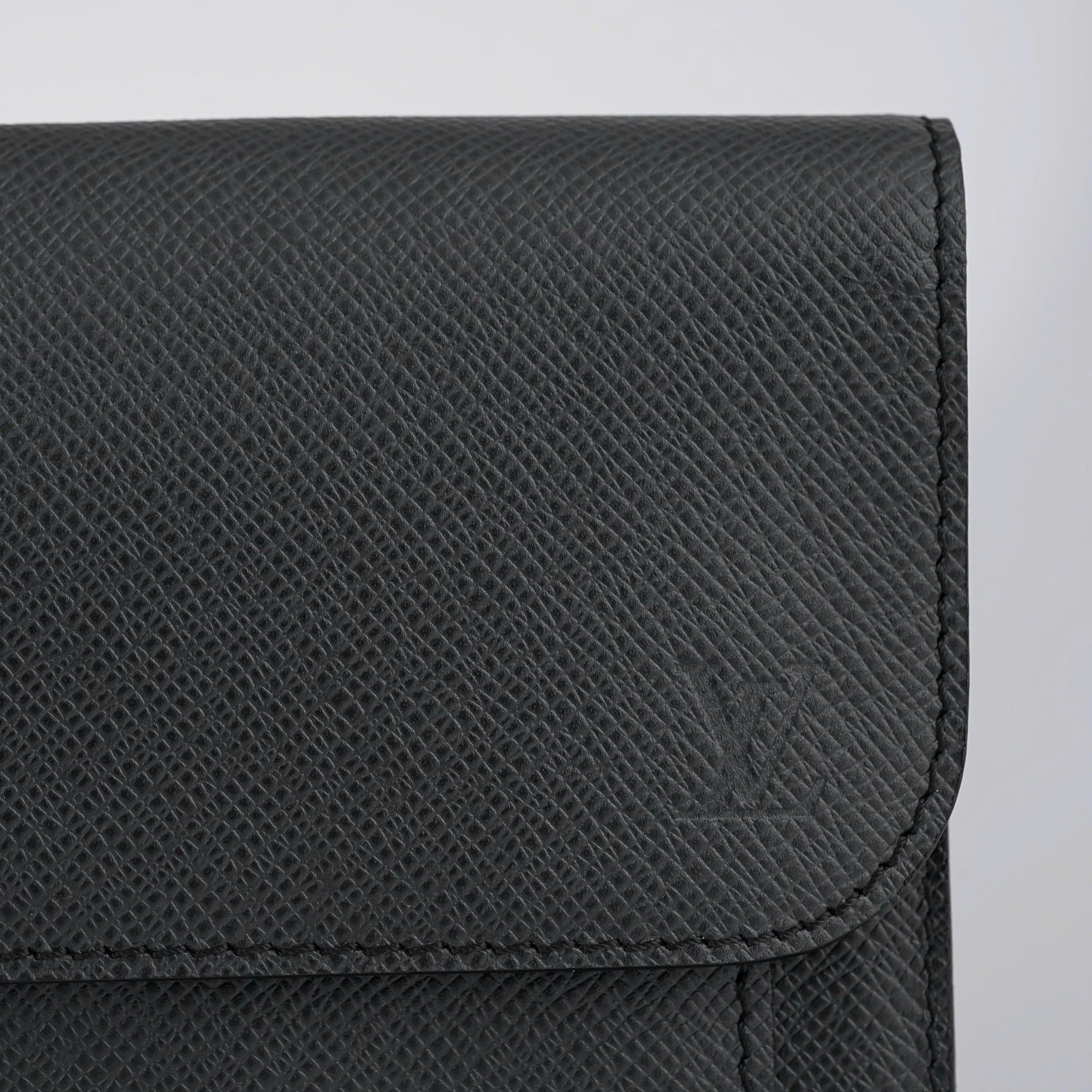 - Crafted from Louis Vuitton’s legendary Taiga leather, highly coveted for its superior water and scratch resistance.