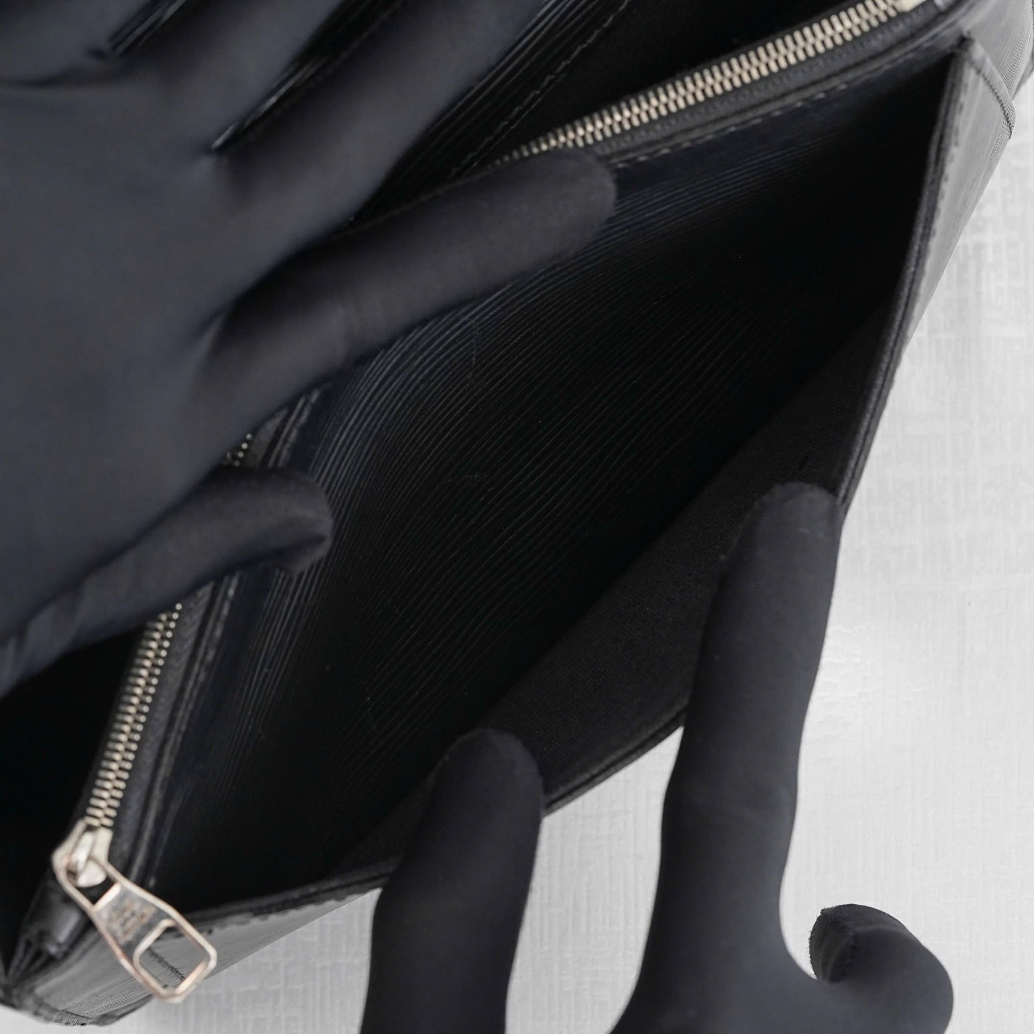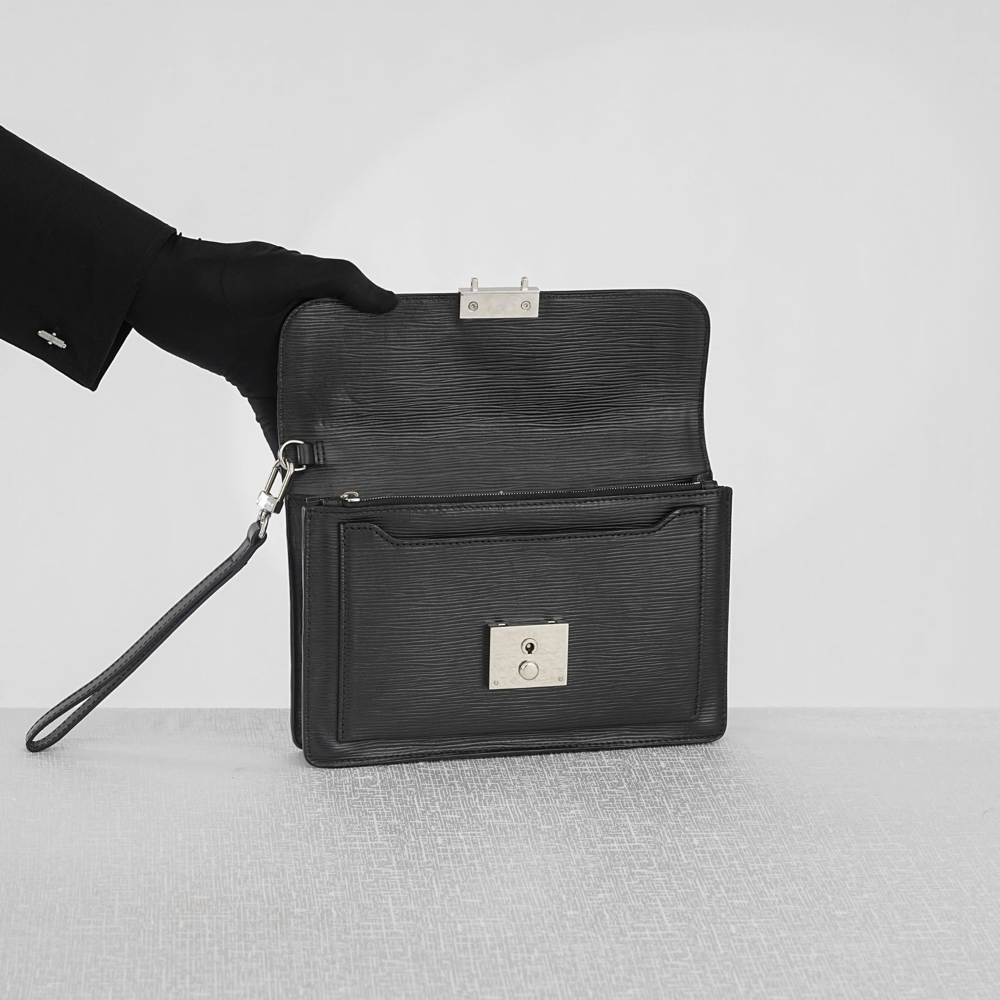 - Crafted from signature Epi leather, known for its durability, scratch resistance, and water resistance, with distinctive horizontal grains that add a touch of sophistication.