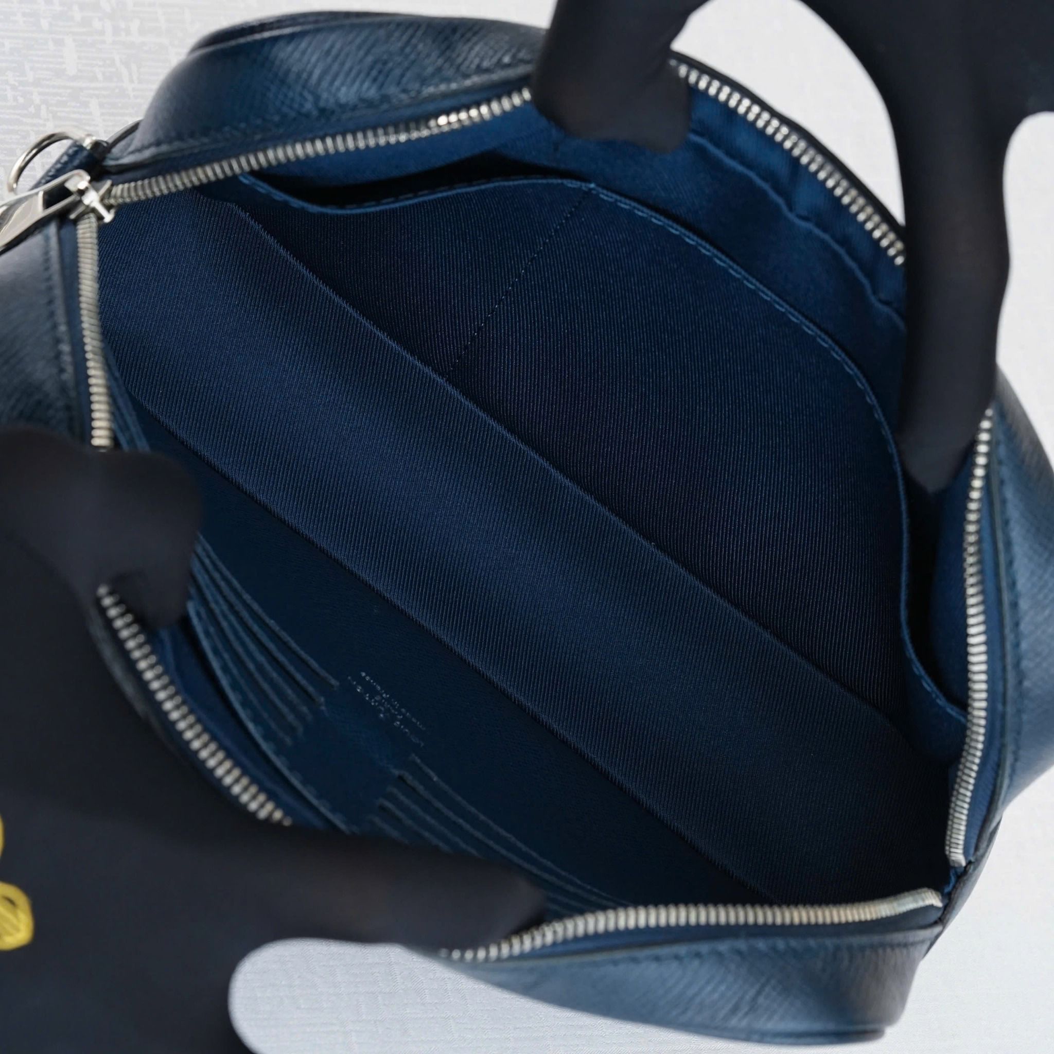 - Crafted from Louis Vuitton's legendary Taiga leather, inspired by the forests of northern Russia, it is durable, water-resistant, and scratch-resistant.