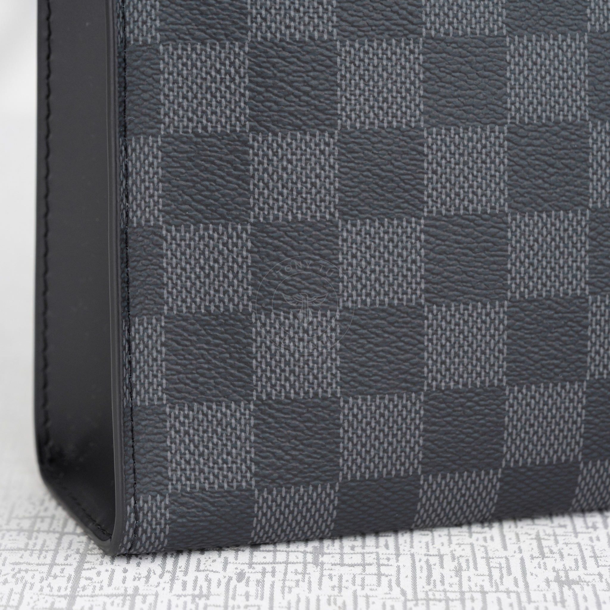 - Tone xám đen kết hợp họa tiết Damier tạo nên điểm nhấn đầy nghệ thuật, thu hút mọi ánh nhìn.