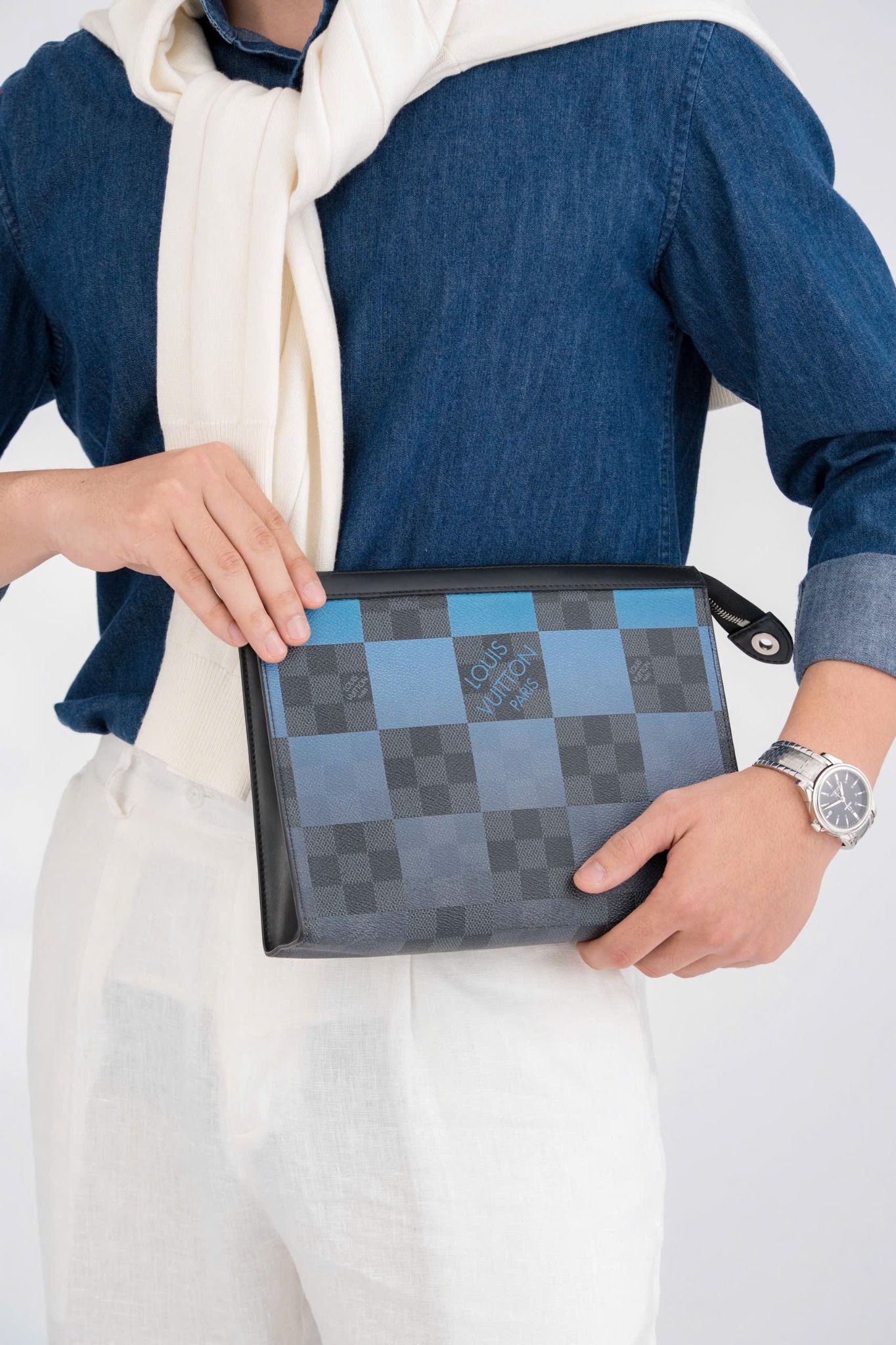 - Thuộc dòng sản phẩm Voyage nổi tiếng của Louis Vuitton, chiếc Clutch này là sự kết hợp hoàn hảo giữa thiết kế thanh lịch và hiện đại cùng form dáng vuông vắn, đầy nam tính.