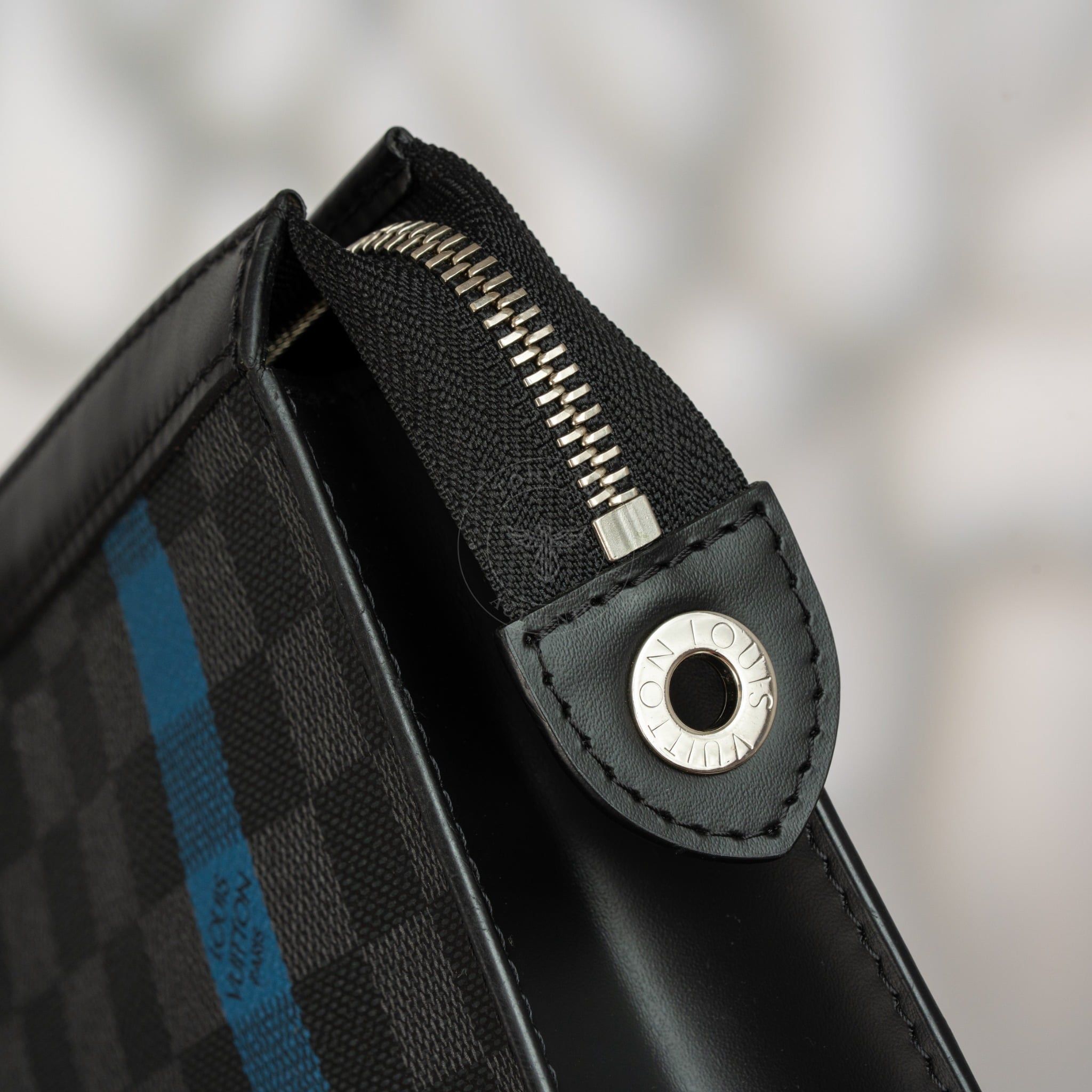 - Sở hữu chất liệu Canvas cùng hoạ tiết Damier Graphite màu đen xám đặc trưng, kết hợp đường sọc Stripe xanh trang trí nổi bật ở bề mặt, tạo điểm nhấn trẻ trung nhưng vẫn giữ được vẻ nam tính và tinh tế.