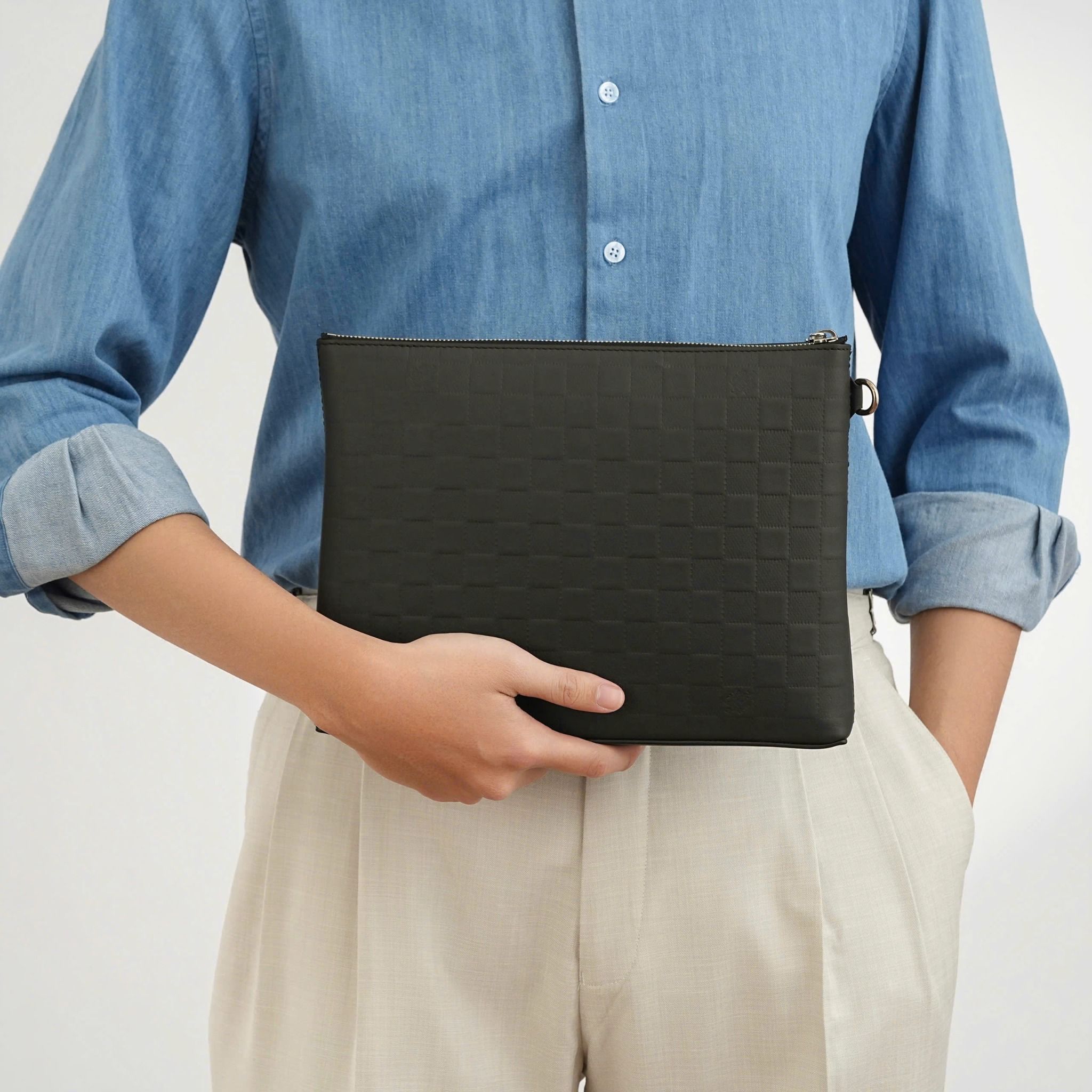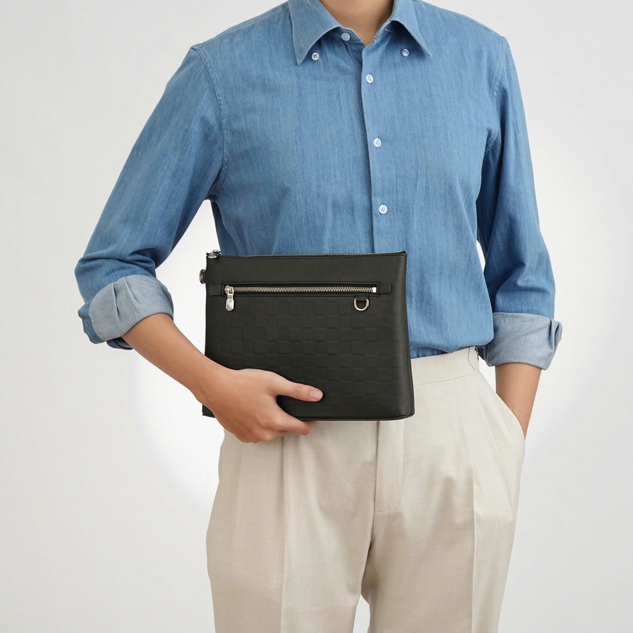- Crafted from soft Infini calfskin, this pouch provides a luxurious and comfortable feel.