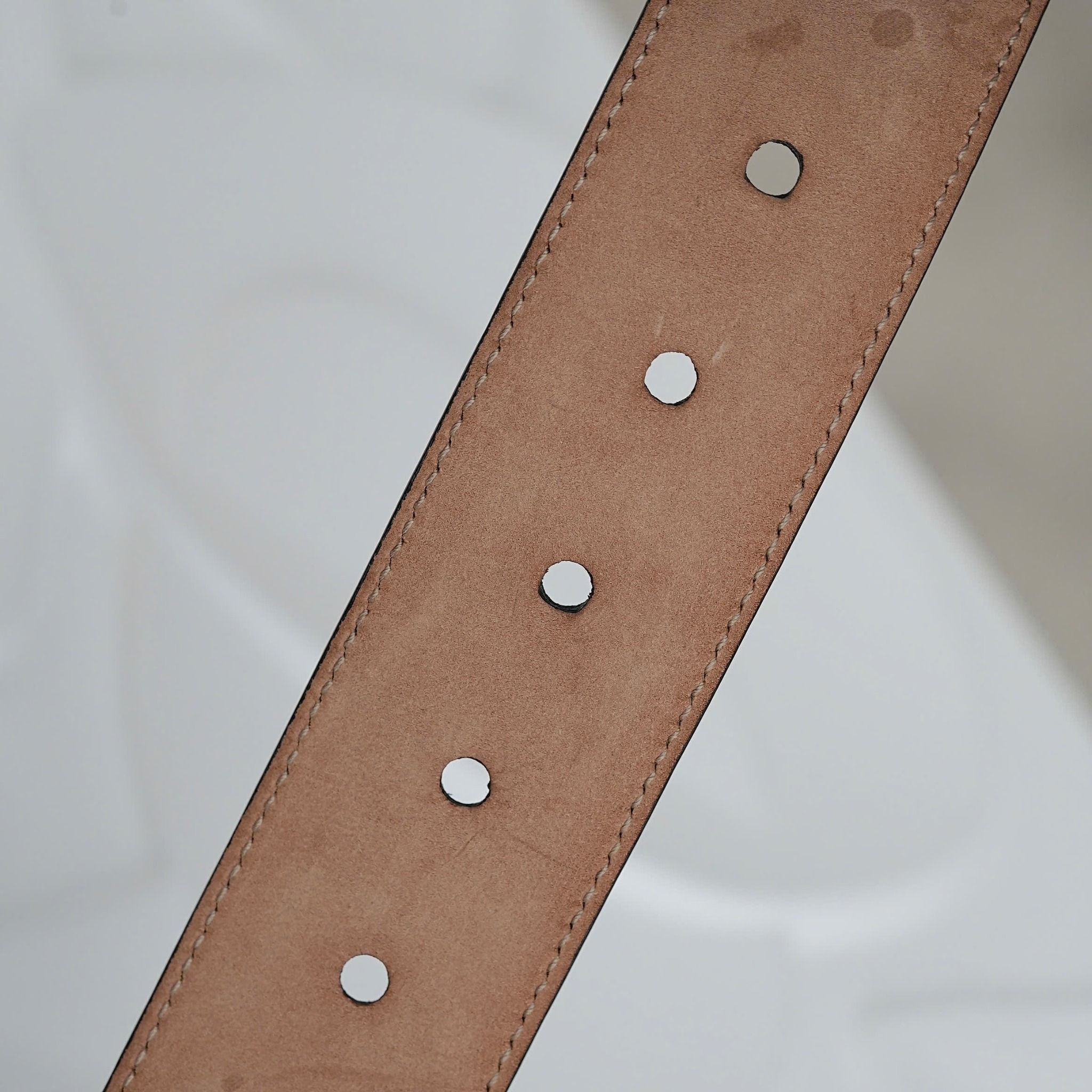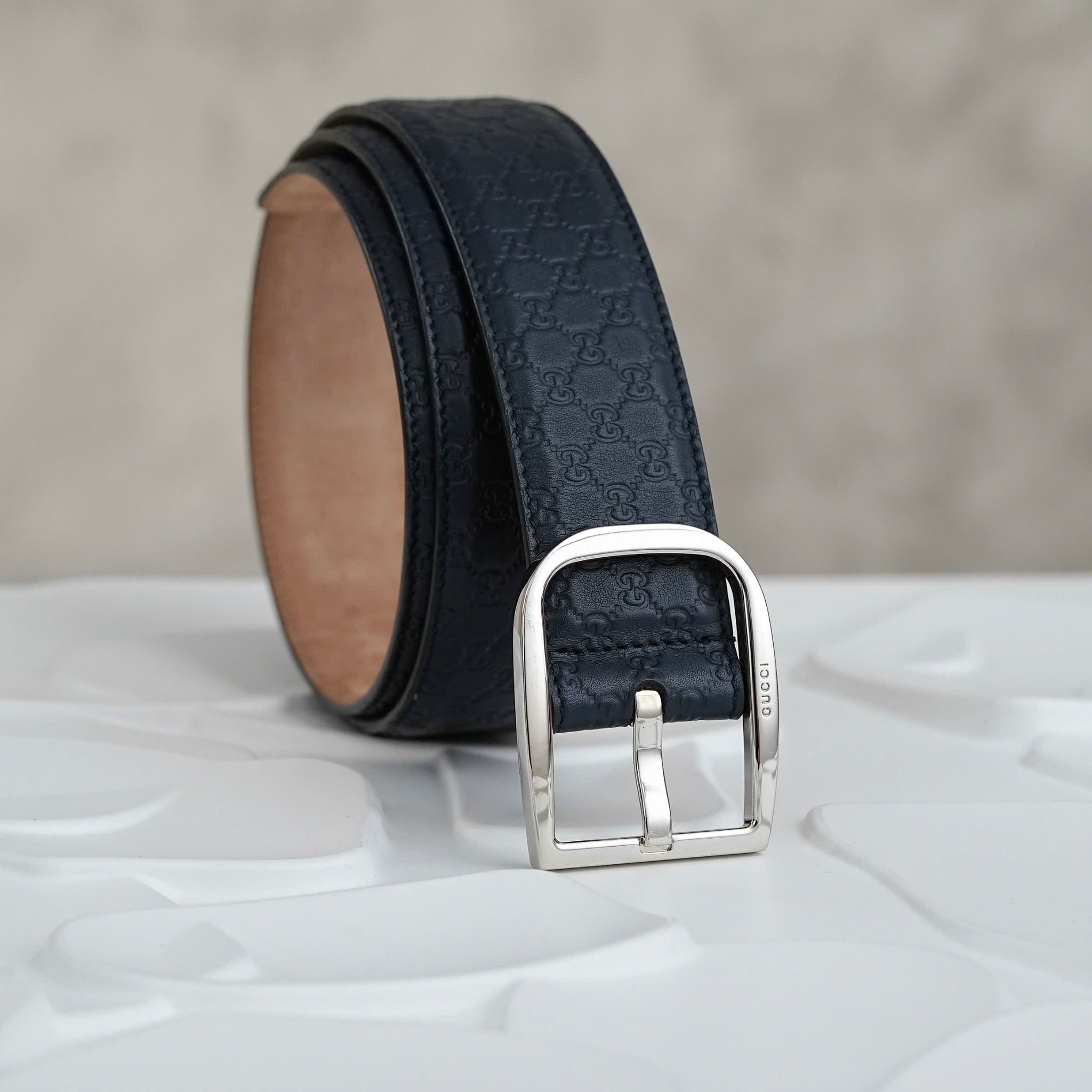 - The belt is distinguished by its minimalist yet stylish silver buckle, which adds to its overall elegance. This Gucci belt epitomizes luxury and class, reaffirming the brand's prestigious status in the fashion industry.