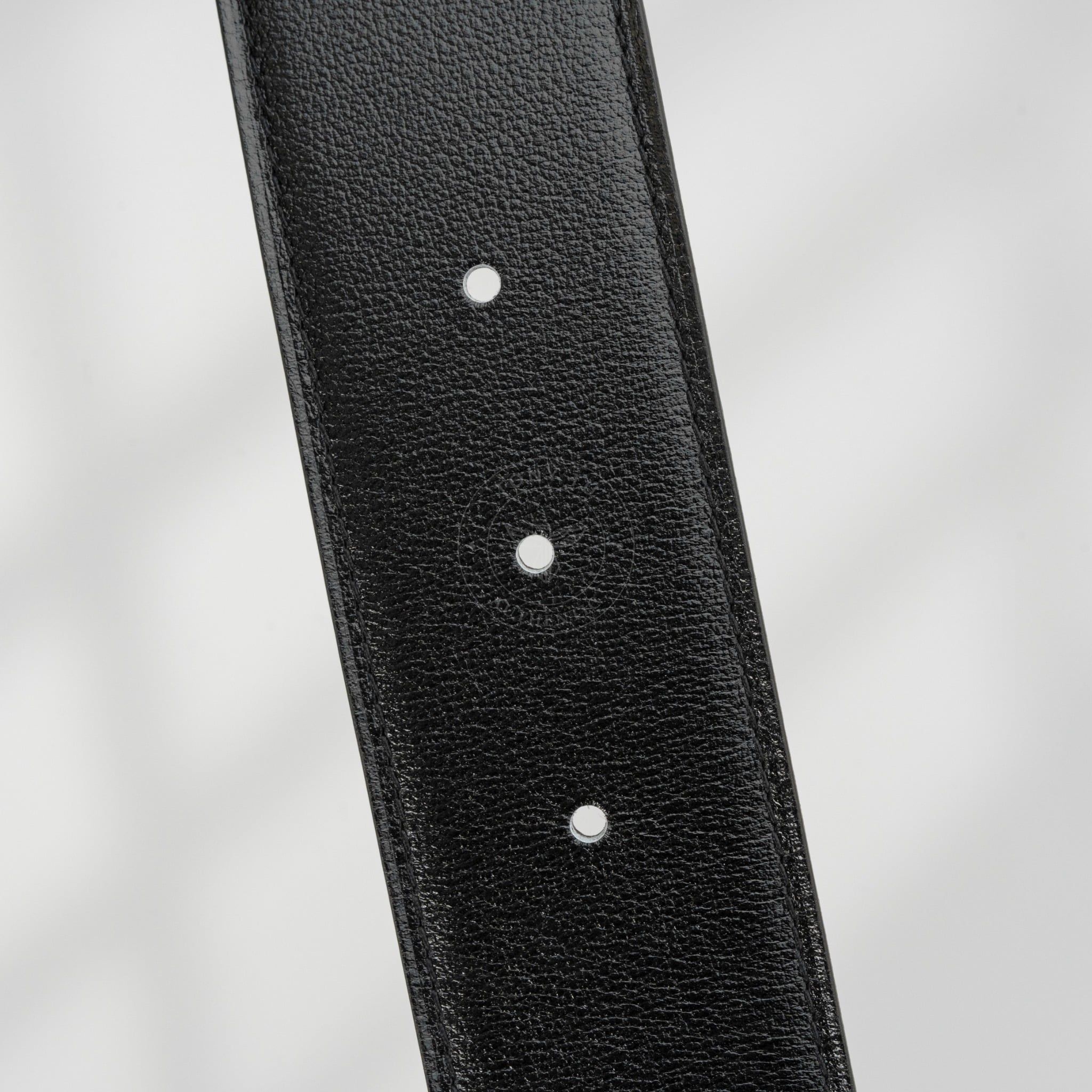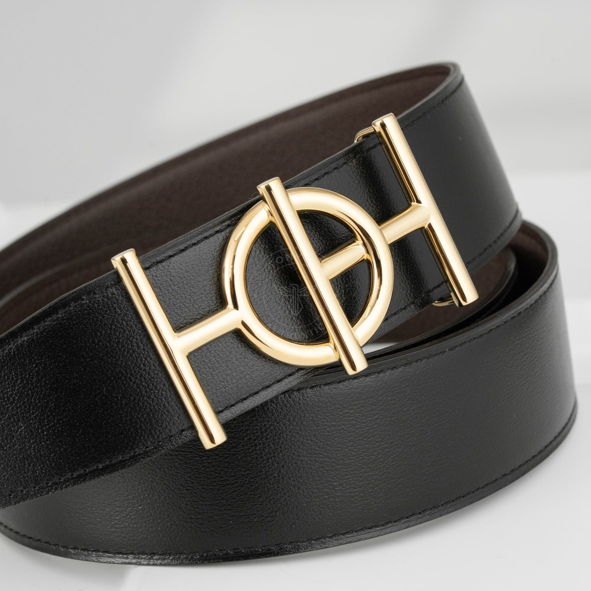 - Dây da reversible kết hợp giữa Box Calf đen và Togo Nâu Gold– hai tông màu kinh điển, dễ phối với mọi kiểu trang phục, từ suit công sở cho đến blazer dạo phố.