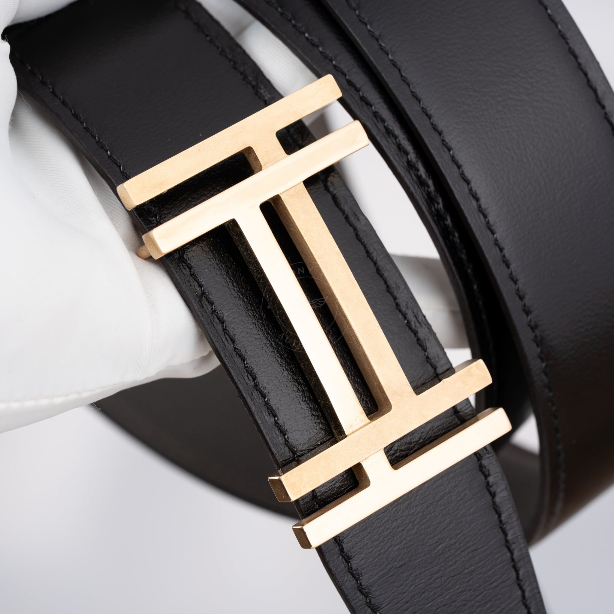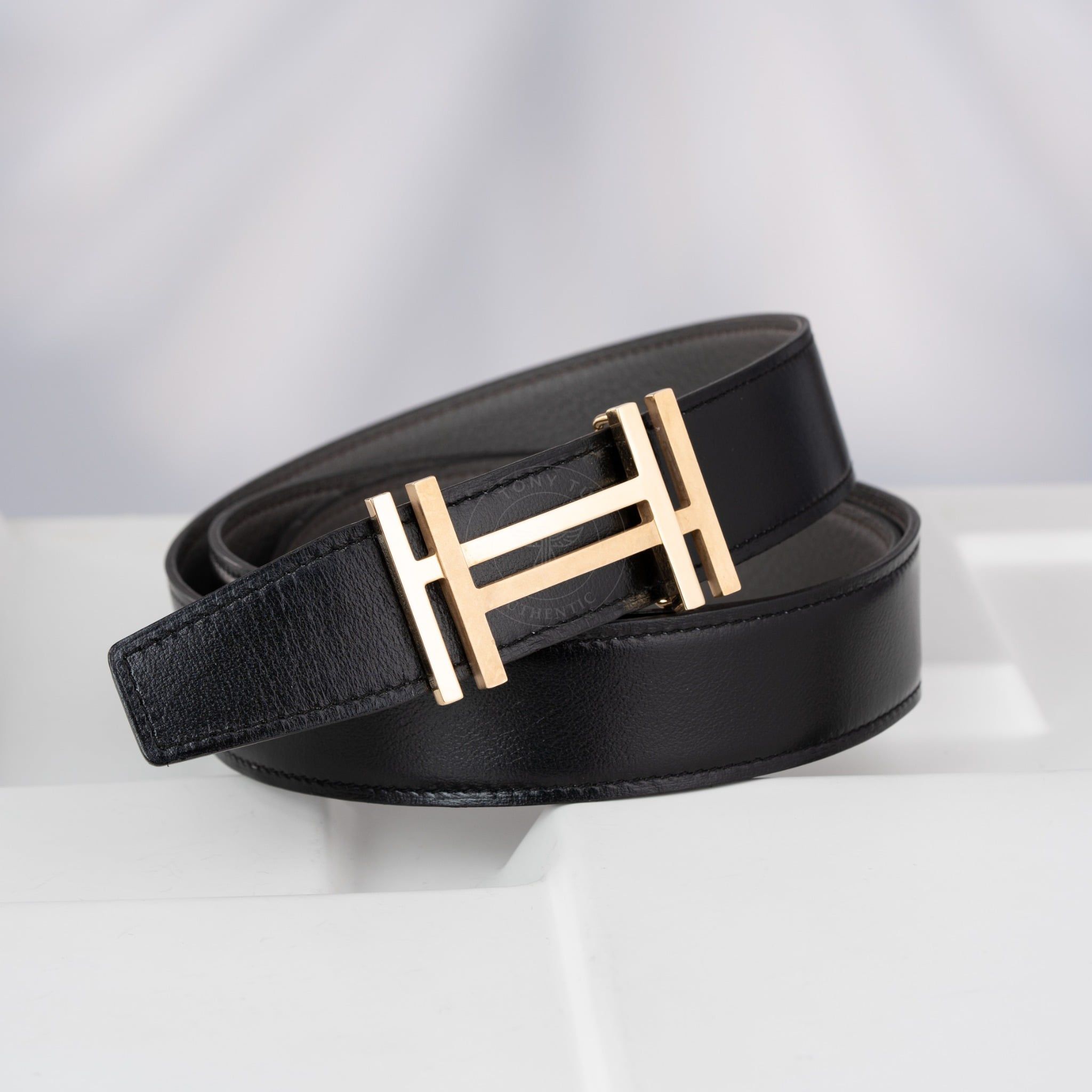 Thắt lưng Hermes H au Carré Reversible Box Calf/Togo (Đen/Xám) size 105