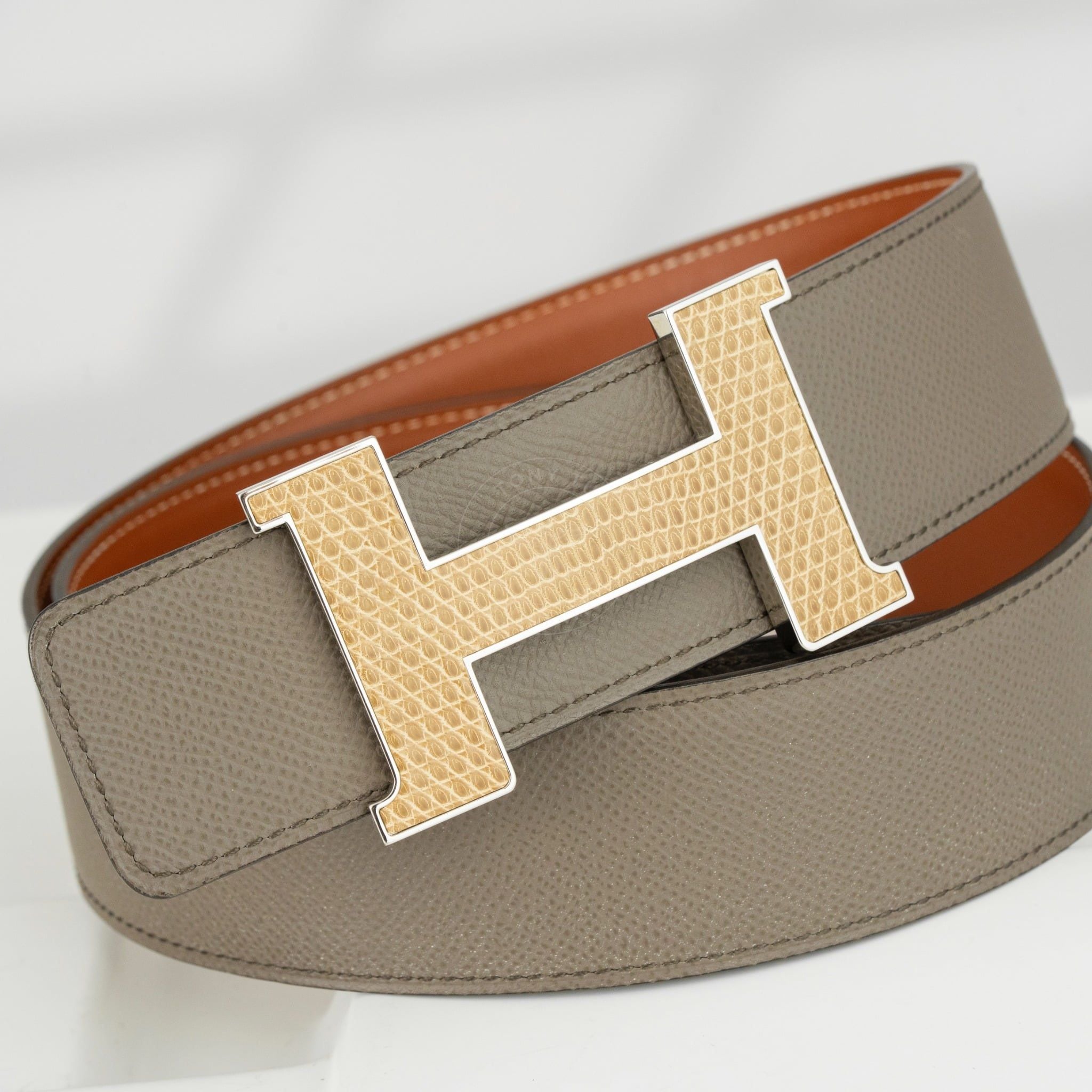 Thắt lưng Hermès H Constance Lizard Reversible Epsom/Boxcalf (Xám/Nâu Đỏ) (Limited) size 90
