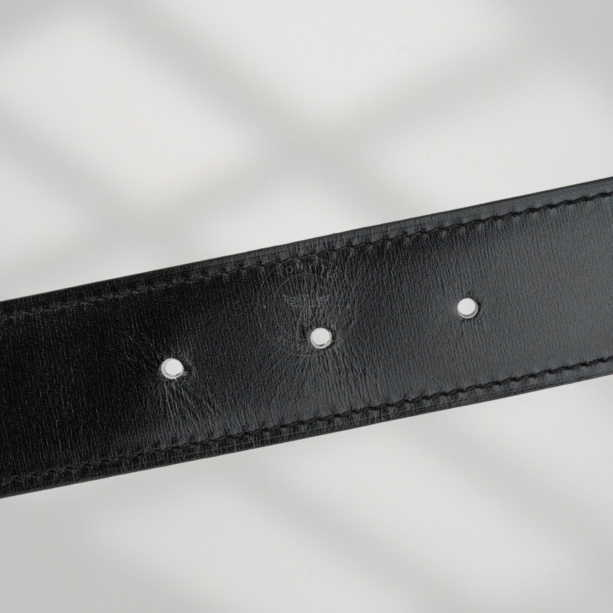 - Dây da reversible kết hợp giữa Box Calf đen và Togo nâu, hai tông màu kinh điển, dễ phối với mọi kiểu trang phục, từ suit công sở cho đến blazer dạo phố.