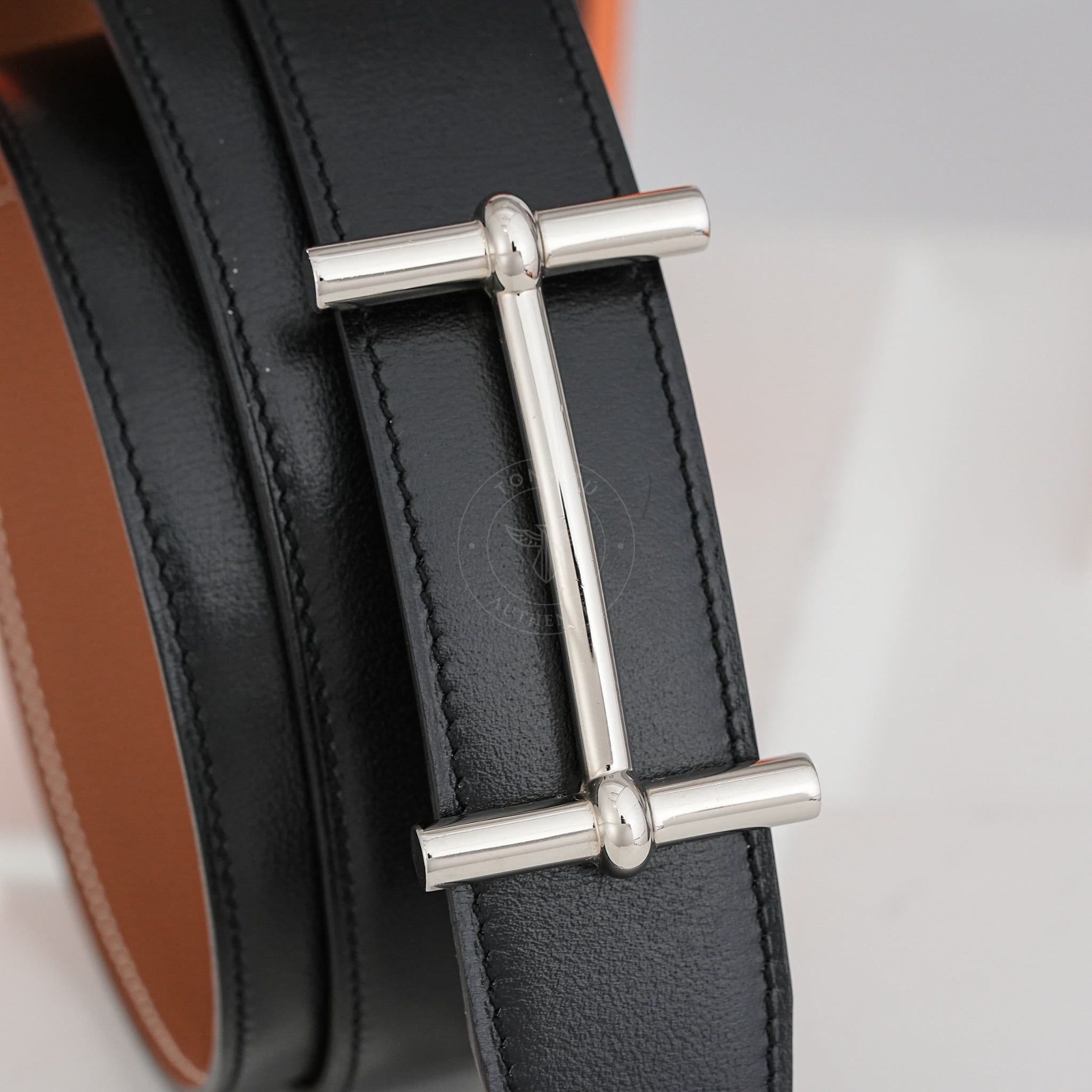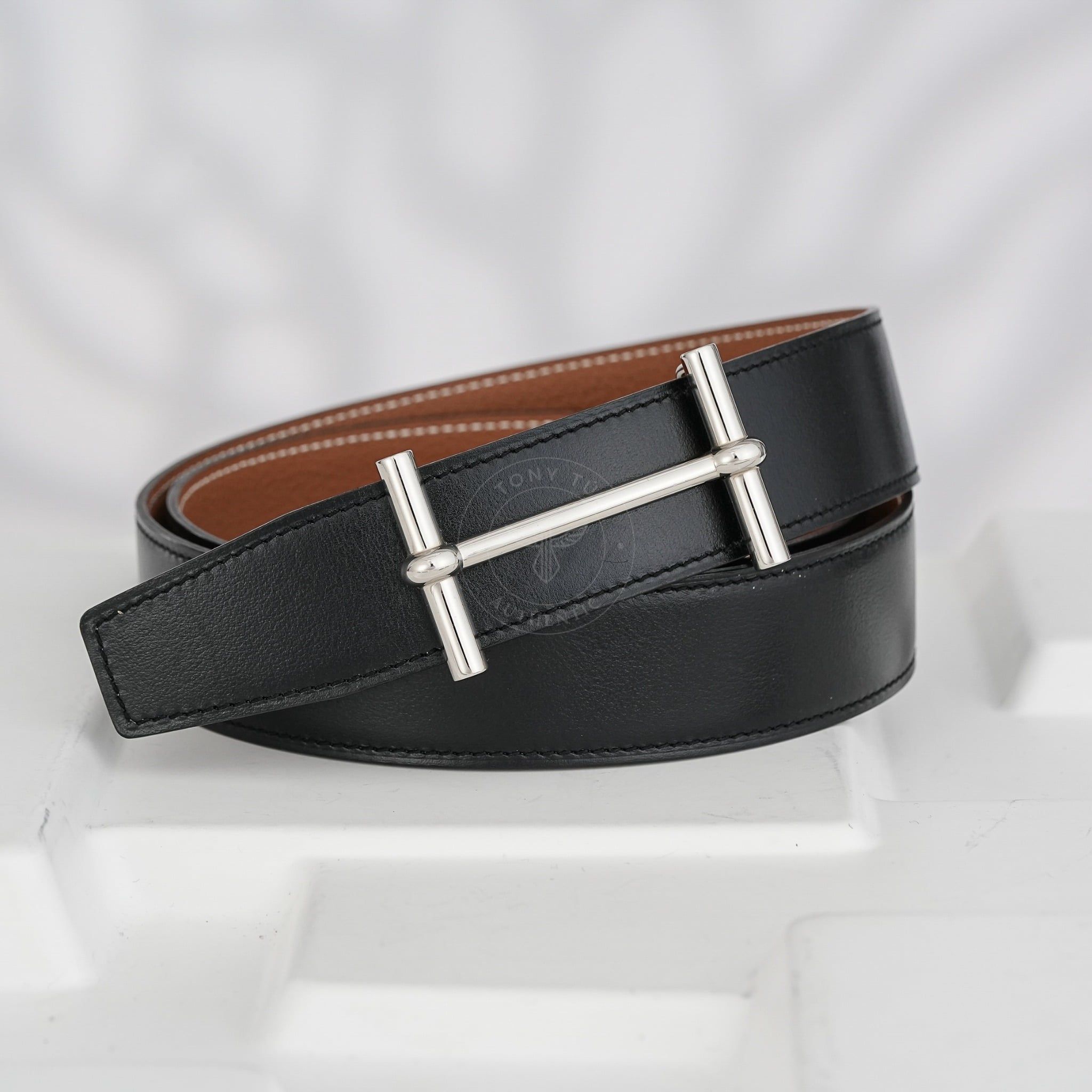 Thắt lưng 𝐇𝐞𝐫𝐦𝐞̀𝐬 𝐇 𝐒𝐢𝐥𝐯𝐞𝐫 𝐁𝐮𝐜𝐤𝐥𝐞 𝐑𝐞𝐯𝐞𝐫𝐬𝐢𝐛𝐥𝐞 𝐁𝐨𝐱 𝐂𝐚𝐥𝐟/𝐓𝐨𝐠𝐨 (Đen/Nâu) Size 90