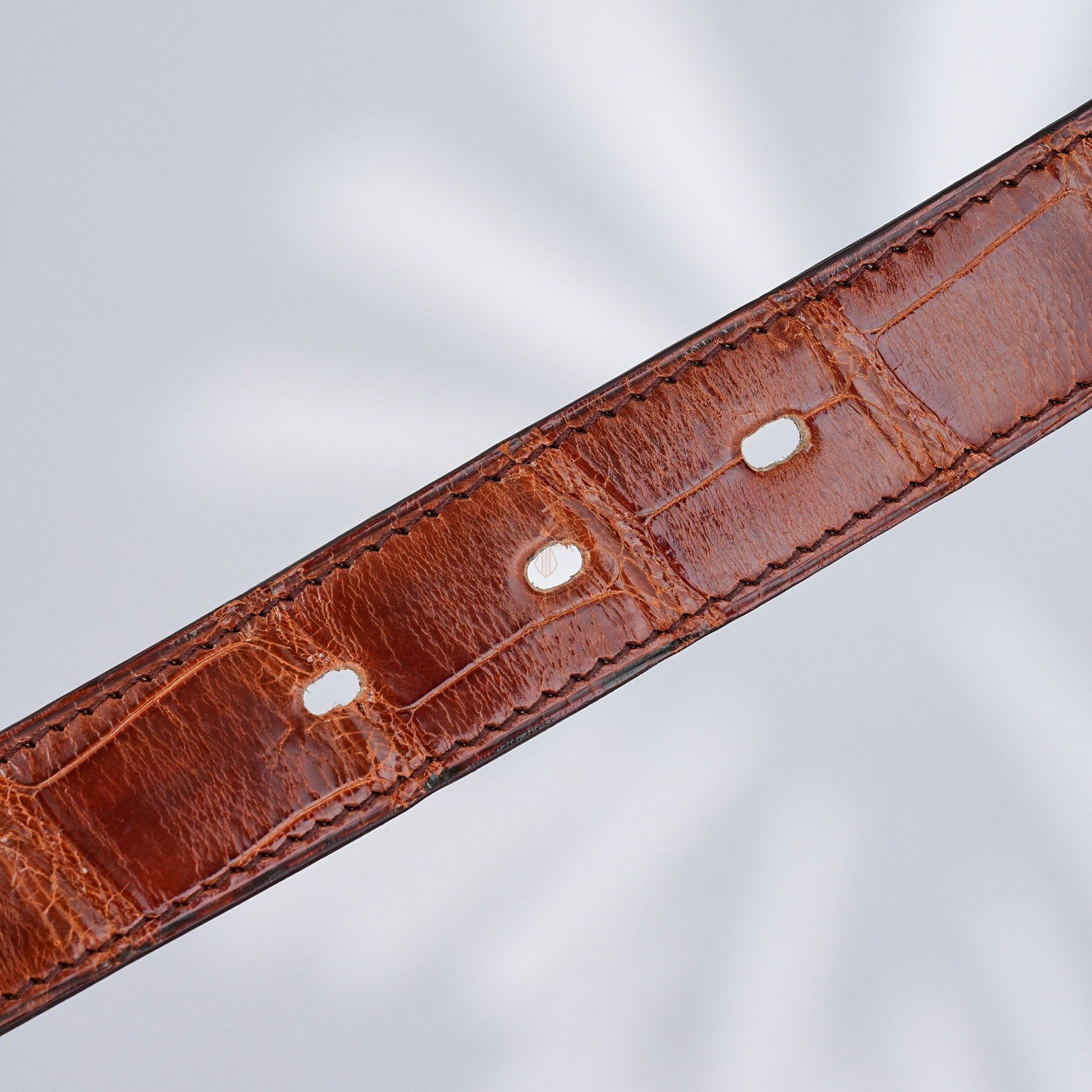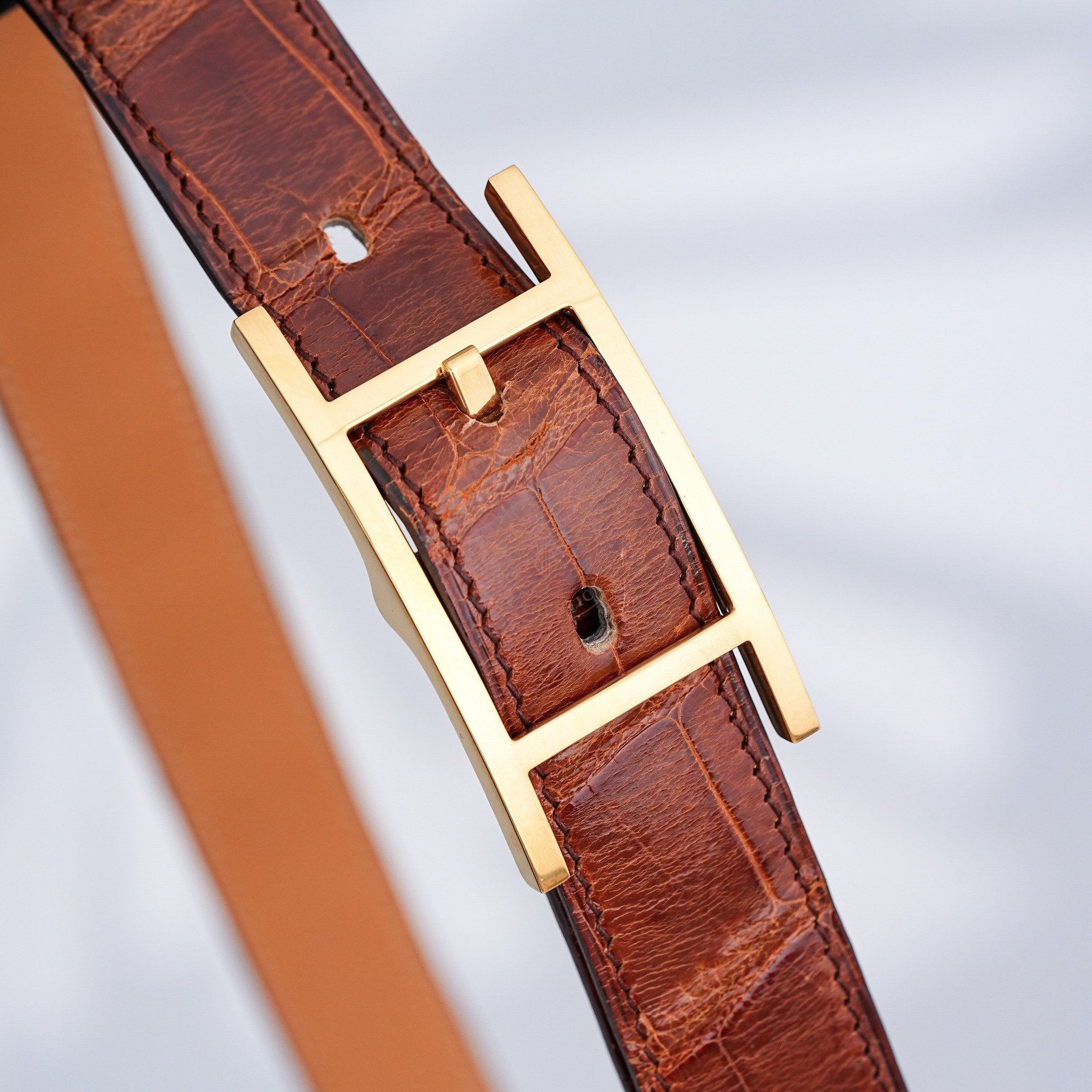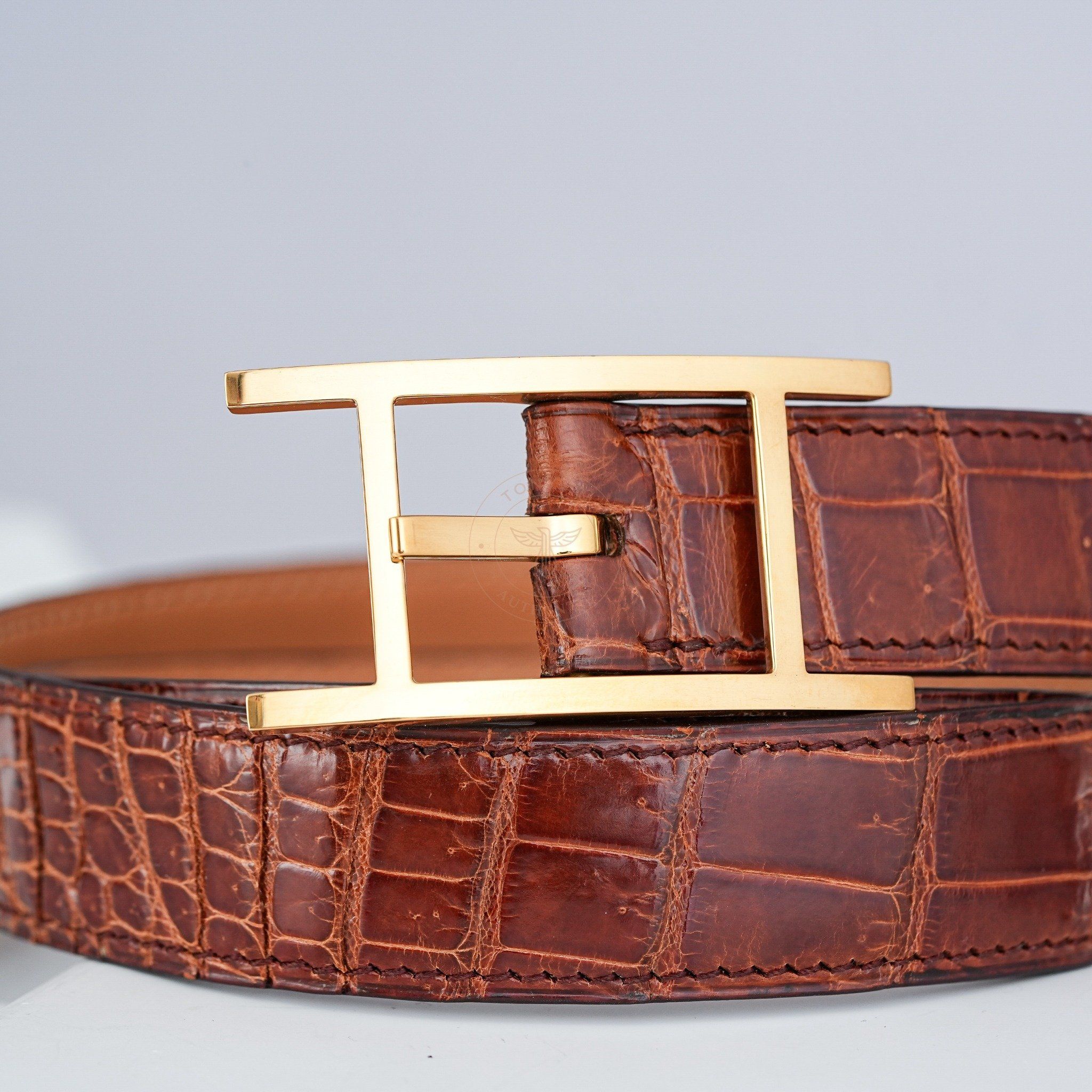 - Dây lưng được chế tác từ da cá sấu tự nhiên, một trong những chất liệu quý hiếm và đắt giá nhất thế giới. Từng vân da đều được chọn lọc và xử lý tỉ mỉ bởi các nghệ nhân Hermes, tạo nên bề mặt mềm mại, bóng nhẹ và vô cùng bền bỉ theo thời gian.