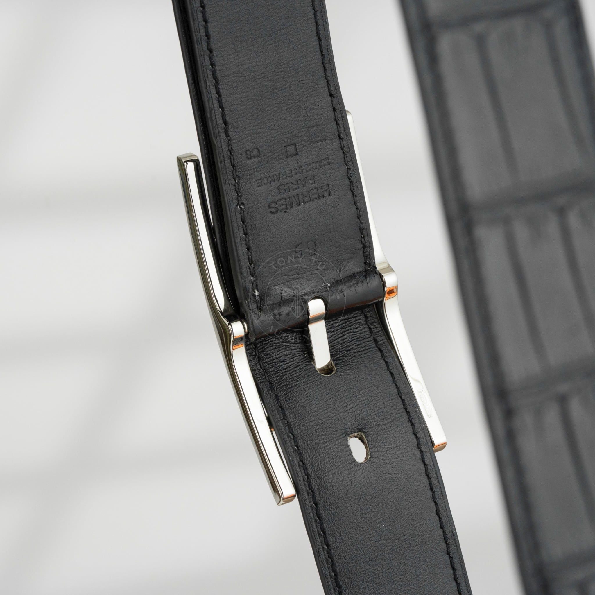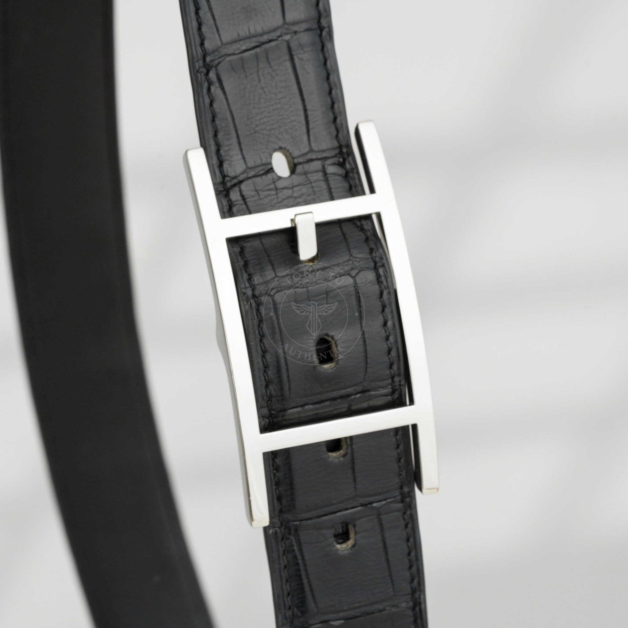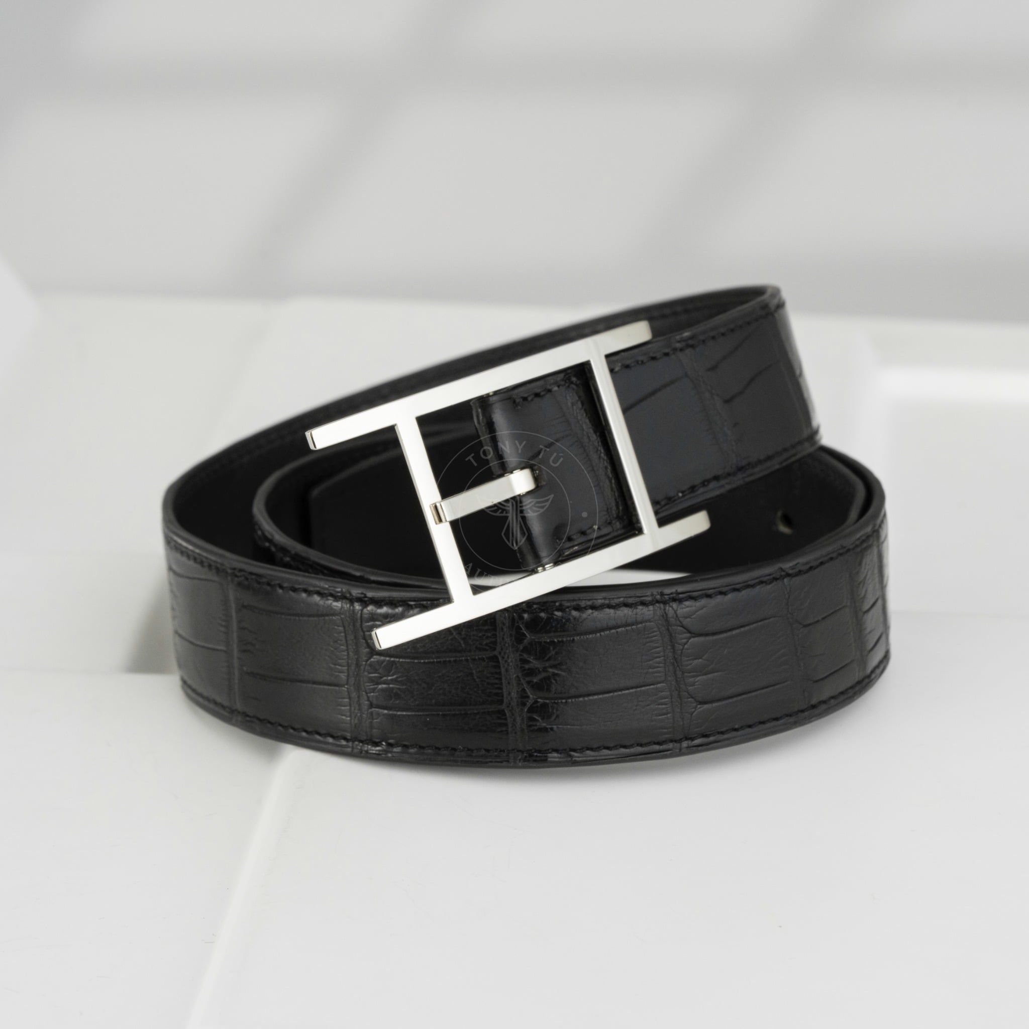 - Dây lưng được chế tác từ da cá sấu tự nhiên, một trong những chất liệu quý hiếm và đắt giá nhất thế giới. Từng vân da đều được chọn lọc và xử lý tỉ mỉ bởi các nghệ nhân Hermes, tạo nên bề mặt mềm mại, bóng nhẹ và vô cùng bền bỉ theo thời gian.