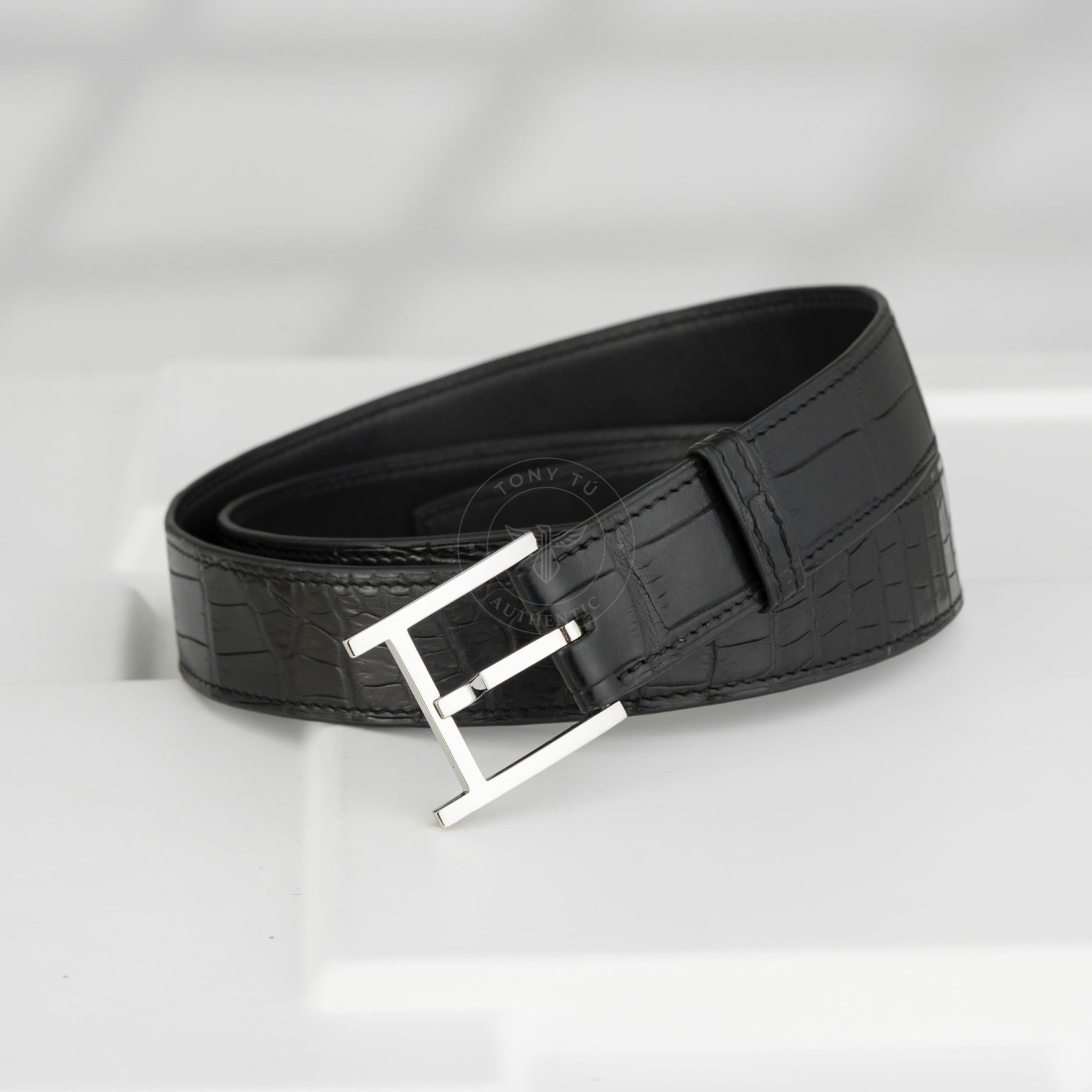 Thắt lưng Hermès Quentin Crocodile (Đen) (Vintage) size 100