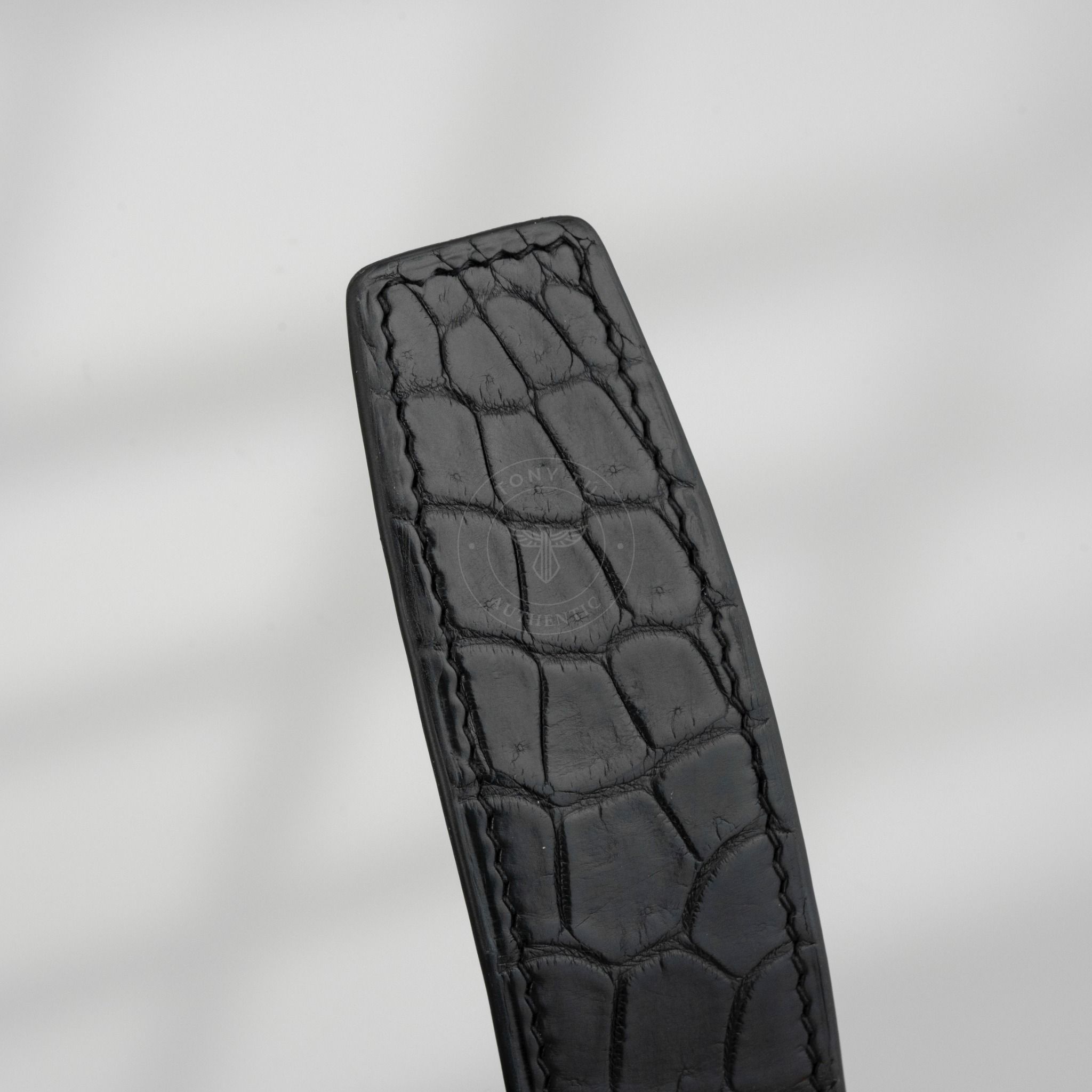 - Dây lưng được chế tác từ da cá sấu tự nhiên, một trong những chất liệu quý hiếm và đắt giá nhất thế giới. Từng vân da đều được chọn lọc và xử lý tỉ mỉ bởi các nghệ nhân Hermes, tạo nên bề mặt mềm mại, bóng nhẹ và vô cùng bền bỉ theo thời gian.