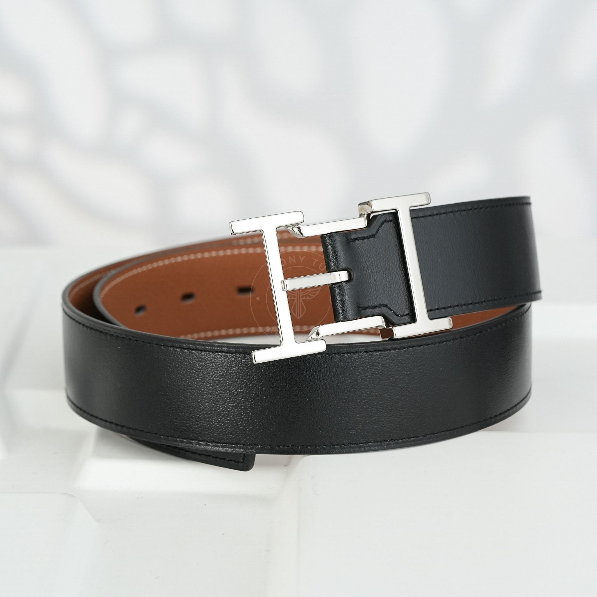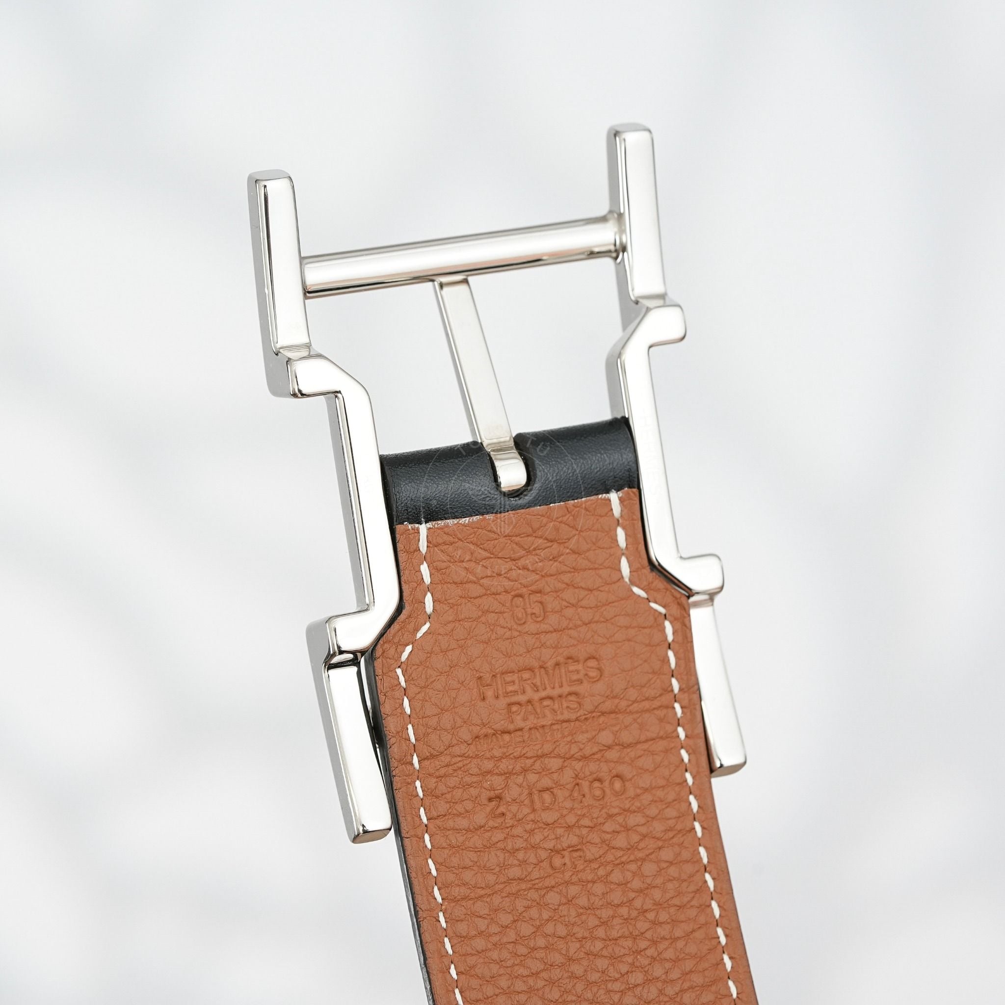 Thắt lưng Hermes Quentin Reversible Boxcalf/Togo (Đen/Nâu Gold) size 85