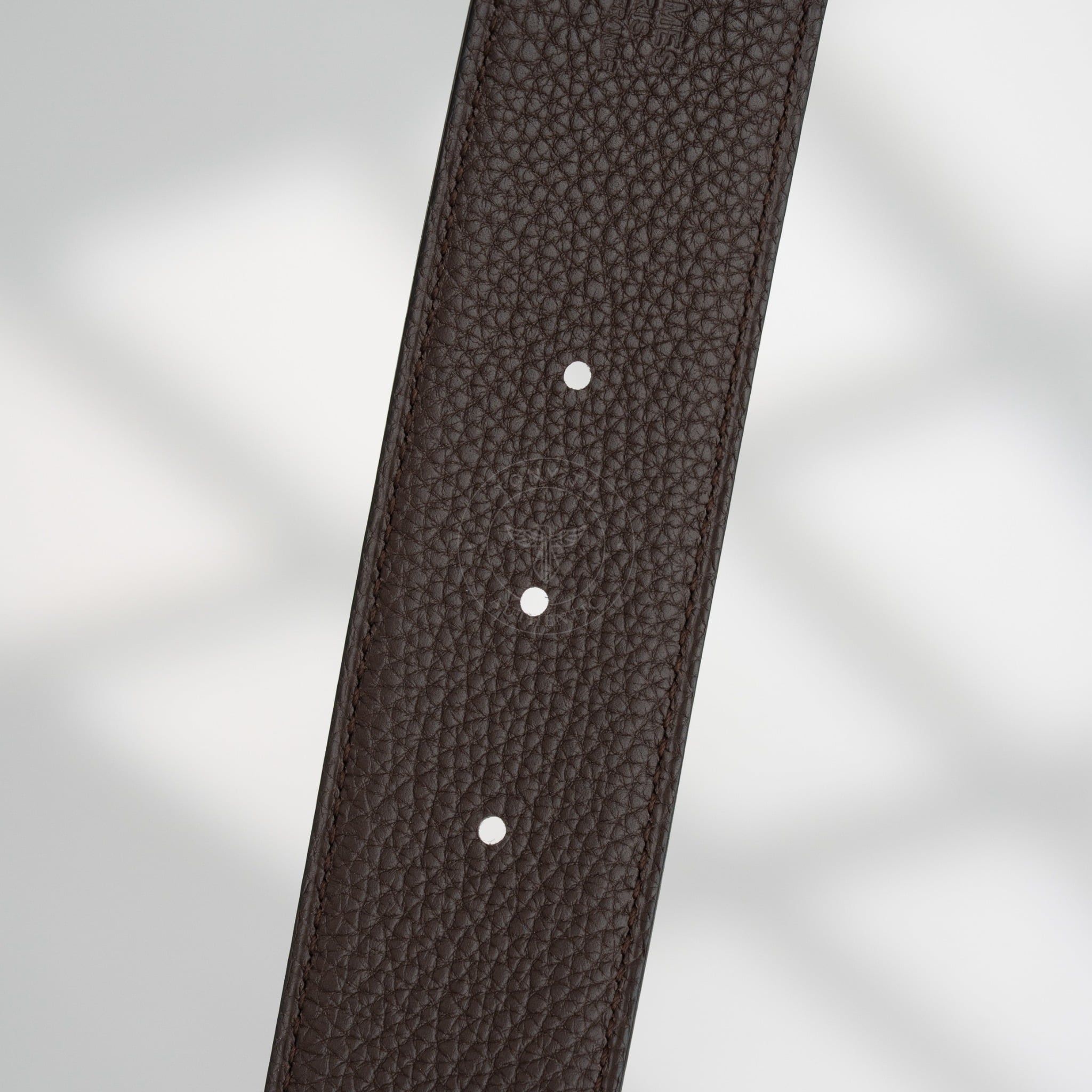 - Thắt lưng sở hữu 2 mặt dây, một mặt là da bê Box Calf nhẹ, mịn, mang lại cảm giác sang trọng. Mặt còn lại sử dụng chất da Togo bền bỉ với những vân da tự nhiên.