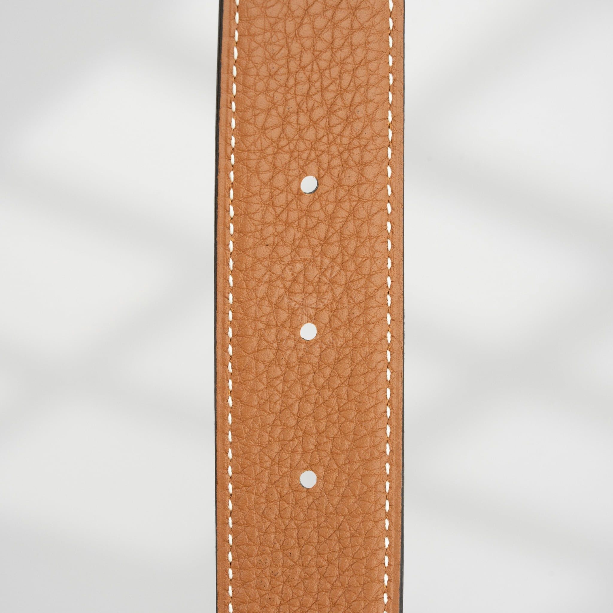 - Thắt lưng sở hữu 2 mặt dây, một mặt là da bê Box Calf nhẹ, mịn, mang lại cảm giác sang trọng. Mặt còn lại sử dụng chất da Togo bền bỉ với những vân da tự nhiên.