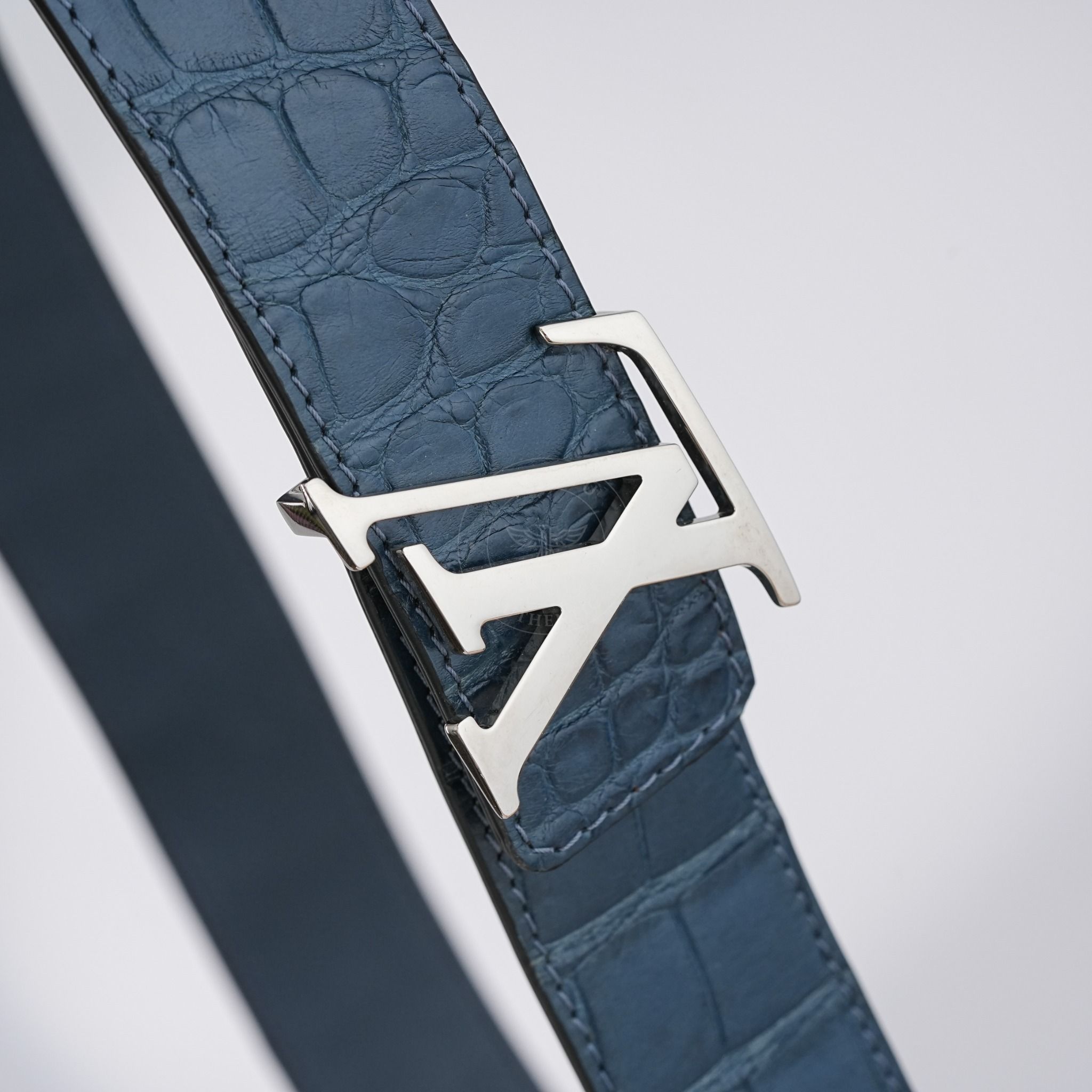 Thắt lưng Louis Vuitton Initiales Bleu Nuit Crocodile size 95 (Xanh đậm)