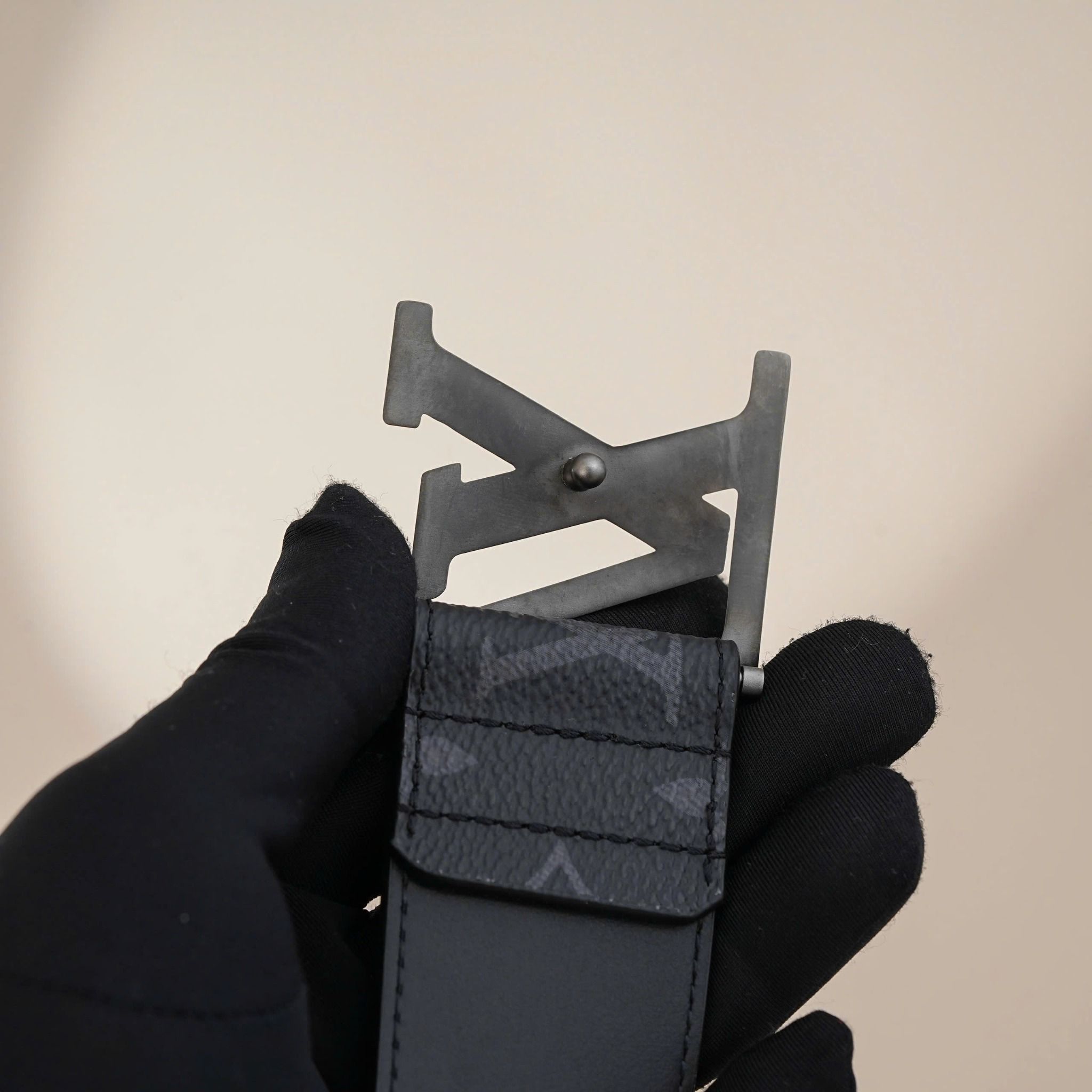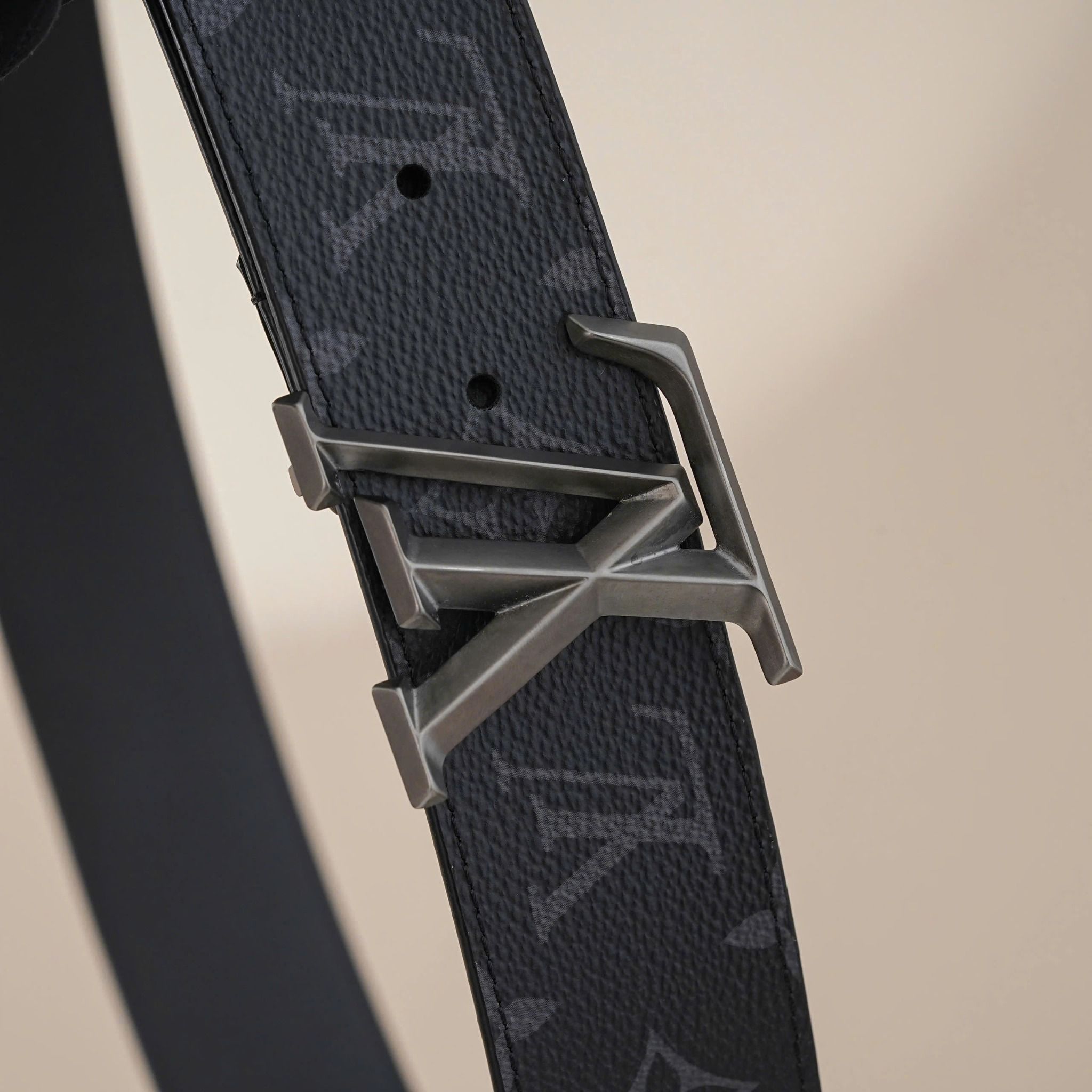 - Features a Palladium buckle with a striking LV logo and sharp pyramid edges, creating a bold 3D effect.