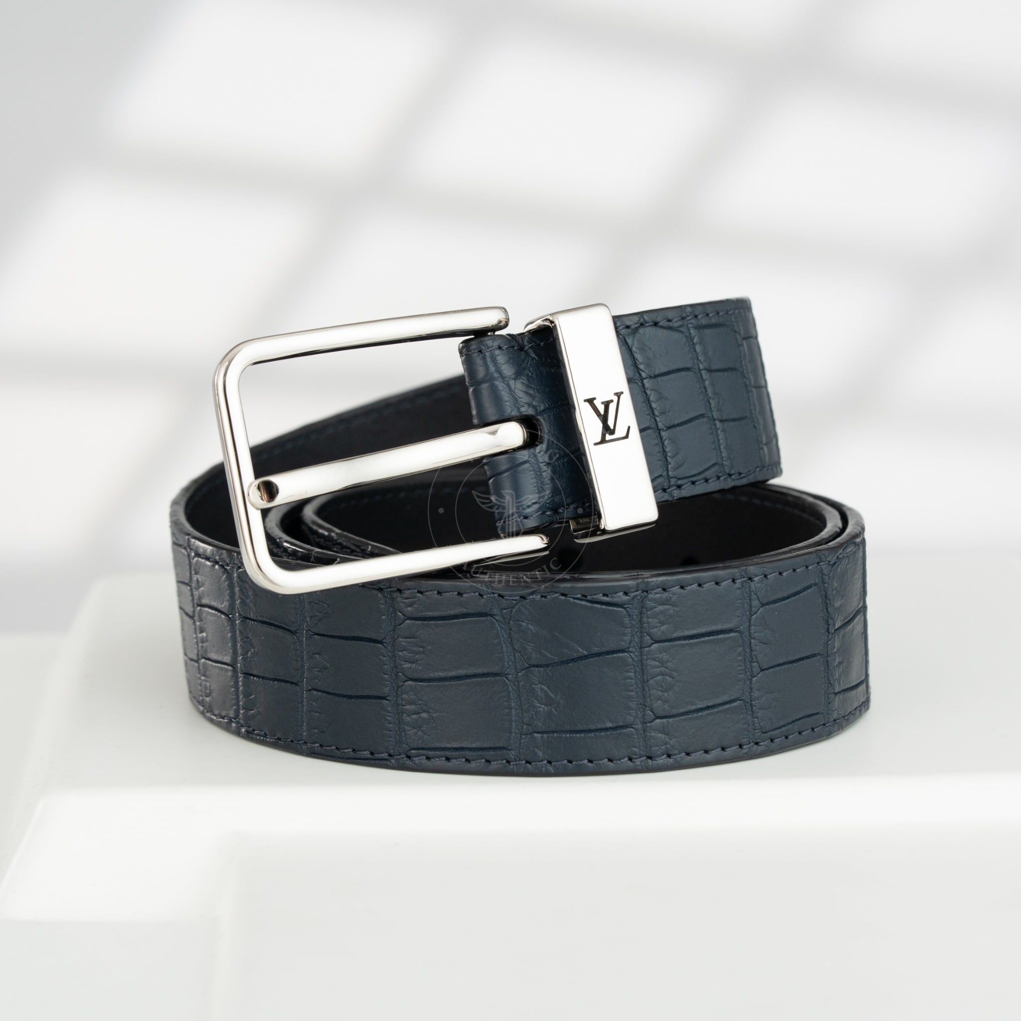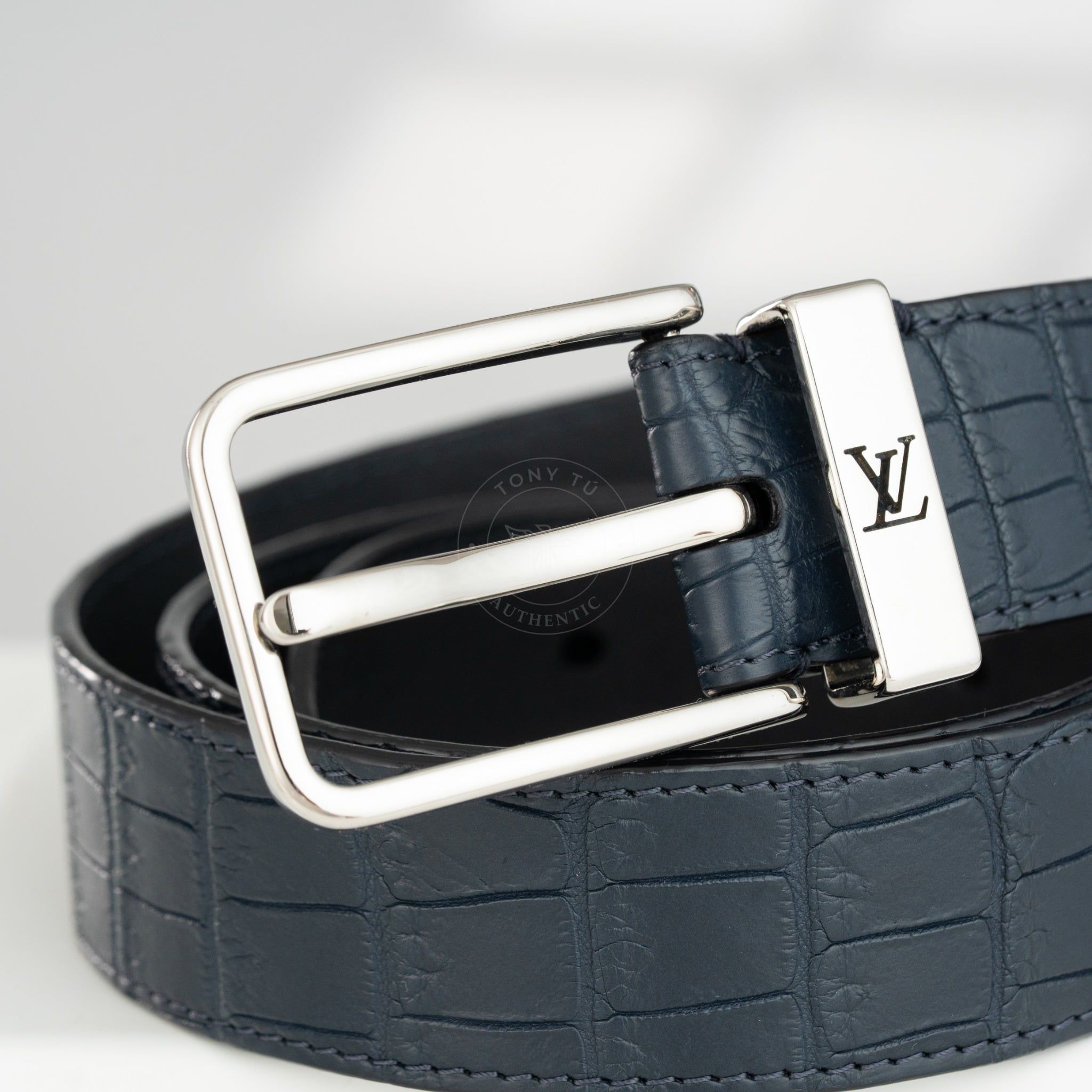 Thắt lưng Louis Vuitton Pont Neuf Crocodile (Xanh Navy) Size 90