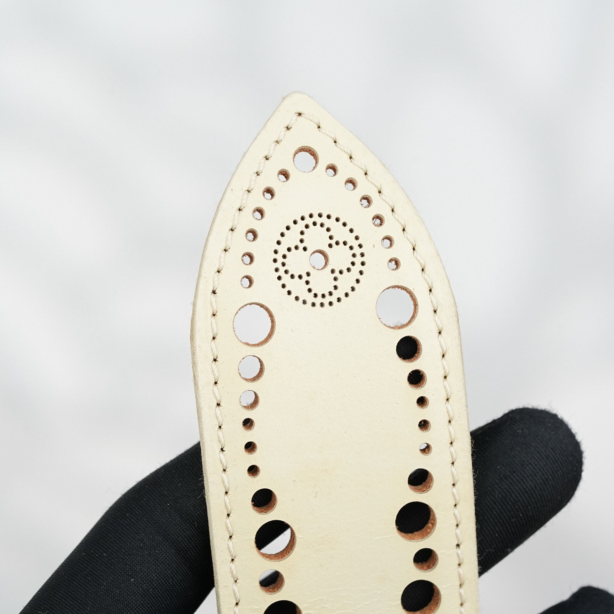- Được chế tác từ da bê Mahina, dòng da nổi tiếng của Louis Vuitton với độ mềm, nhẹ và bề mặt được đục lỗ tinh xảo theo họa tiết Monogram mang đến cảm giác vừa thanh thoát vừa đậm dấu ấn thương hiệu mà không quá phô trương.