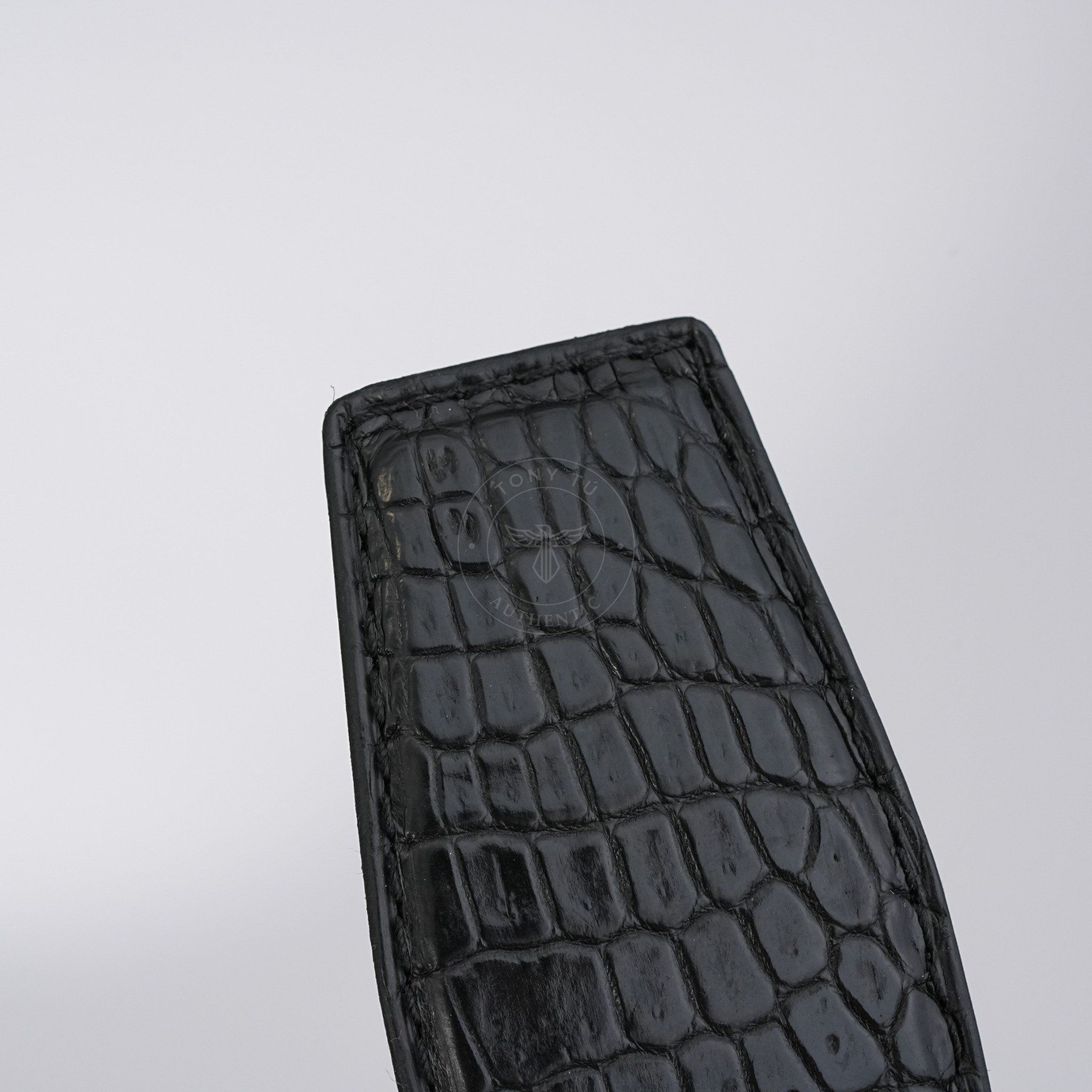 - Tông đen tuyền của da cá sấu và mặt khóa bạc tạo lên một cảm giác hài hòa, đảm bảo dễ phối đồ.