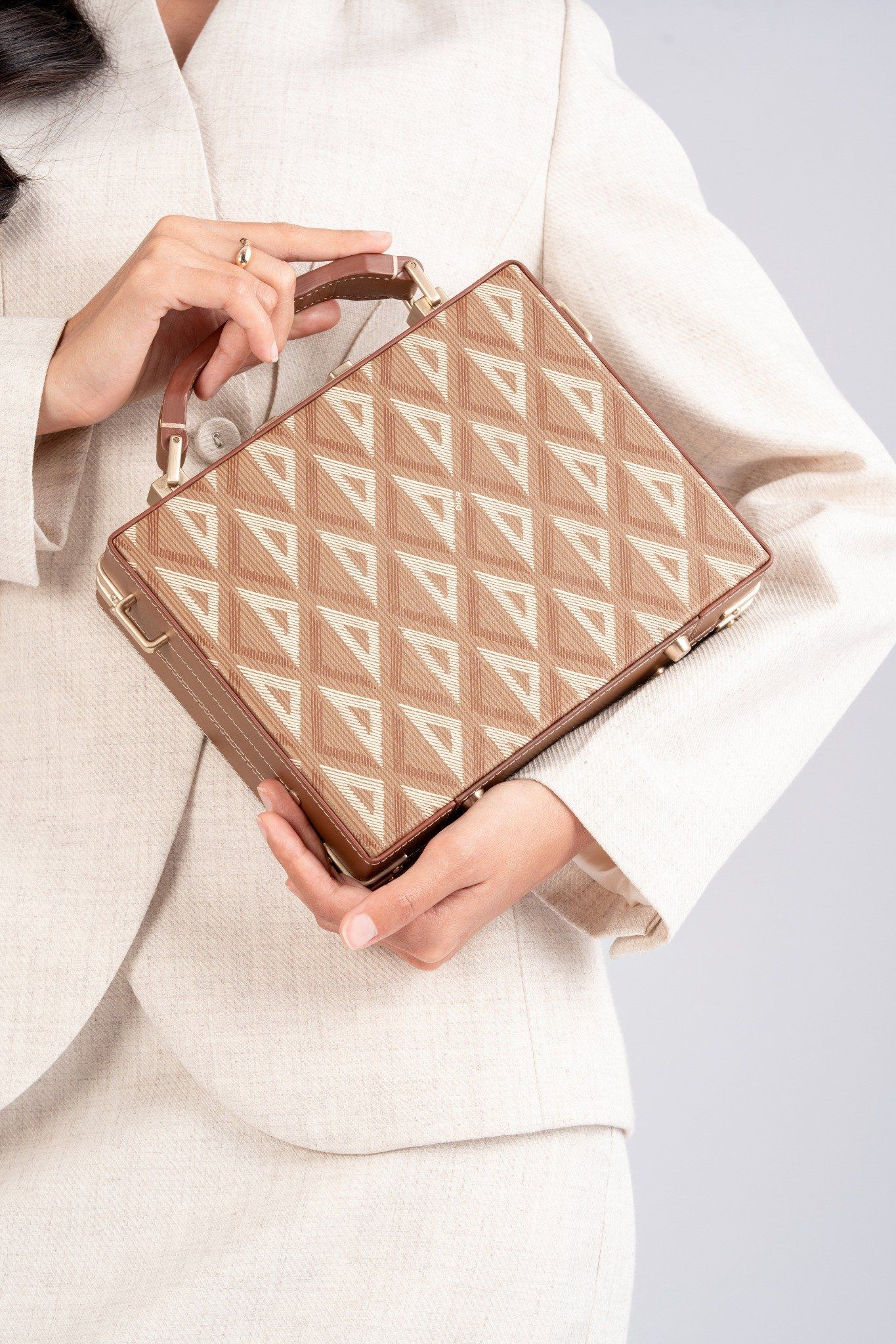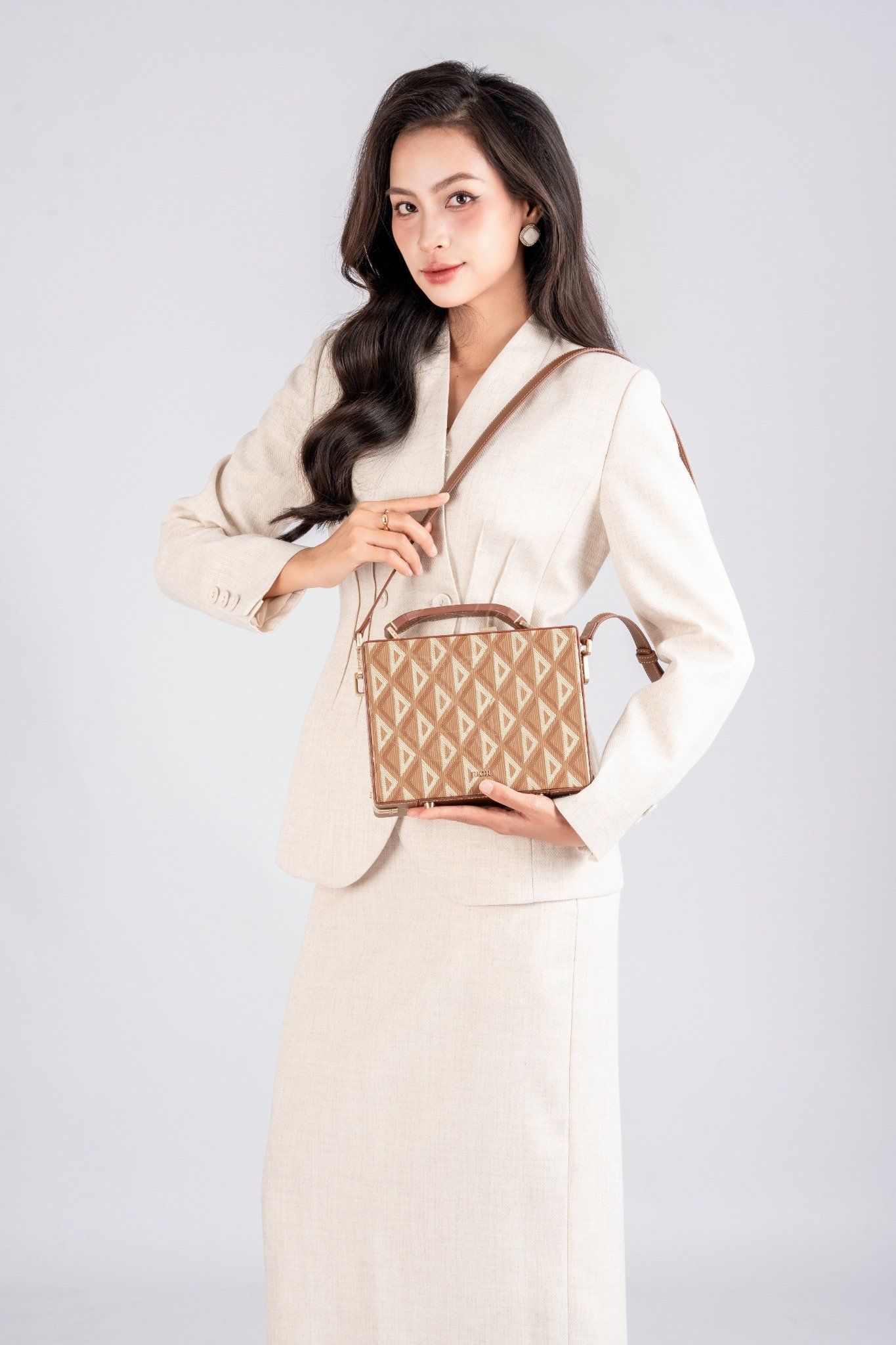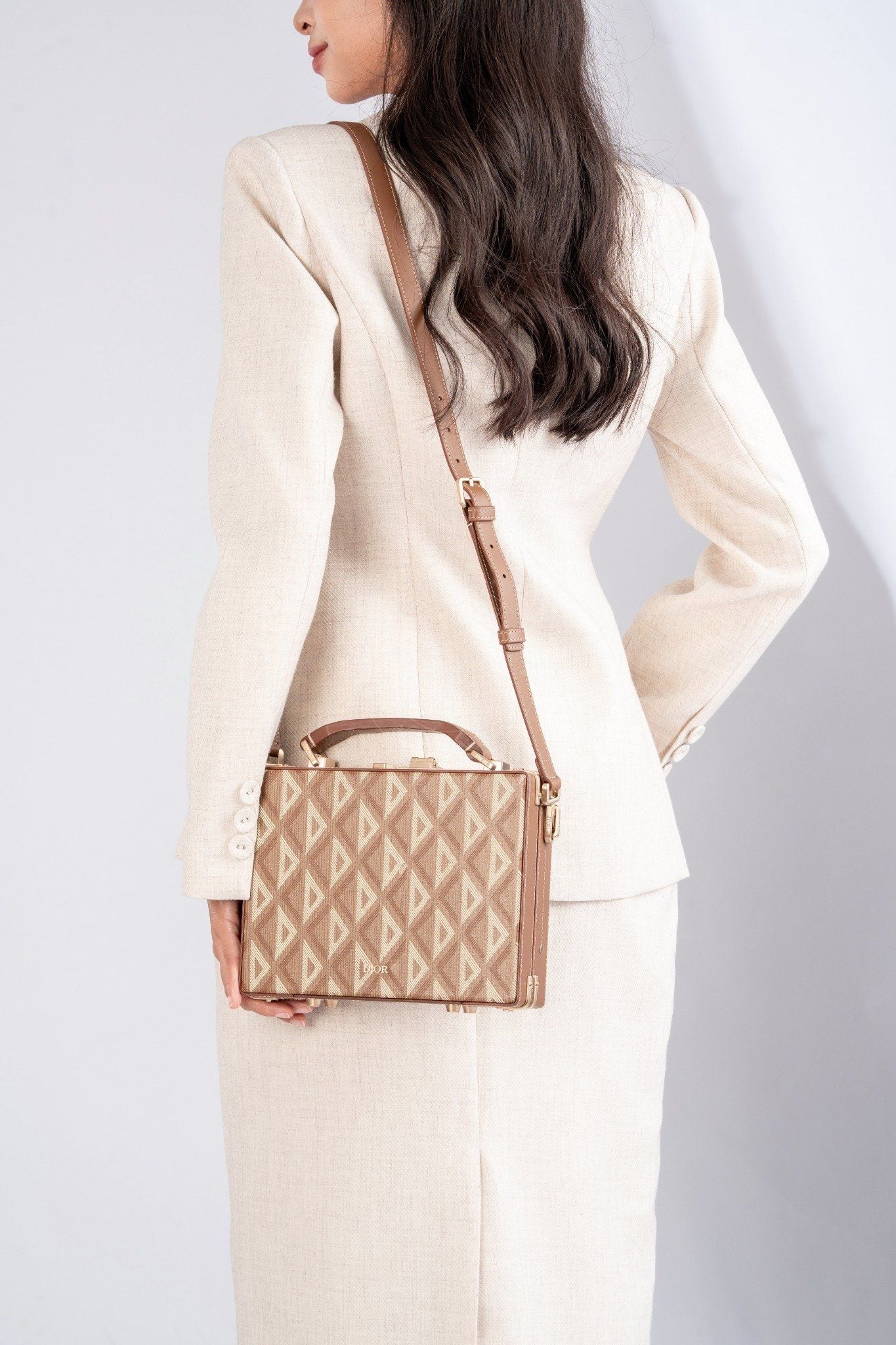 - Thiết kế dáng Structured Box mang cảm hứng từ những chiếc rương du lịch cổ điển của Dior, được thu nhỏ tinh gọn phù hợp hơn với nhịp sống hiện đại.