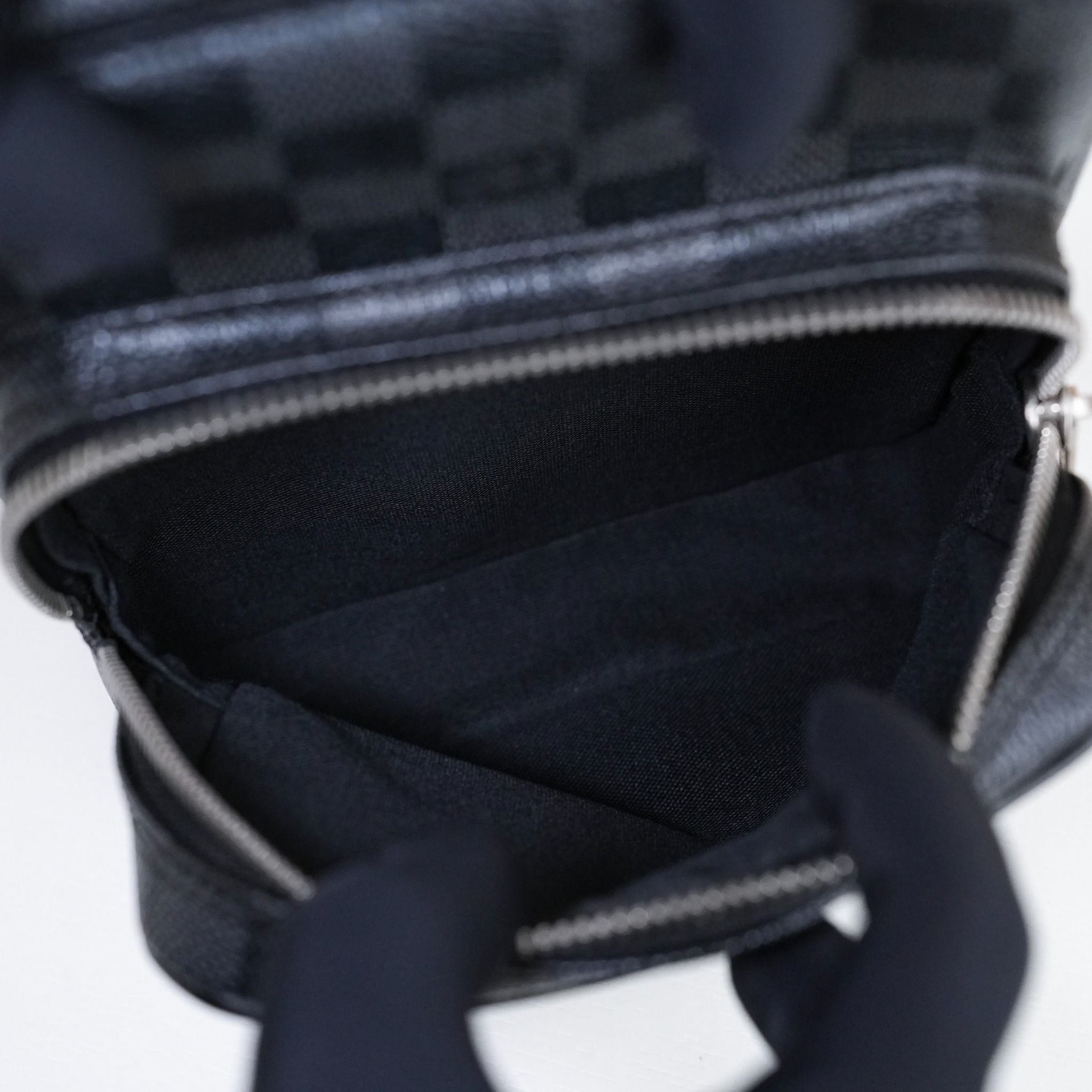 - Họa tiết Damier Graphite là phiên bản hiện đại của mẫu Damier cổ điển, nổi bật với họa tiết ô vuông caro nhỏ, tạo nên một bề mặt với màu sắc đen sang trọng.