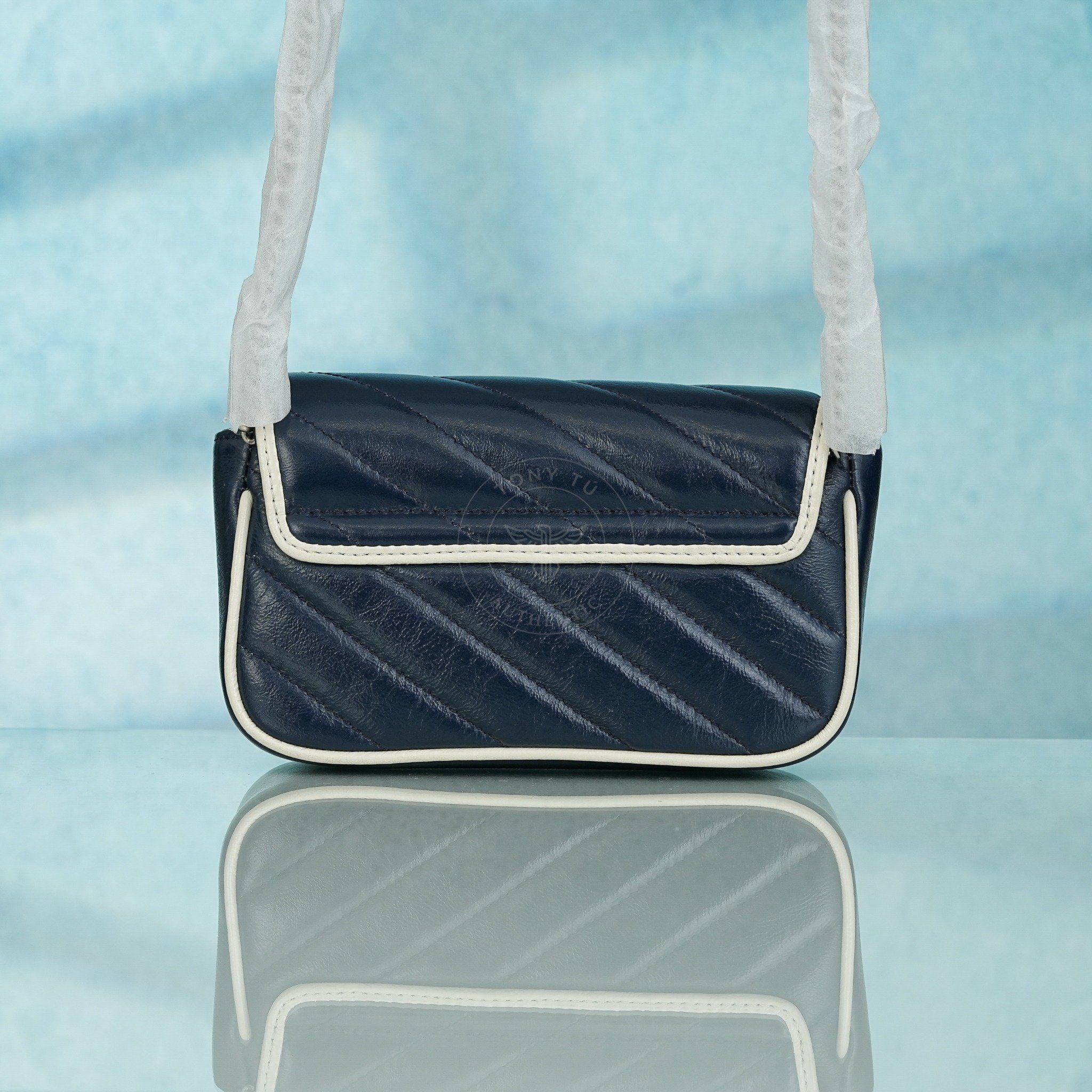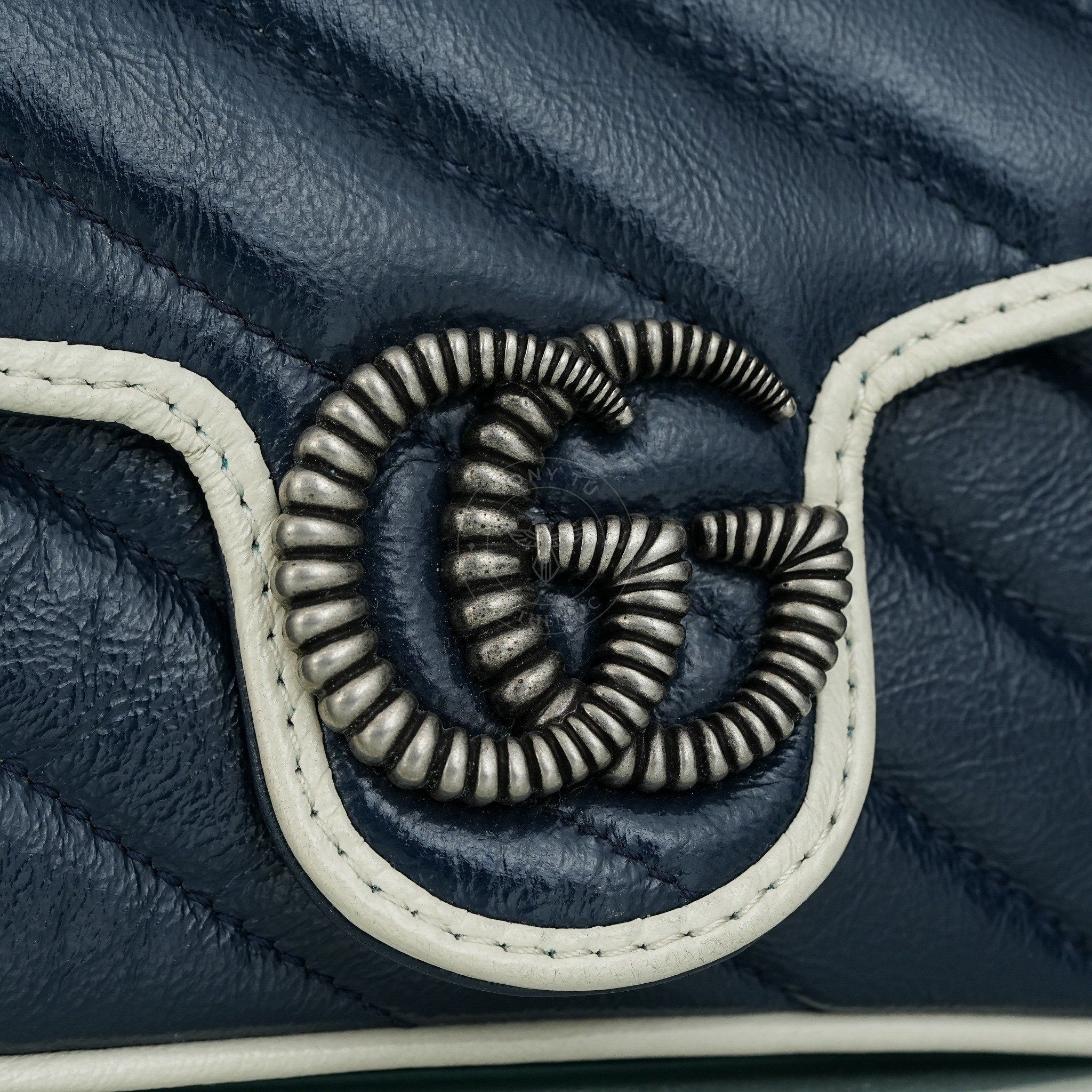 Túi đeo Gucci GG Marmont Navy Blue/White Calfskin (Xanh Navy) size Mini